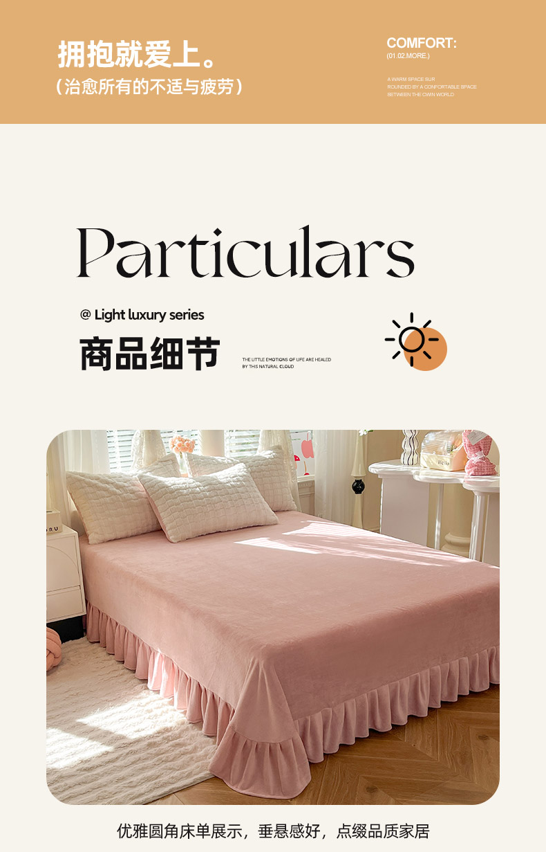 丝印良品 2024直播秋冬高克重500克床裙款泡泡四件套纯色印花泡泡-甜心粉,泡泡-甜心粉