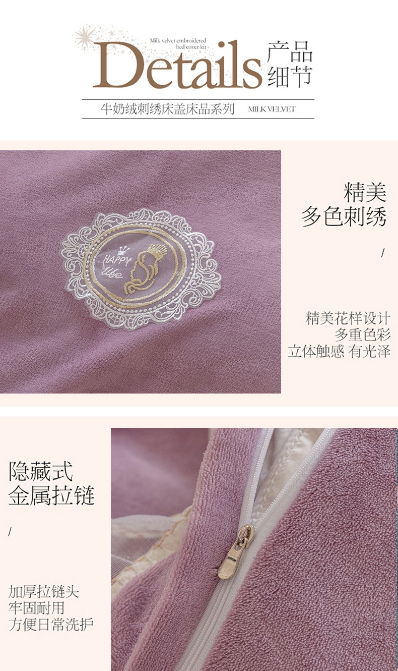 (总)乐嘉盈 2025年新款纯色刺绣牛奶绒四件套-玫瑰缘,玫瑰缘-橙,玫瑰缘-蓝,玫瑰缘-绿,玫瑰缘-豆沙,玫瑰缘-灰,玫瑰缘-粉,玫瑰缘-紫