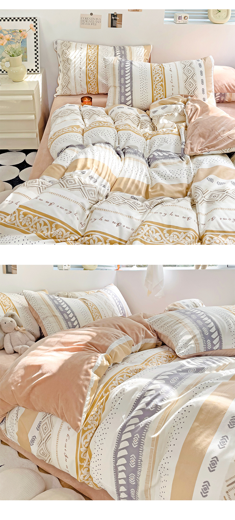盛馨家纺 2023新款棉加绒A版高支高密13372全棉加B版加厚宝宝绒牛奶绒床单床笠四件套 波西米亚