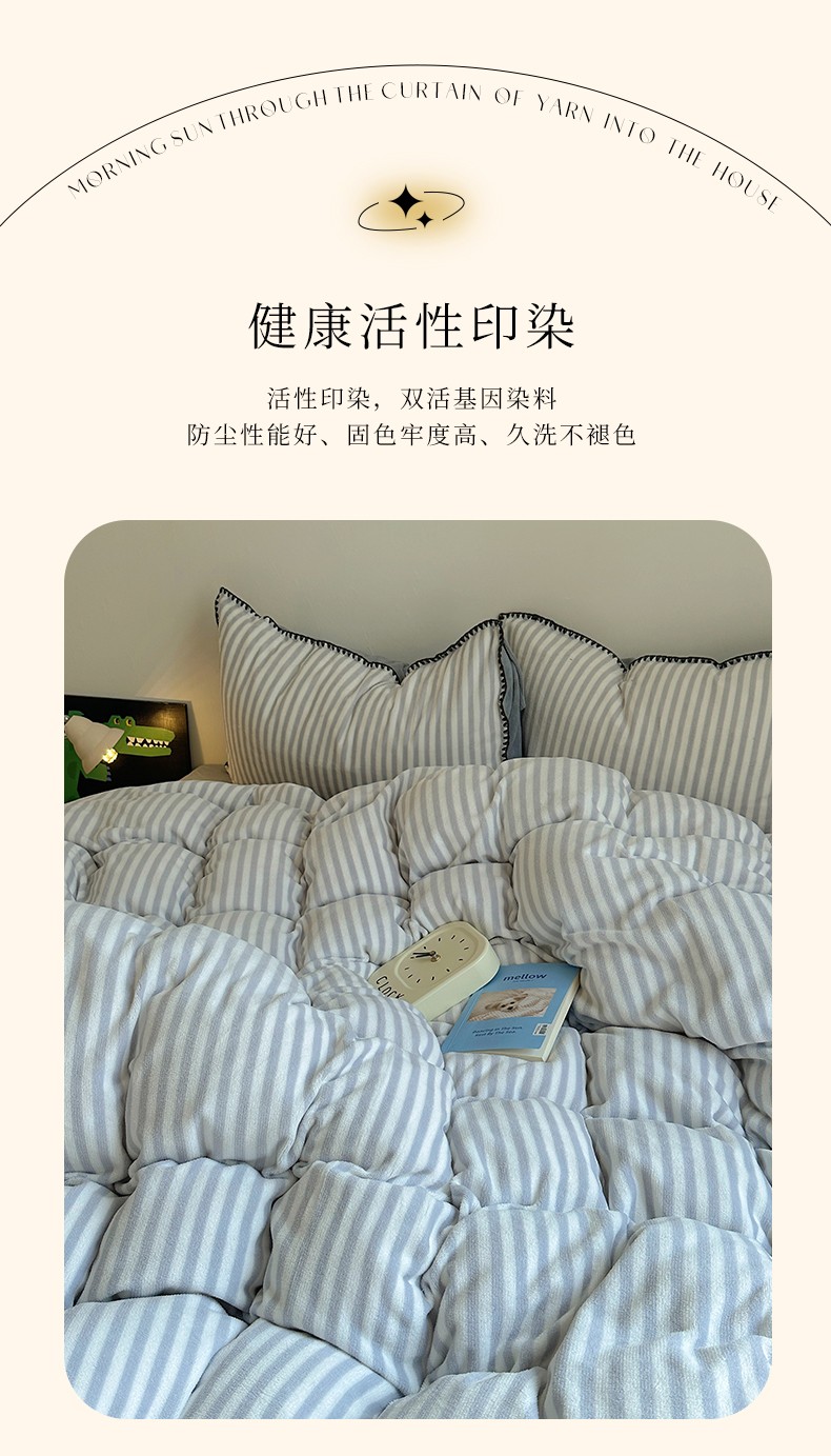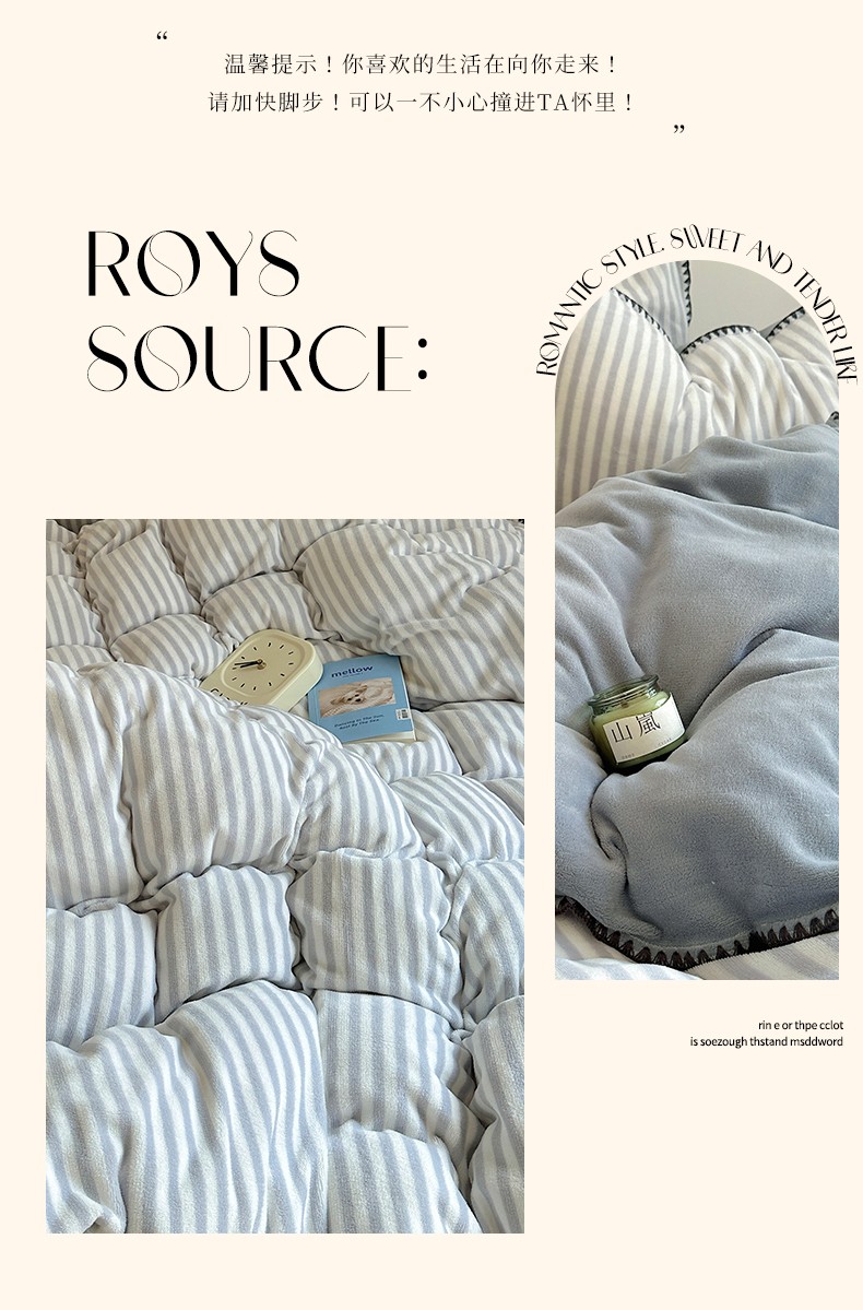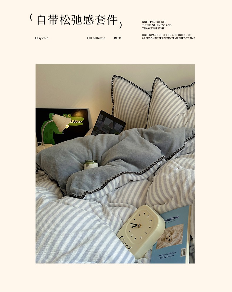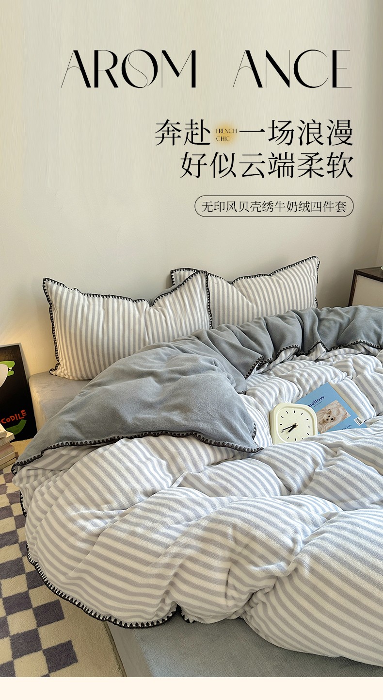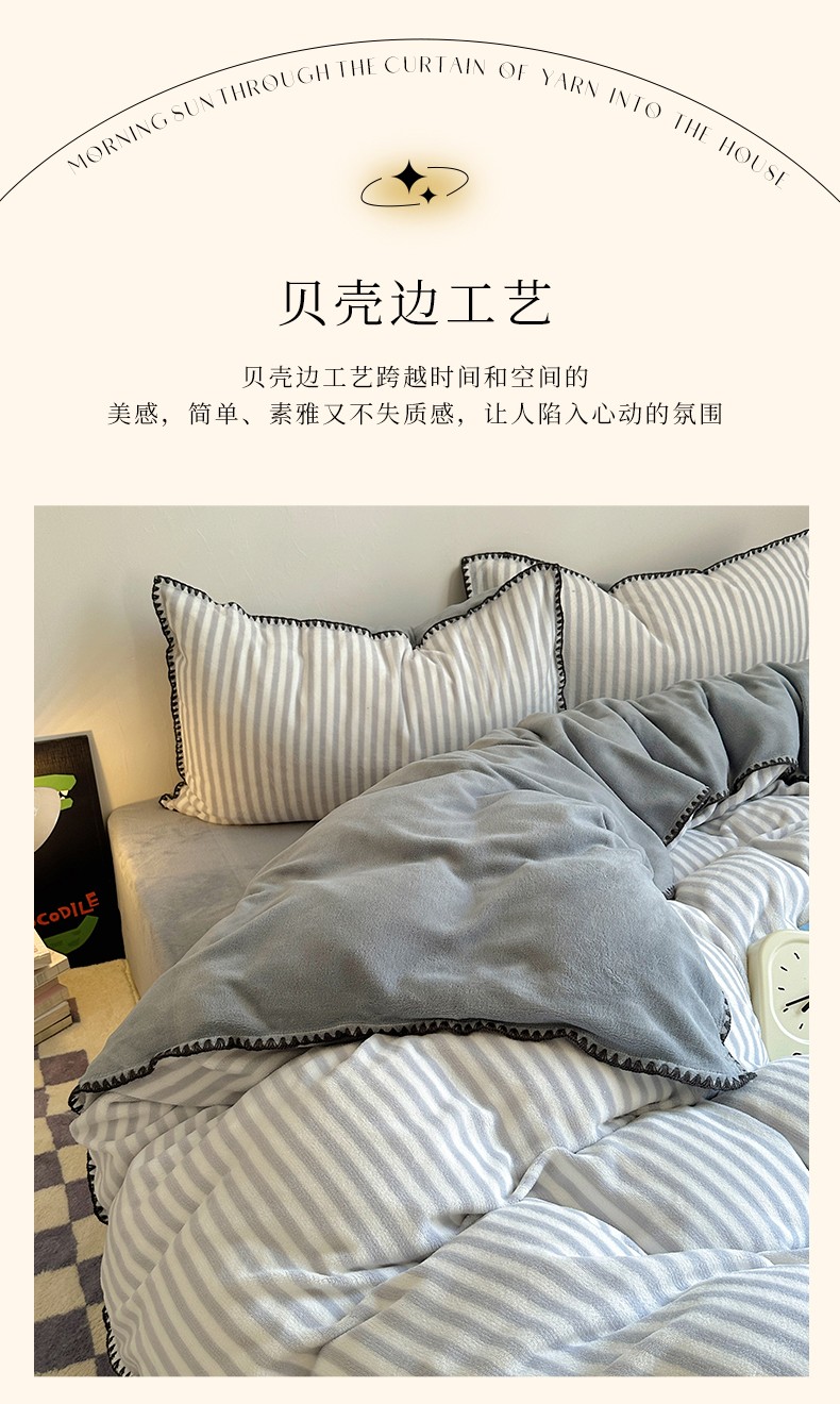 商品名称:三朵 2023新款无印风牛奶绒四件套 淡雅灰细条