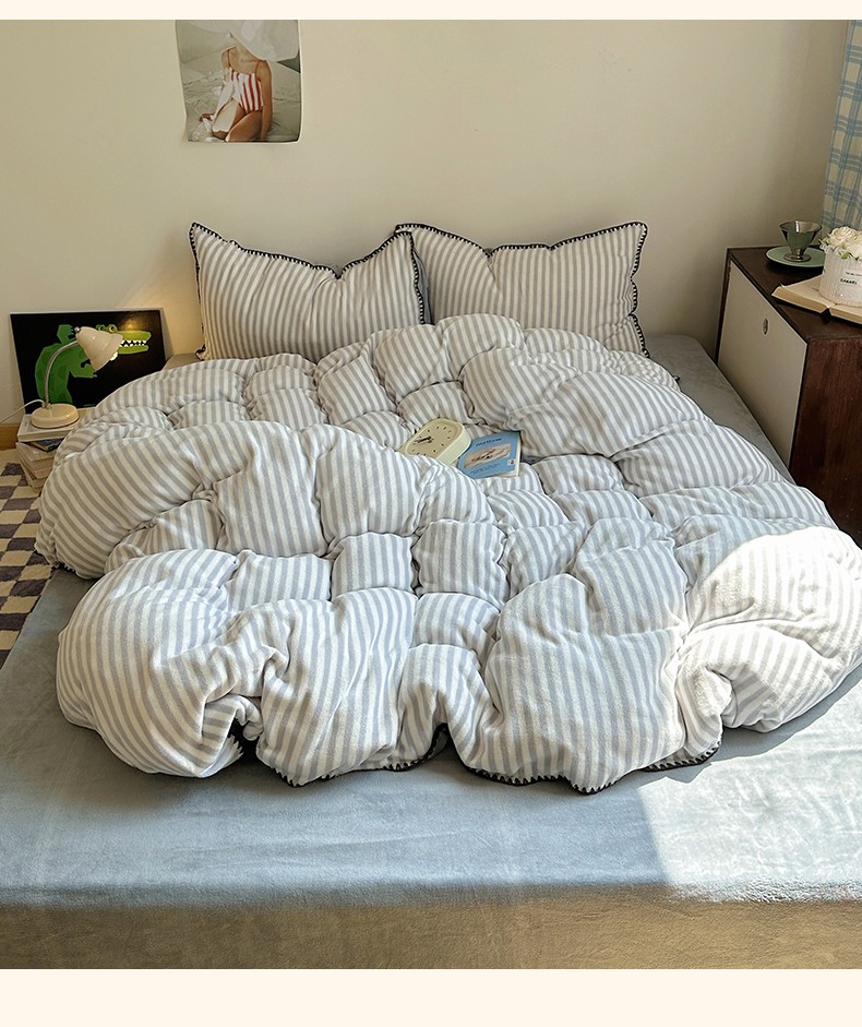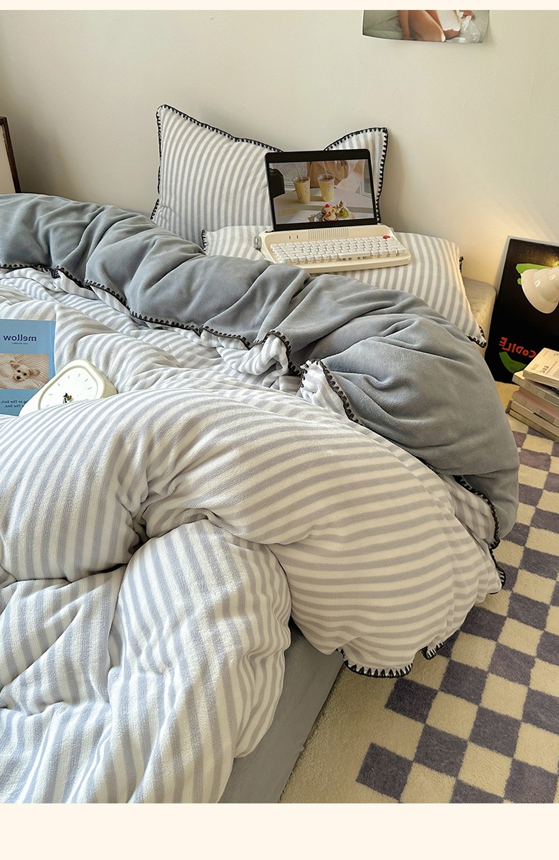 三朵 2023新款无印风牛奶绒四件套 淡雅灰细条
