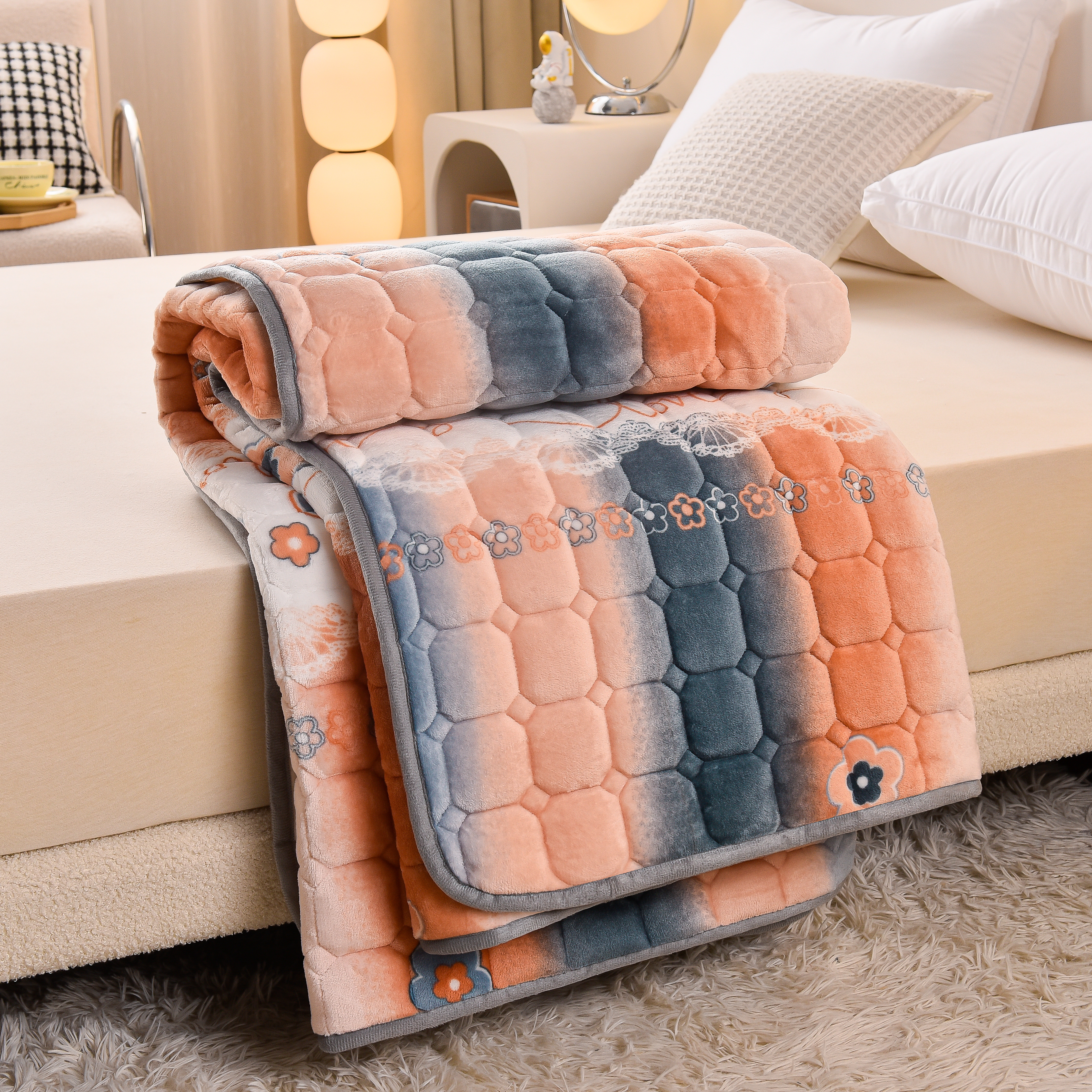 商品名称:爱上家居 2023新款印花牛奶绒床护垫床垫子床褥 流光溢彩