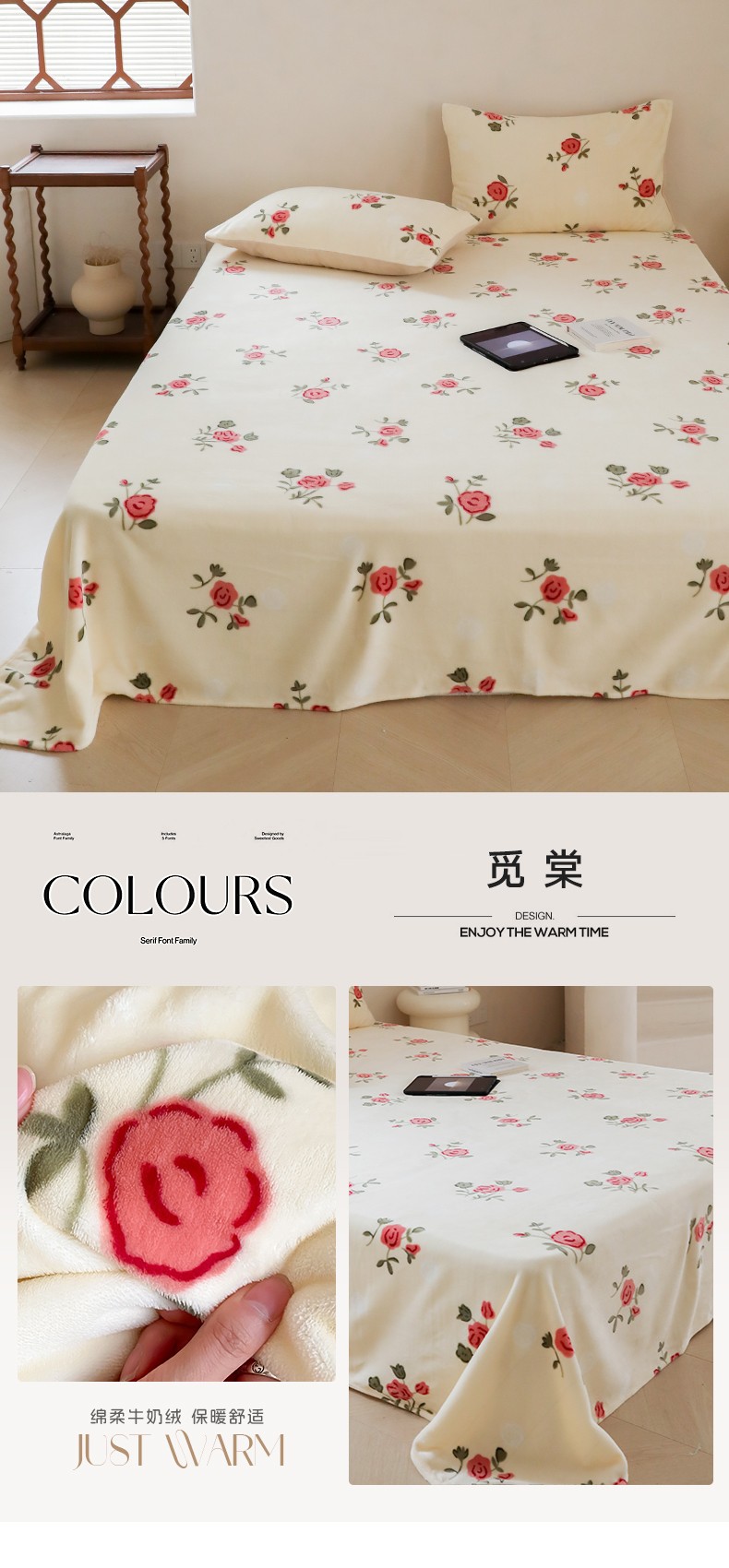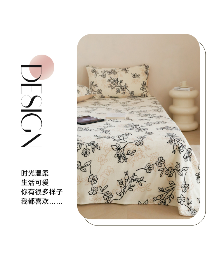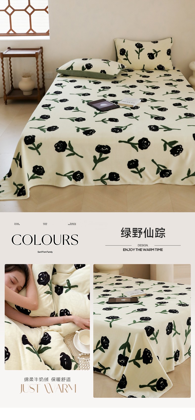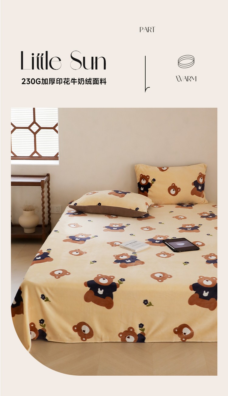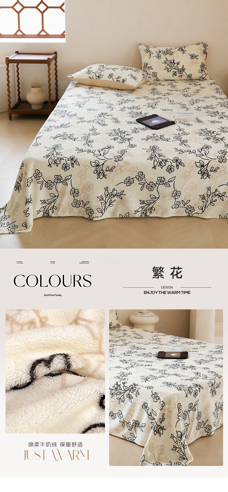(总)时光里 2023新款230g半消光印花牛奶绒单品床单