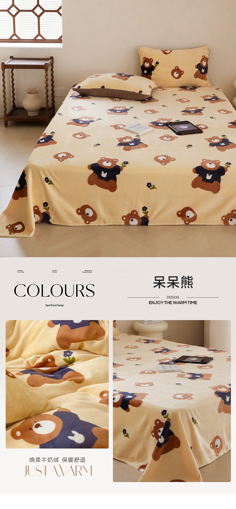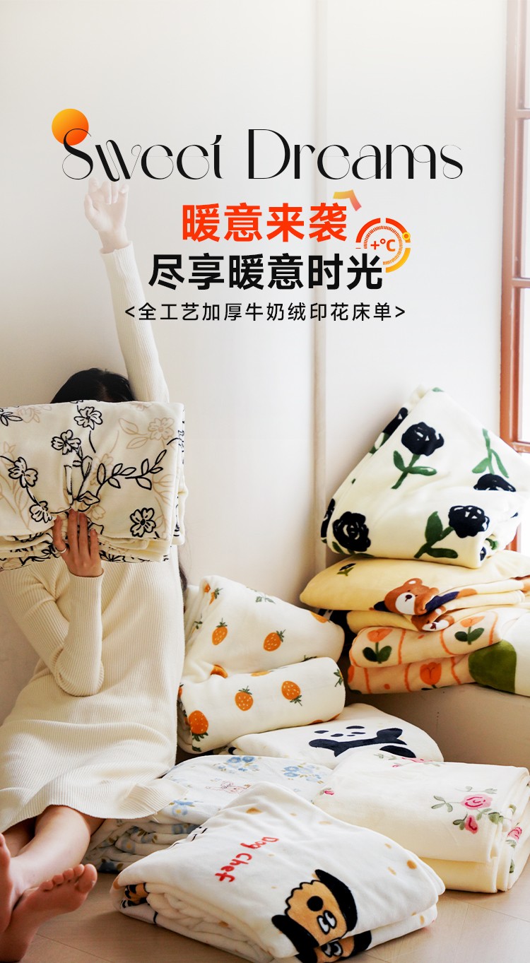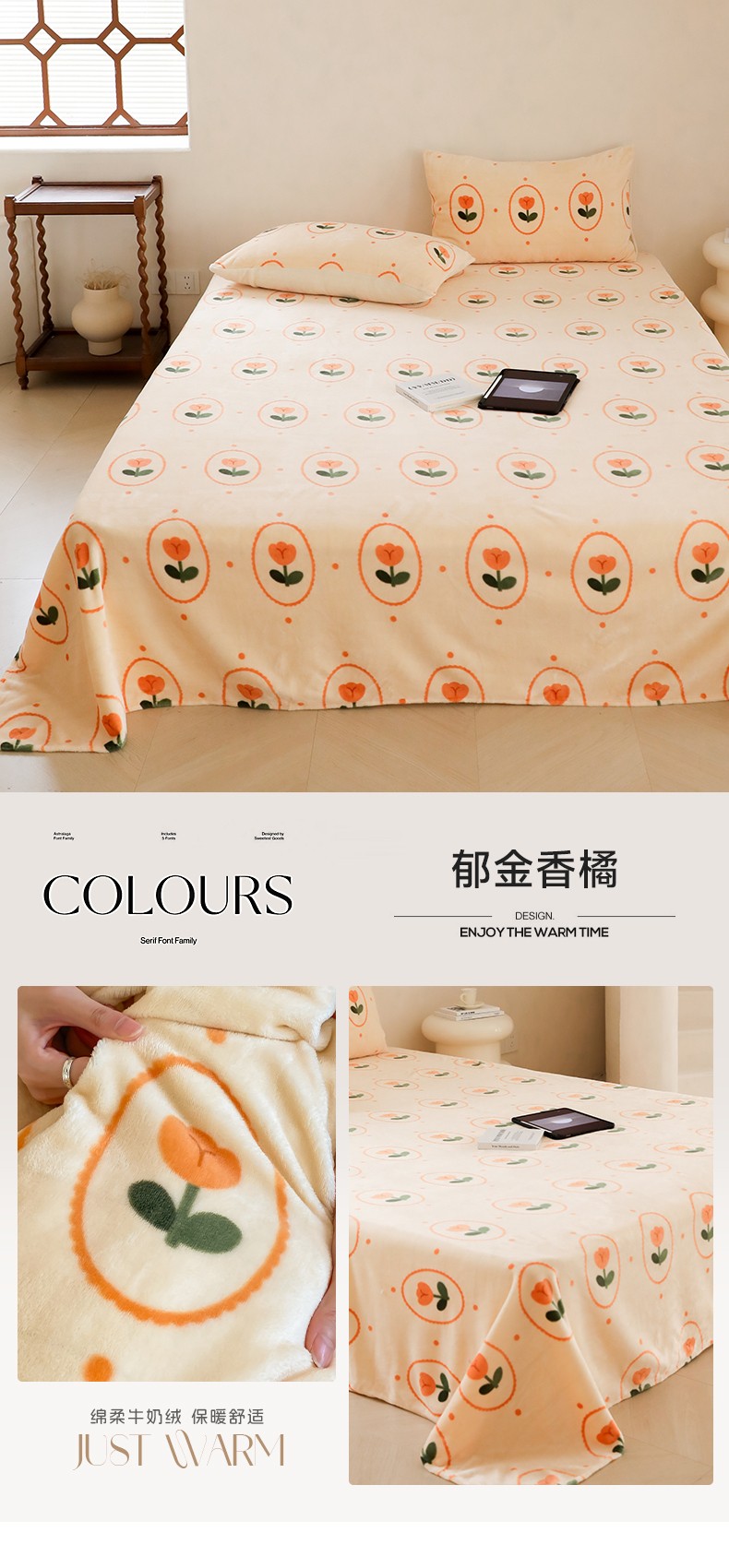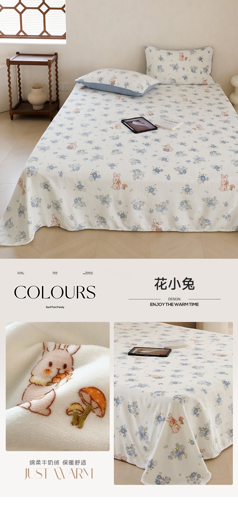 (总)时光里 2023新款230g半消光印花牛奶绒单品床单