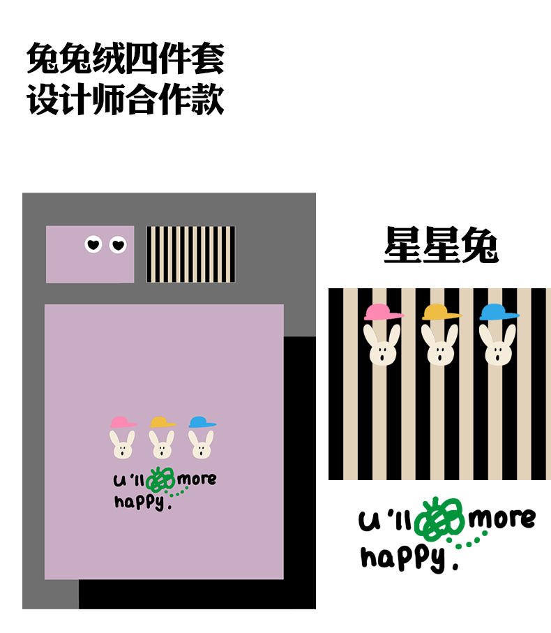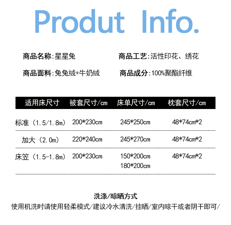 商品名称:(总)桔子家纺 2023新款全消光牛奶绒精致贴布刺绣四件套--星星兔