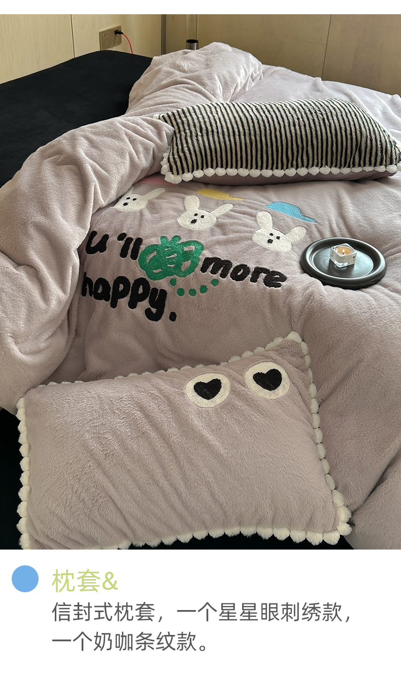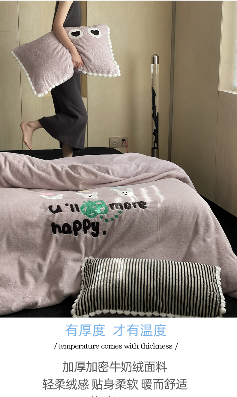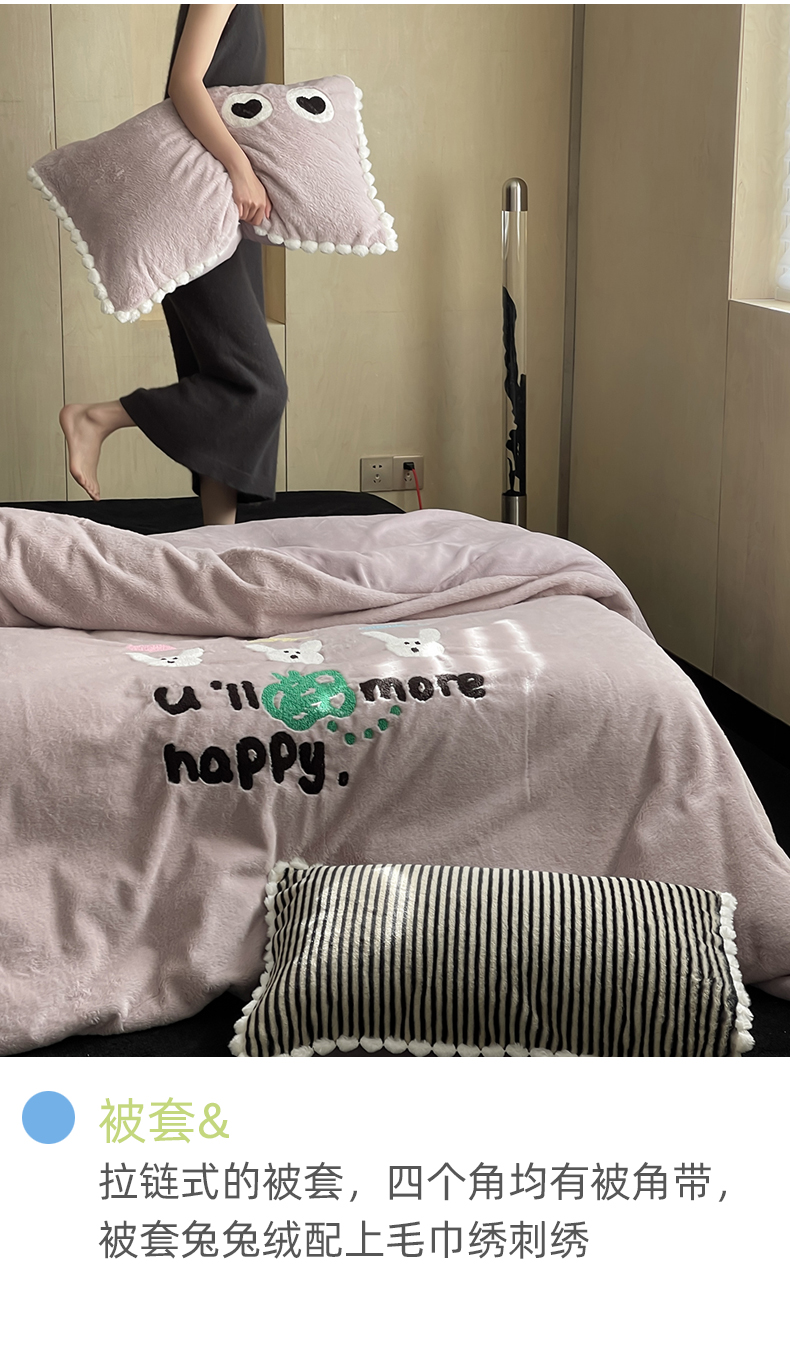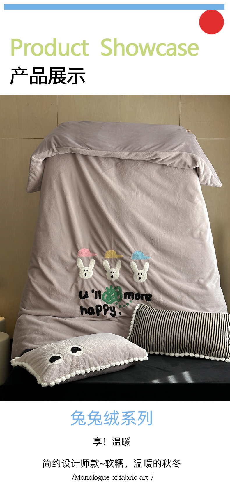 (总)桔子家纺 2025新款兔兔绒牛奶绒豹纹系列卡通绣花四件套,兔兔粉bao,兔兔黑bao,兔兔棕bao