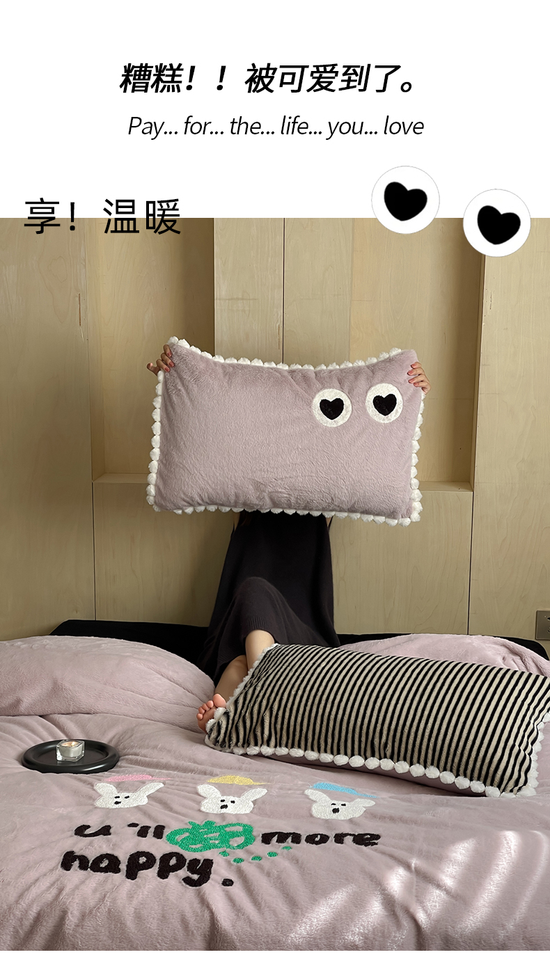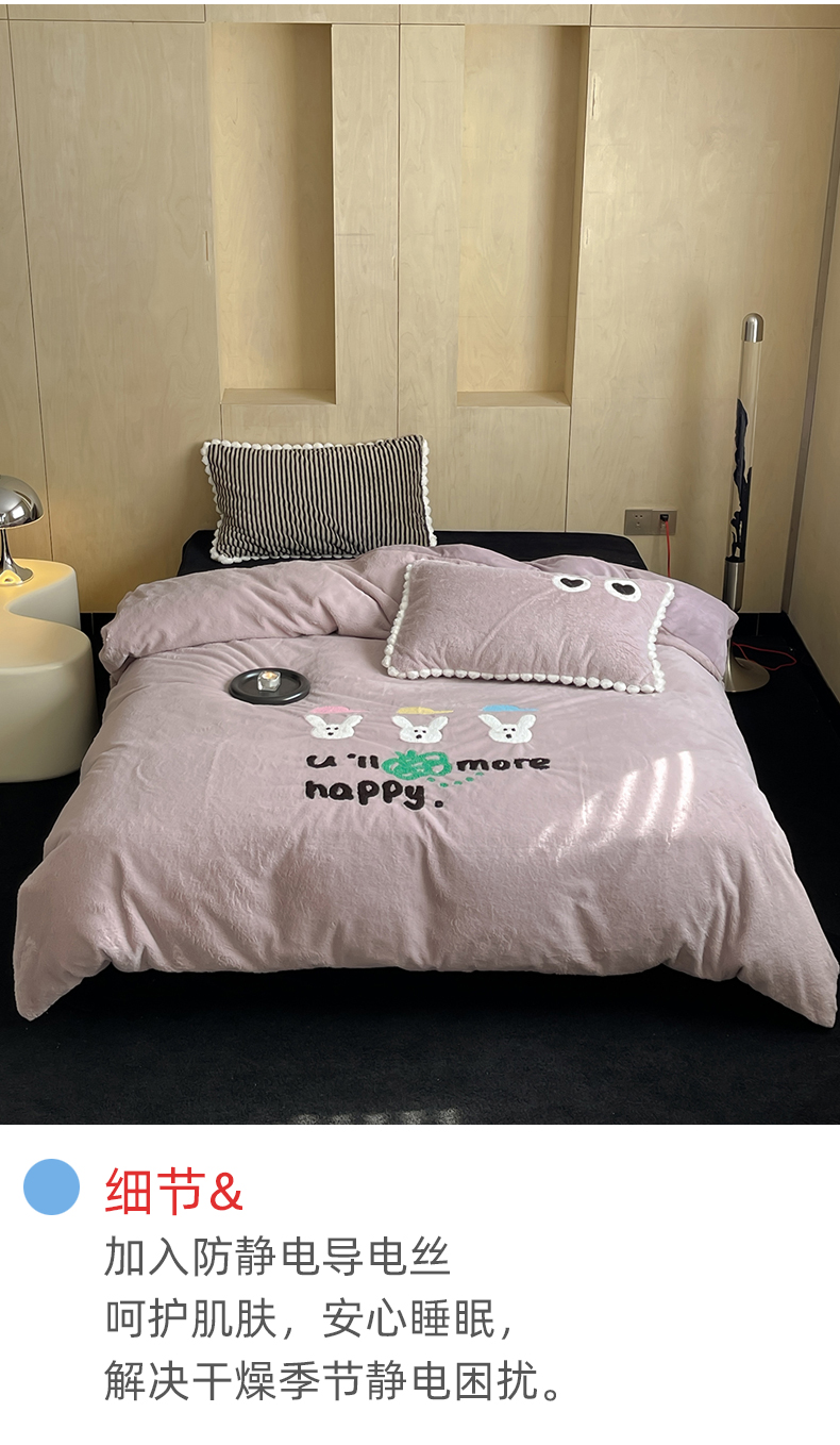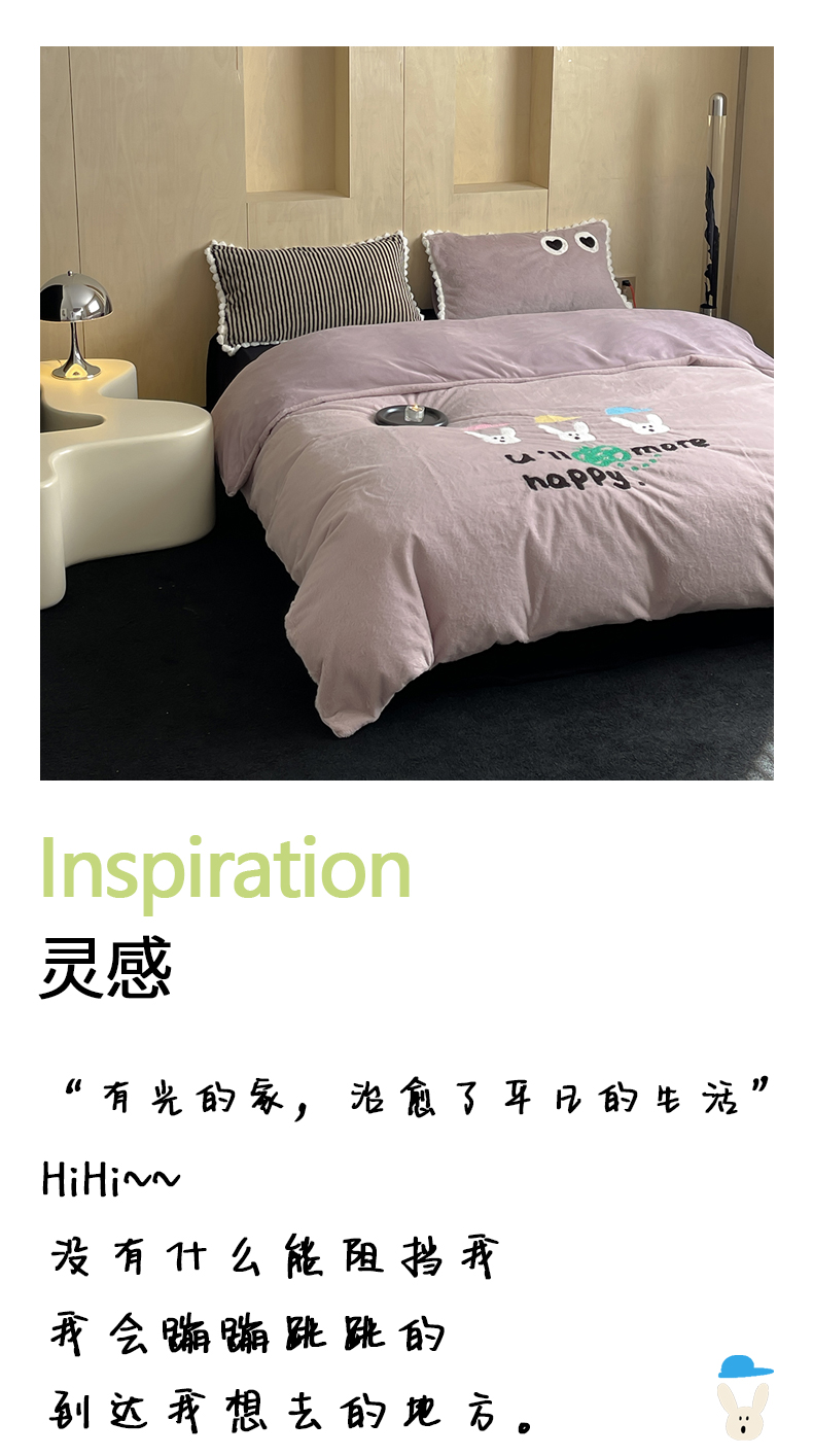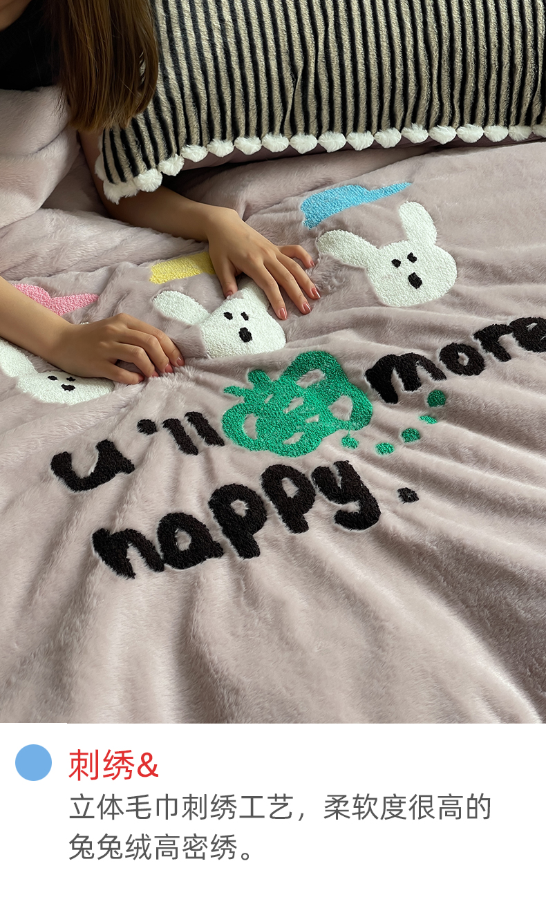 (总)桔子家纺 2025新款兔兔绒牛奶绒豹纹系列卡通绣花四件套,兔兔粉bao,兔兔黑bao,兔兔棕bao