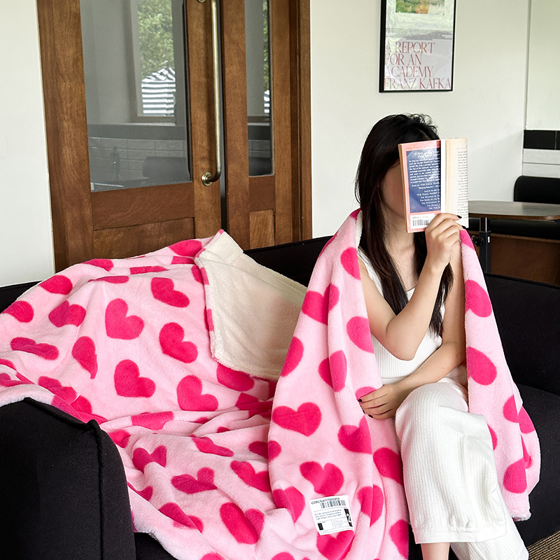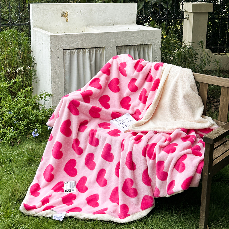 桔子家纺 2023新款兔兔绒皮草毛毯 霉霉爱心