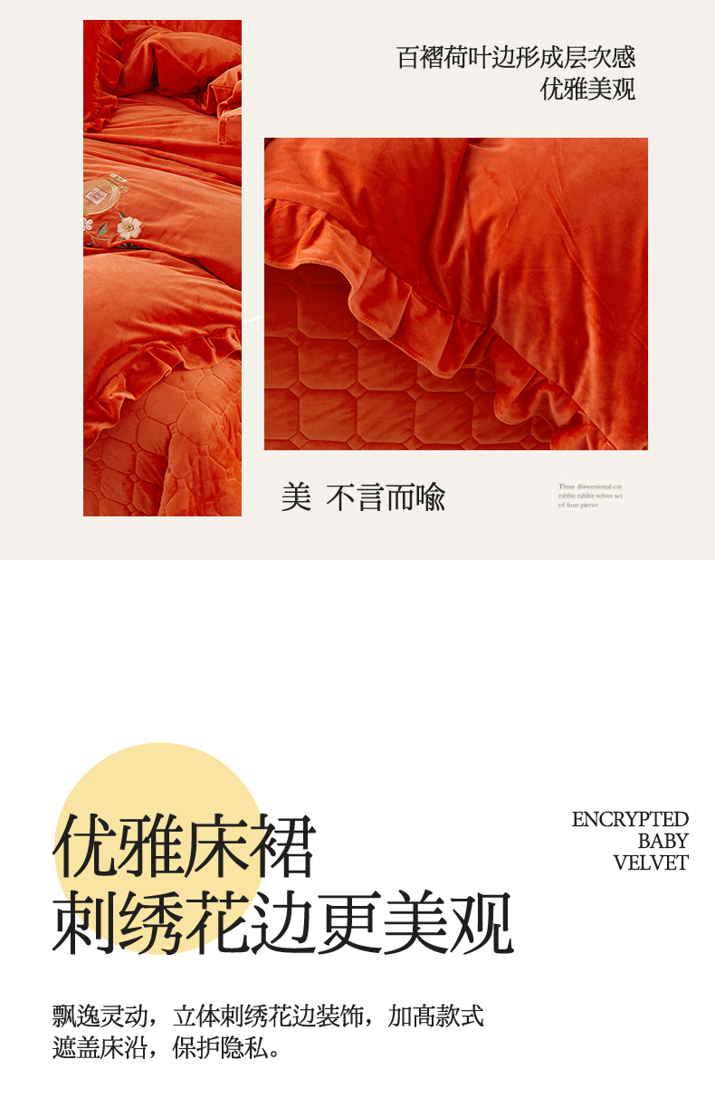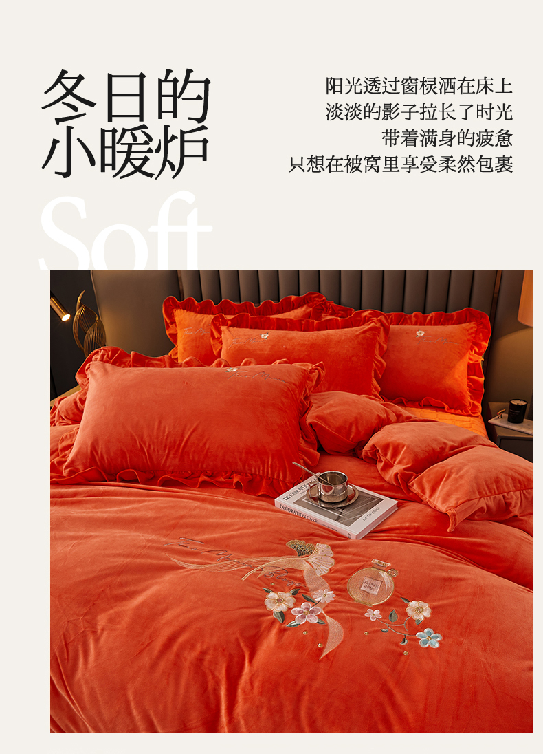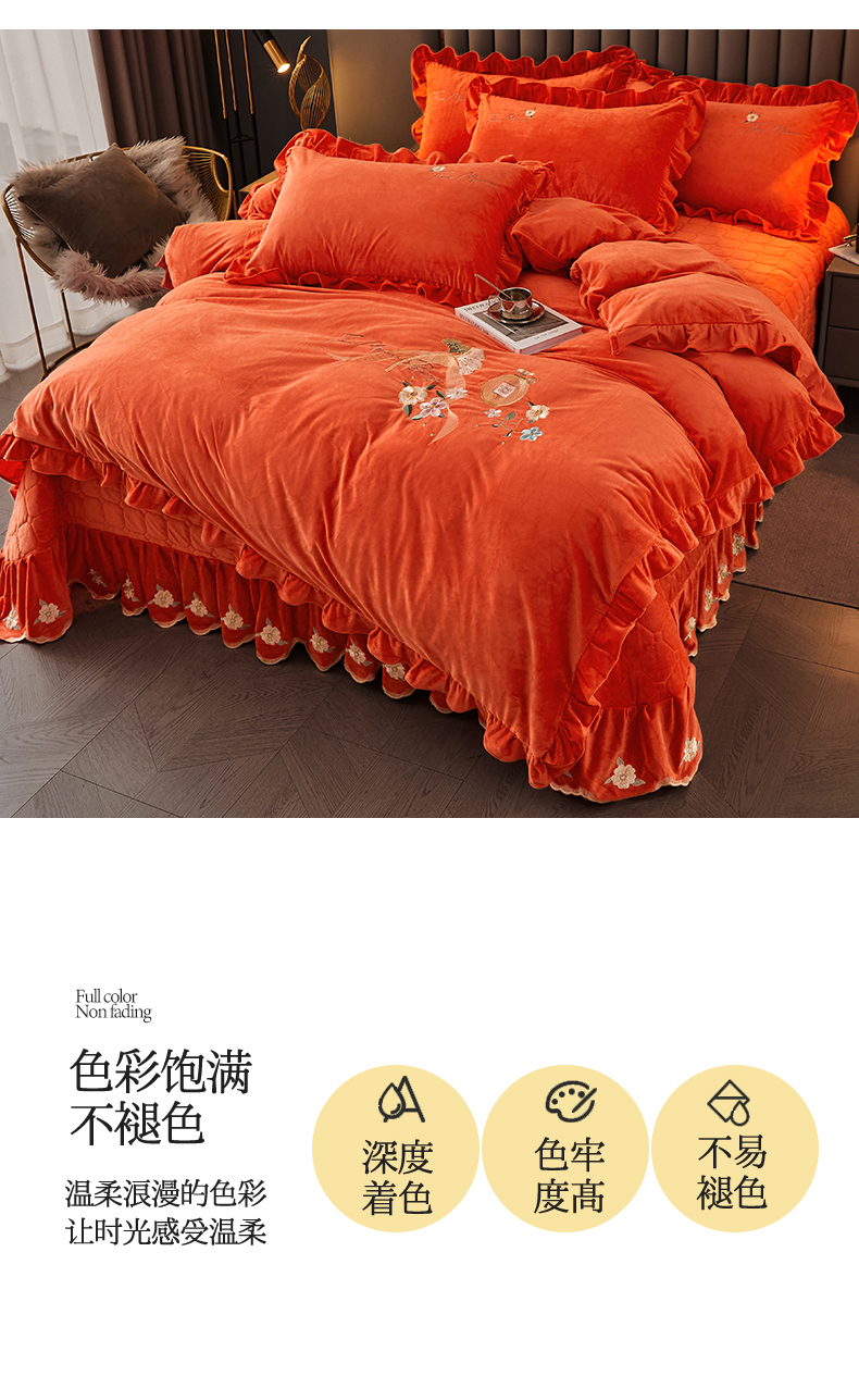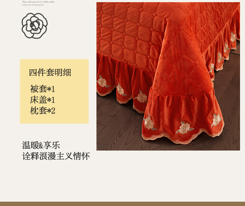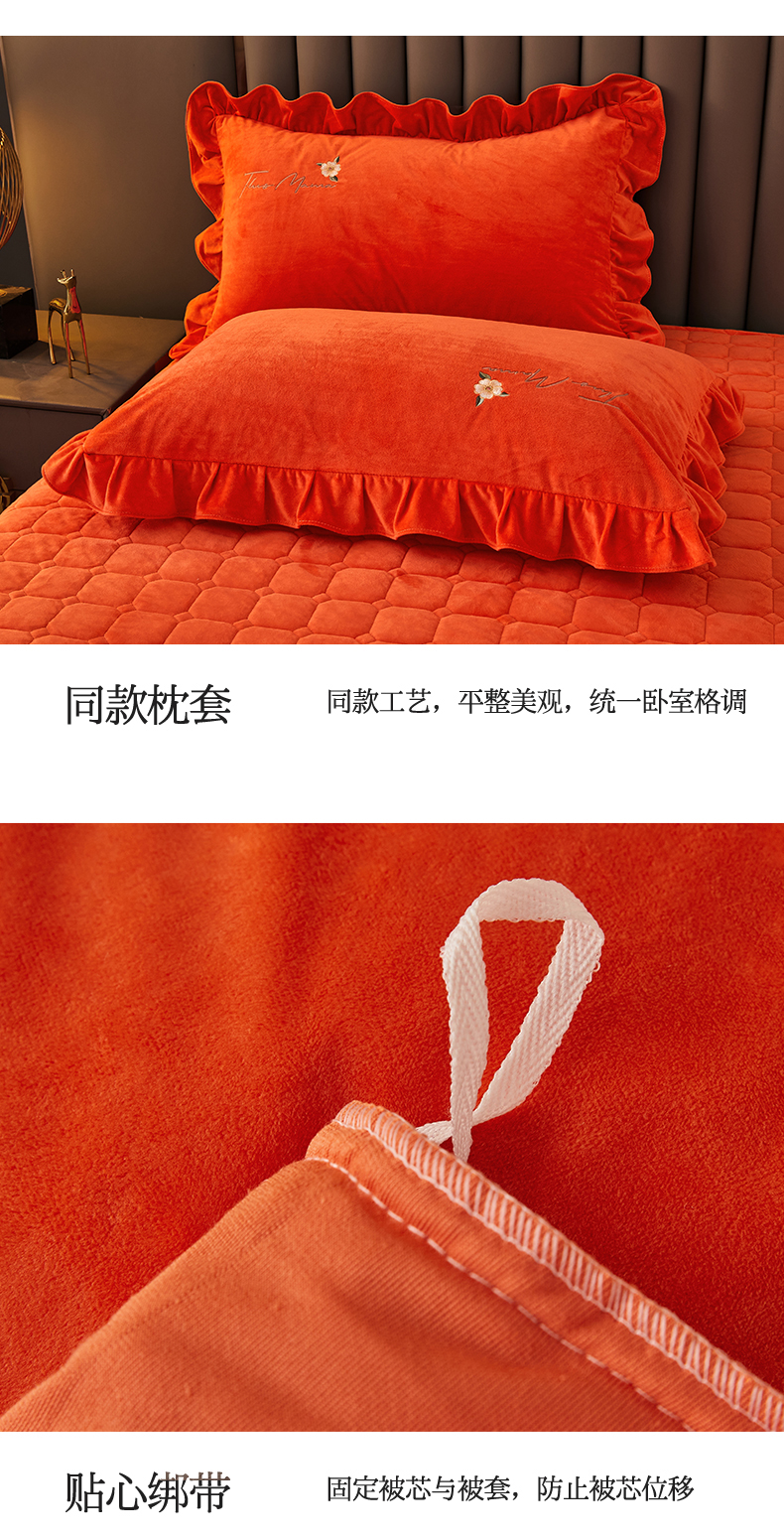 当前位置: 91家纺网 > 商品网购 > 床品套件 > 四件套 > 宝宝绒四件套 > 恒爱家纺 2023新款温暖舒适加密宝宝绒床盖四件套-邂逅系列 桔色