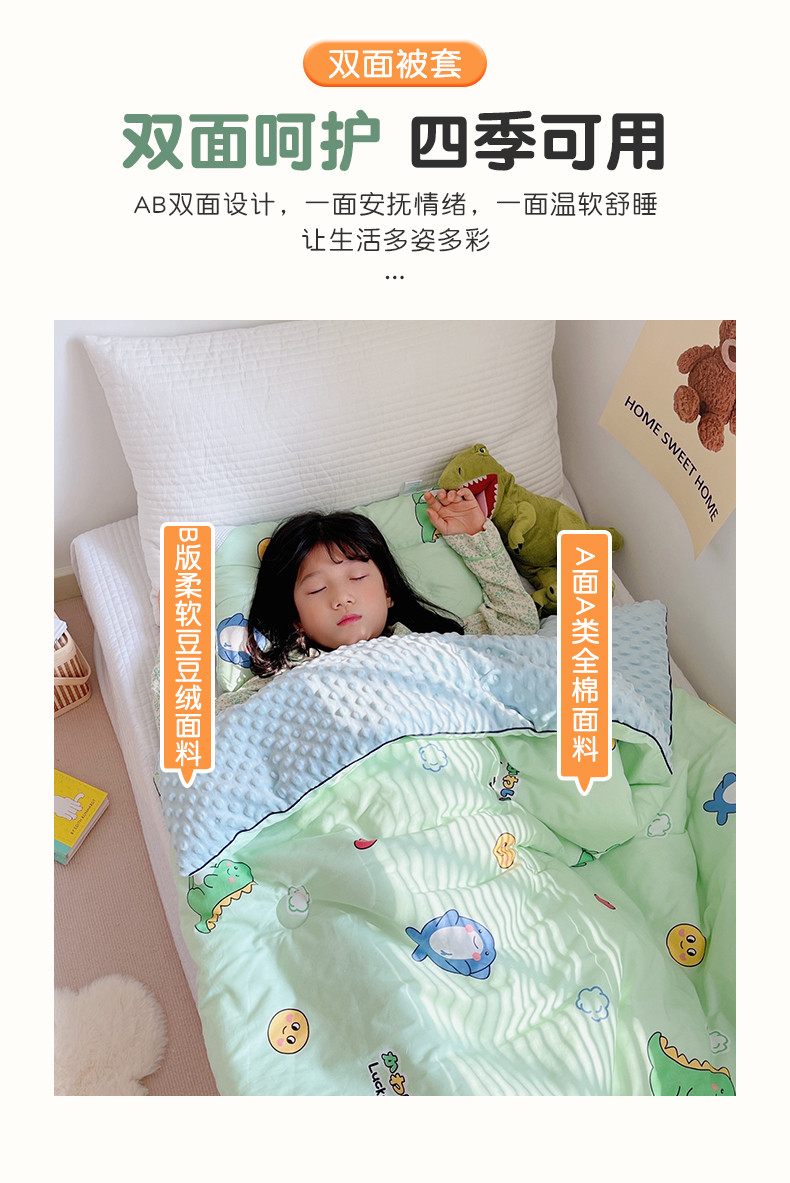 • 91家纺网 家纺一手货源 找家纺 鱼宝 2023新款全棉可拆洗豆豆被套 恐龙