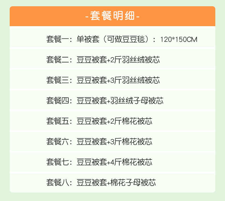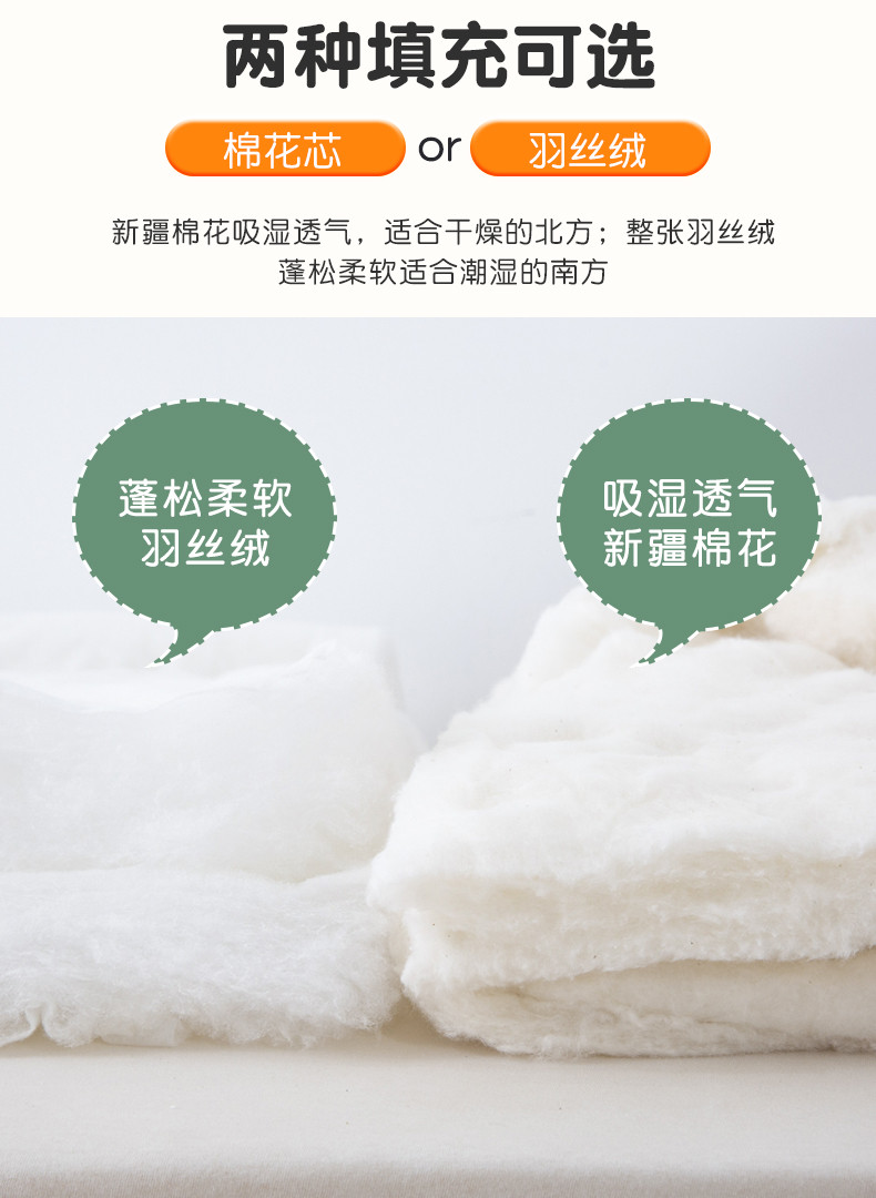 • 填充纤维种类: 大豆蛋白改性聚酯纤维