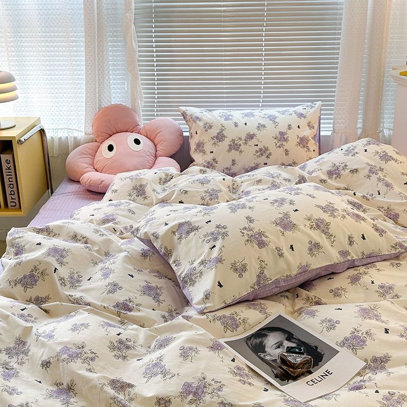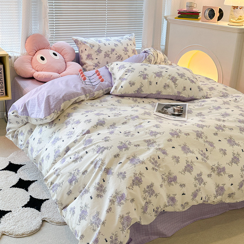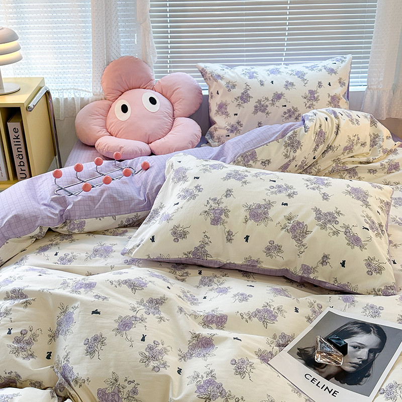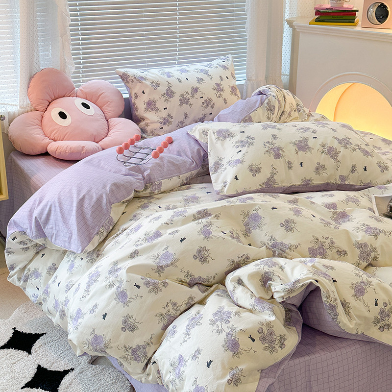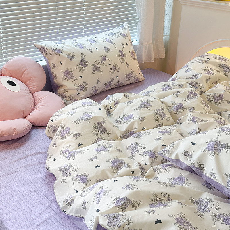 商品名称:昔可 2023新款全棉可爱动物卡通印花四件套 紫藤花