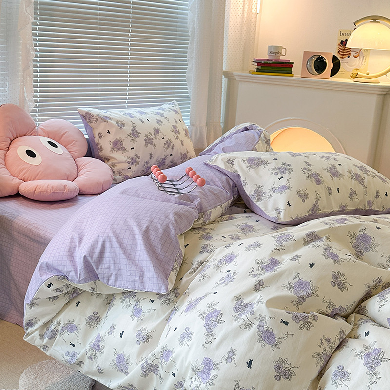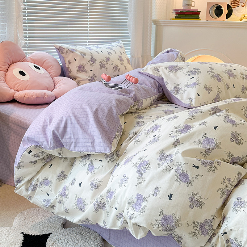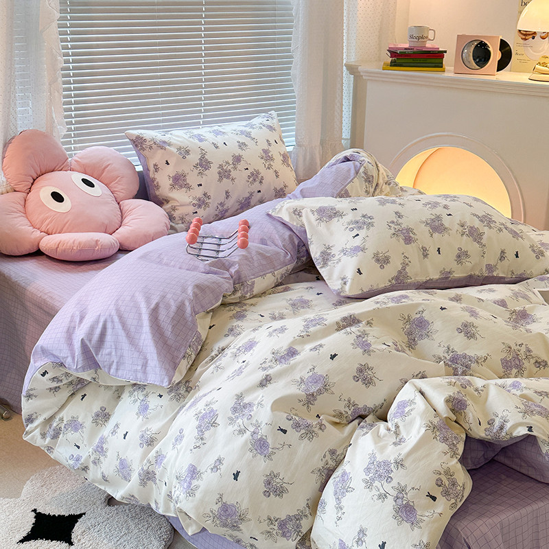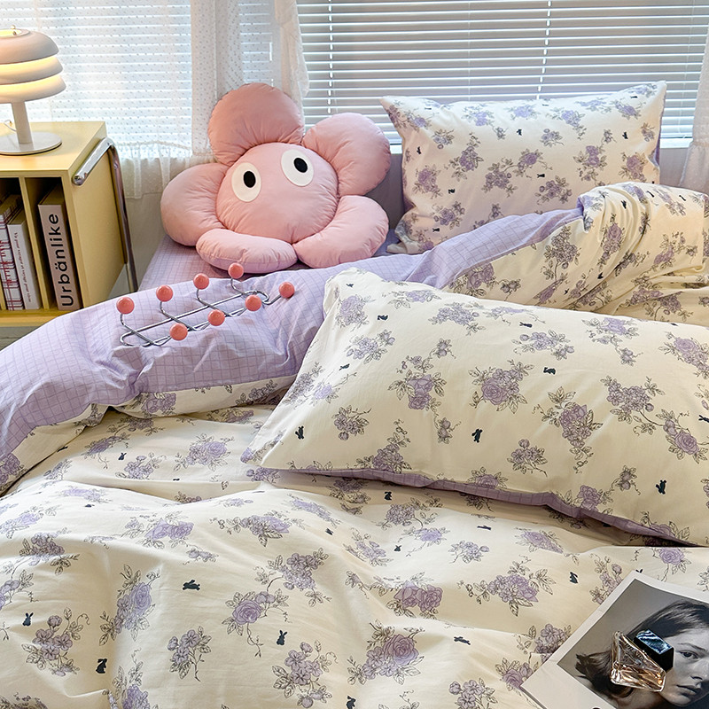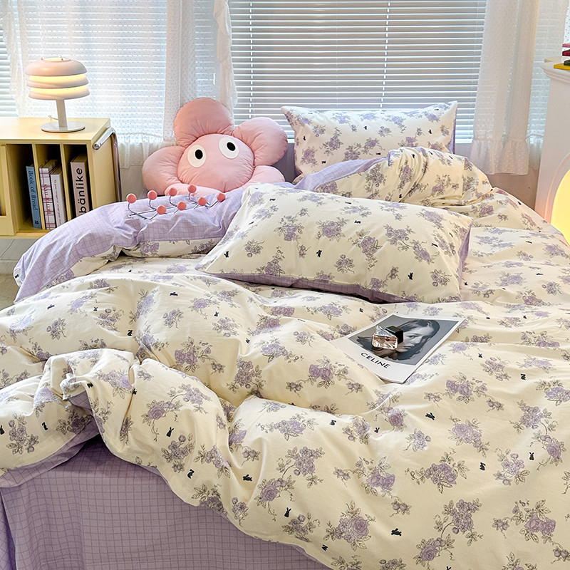 商品名称:昔可 2023新款全棉可爱动物卡通印花四件套 紫藤花