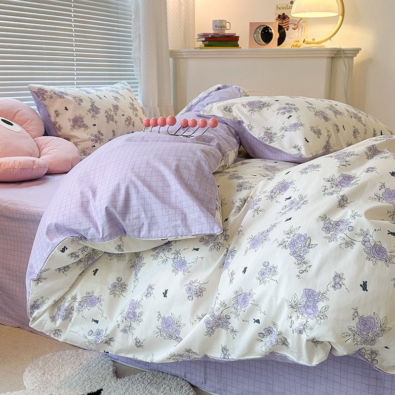 (总)昔可家纺 2023新款全棉小花系列四件套,柏林少女,小小的樱桃,紫色葡萄