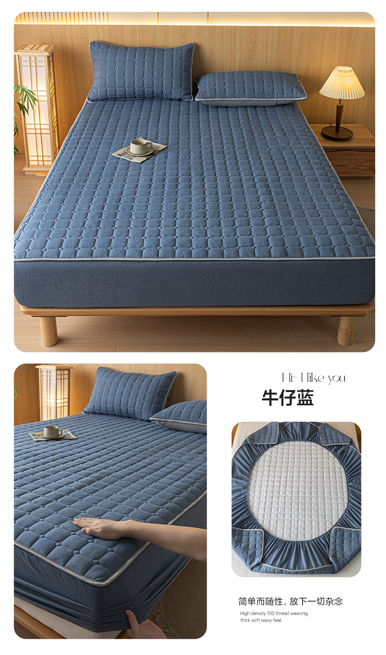 • 91家纺网 家纺一手货源 找家纺 卡伦 2025新款A类纯棉水洗棉夹棉床笠 牛仔蓝