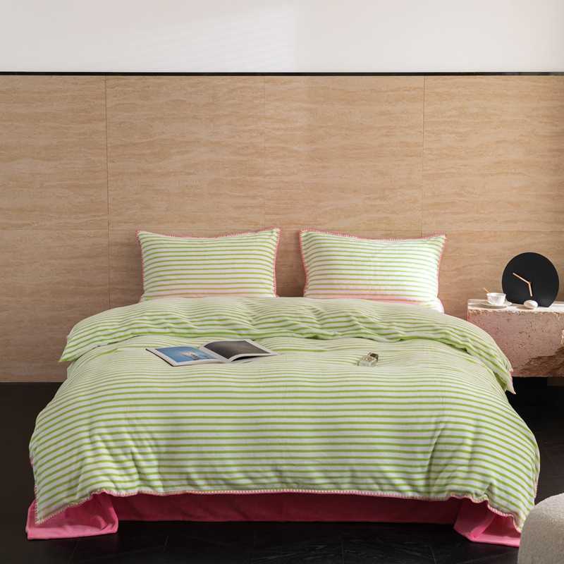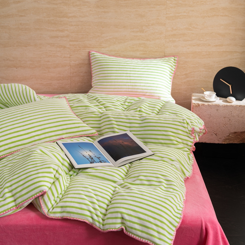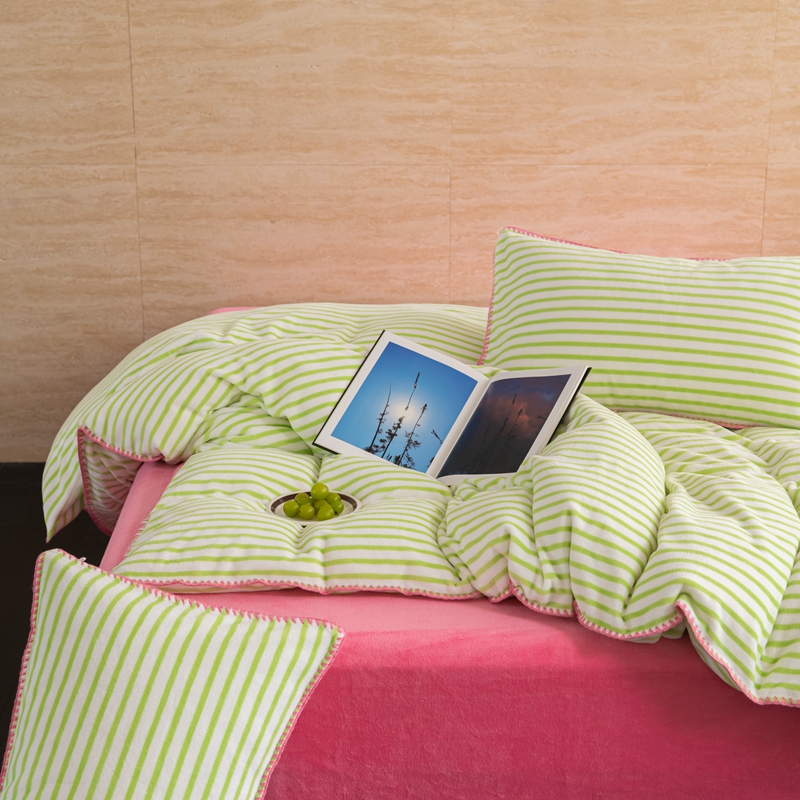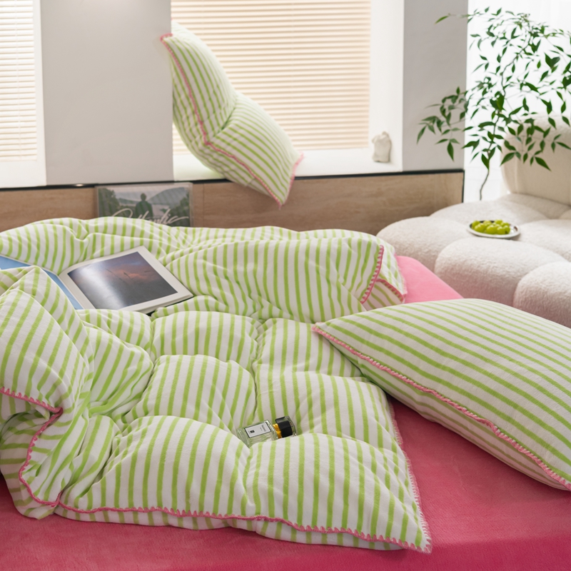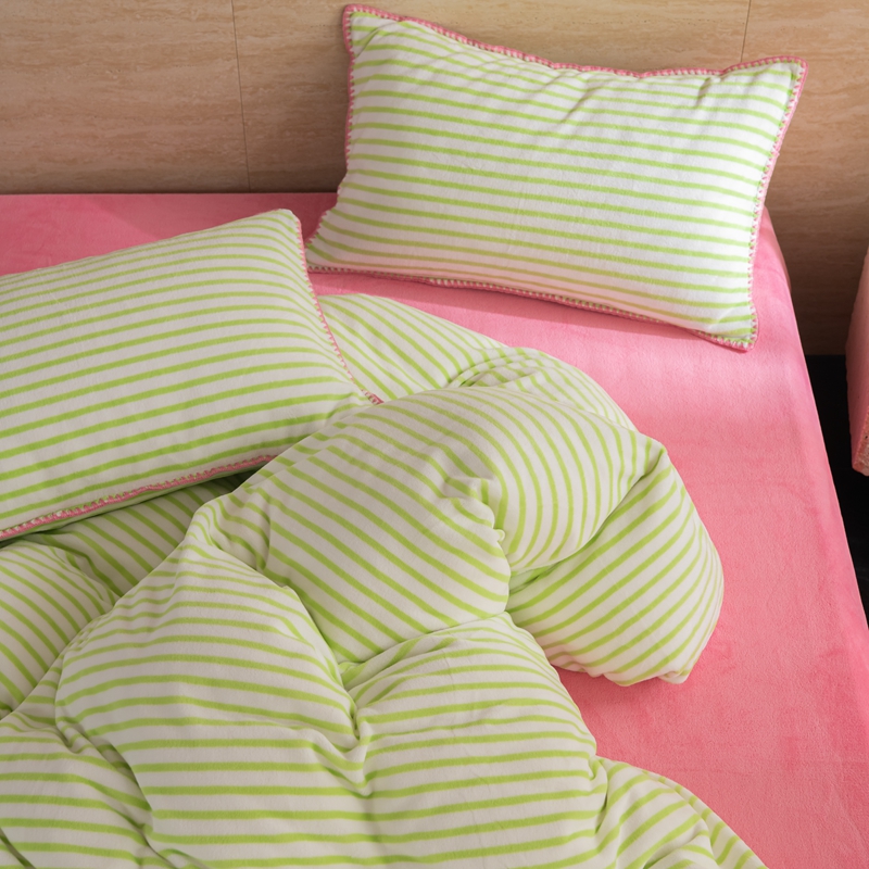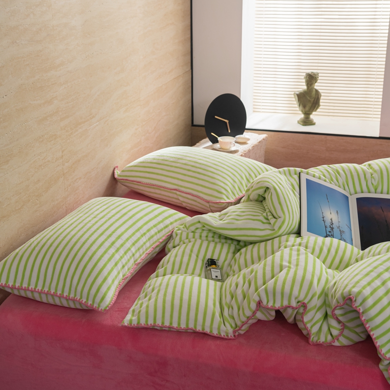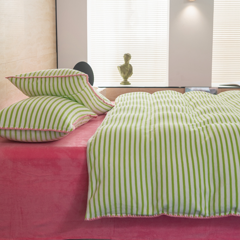 洋铭区(原狠狠爱) 2023新款ab版牛奶绒心动系列条纹四件套 心动绿白条