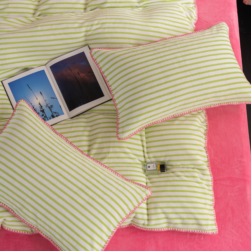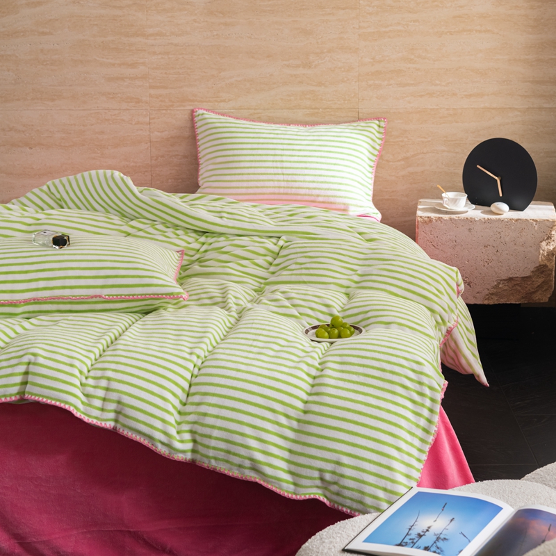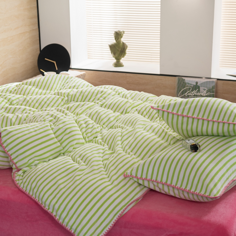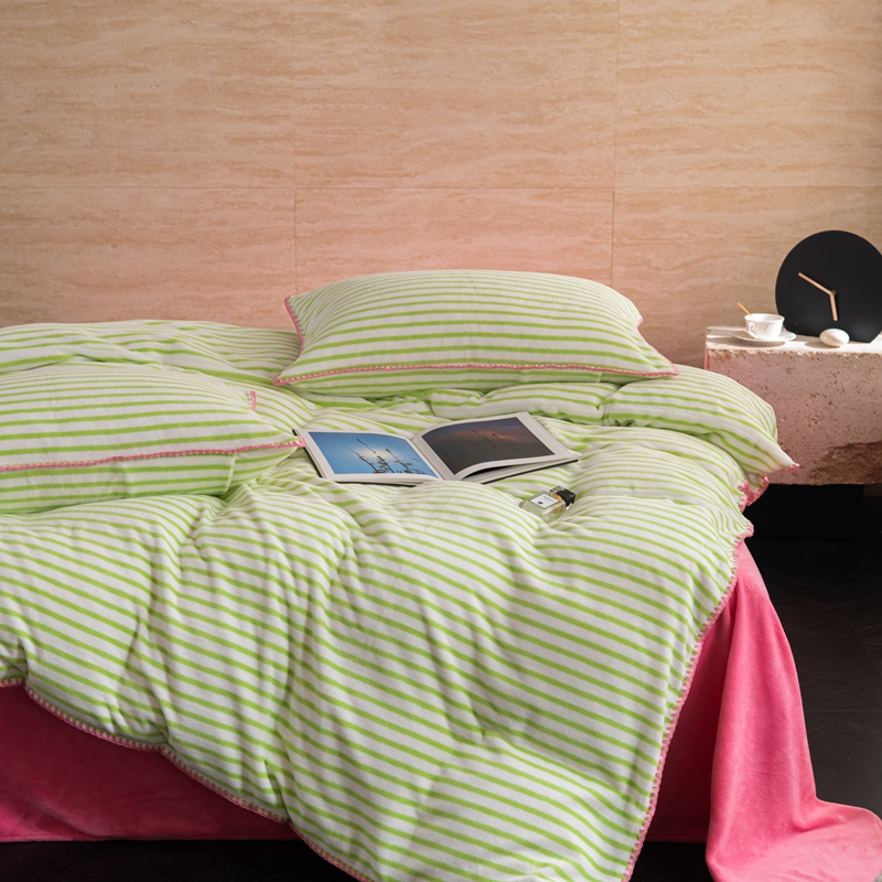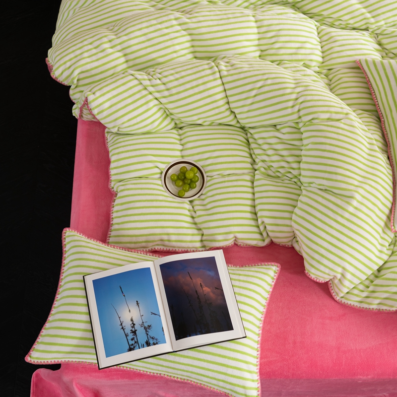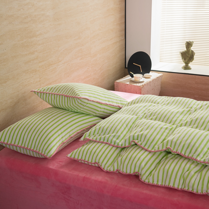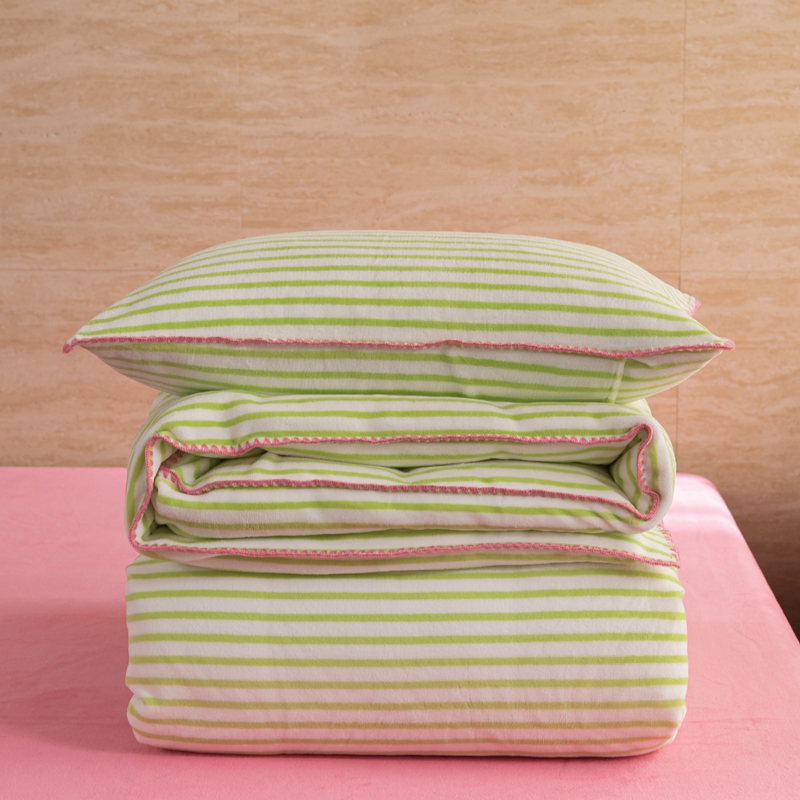 洋铭区(原狠狠爱) 2023新款ab版牛奶绒心动系列条纹四件套 心动绿白条