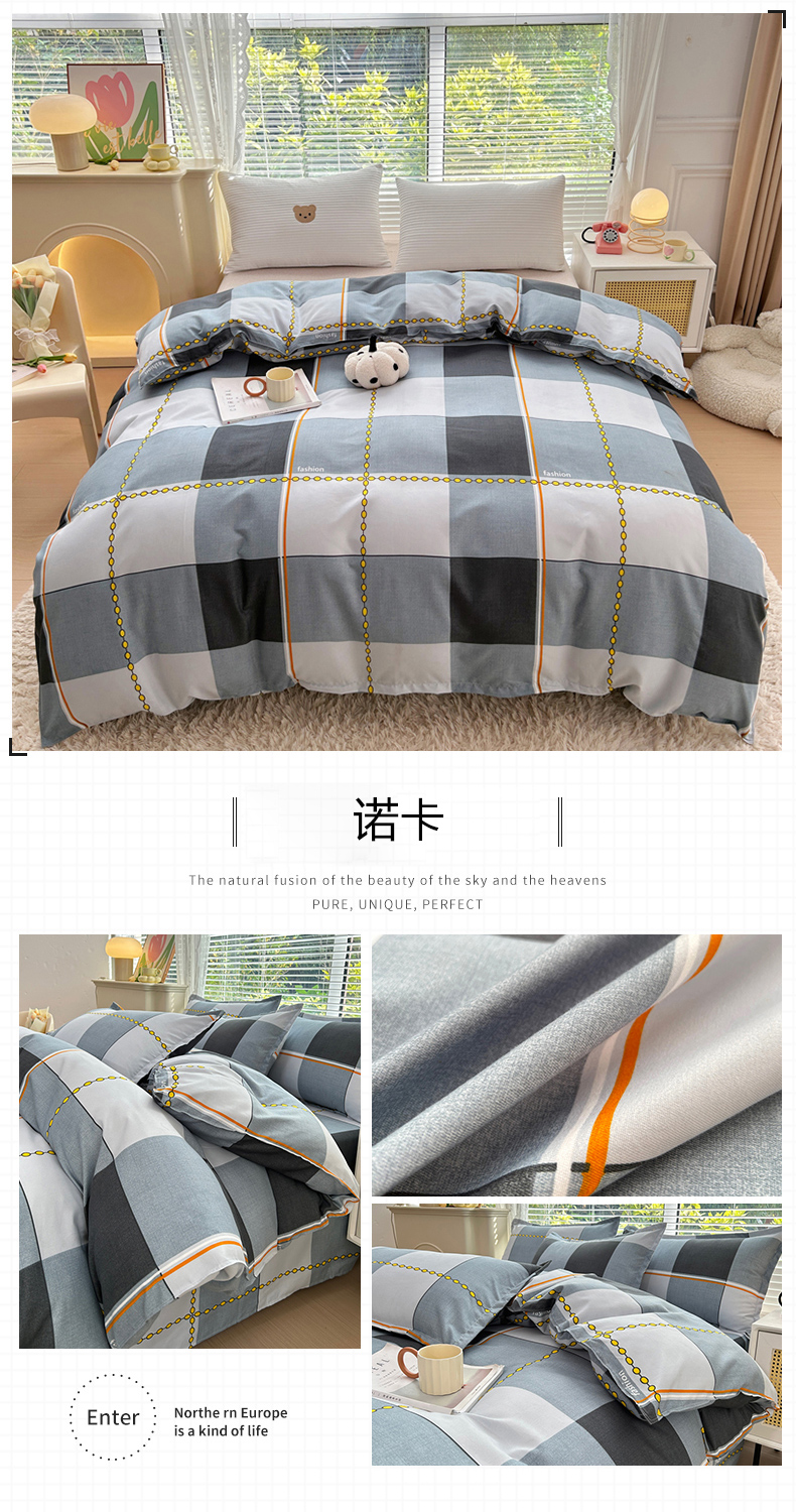 (总)曼璐 2025新款水洗棉无印风纯色条格单品被套,草莓格,丁香玉,粉卡其,黑白条,黄小格,卡其灰,蓝小格,洛克兰灰,芒果格,米小格,蜜粉灰,浅灰,浅灰深灰,深灰,雾蓝洛克兰,雾蓝玉,玉深灰,芝士黄洛克兰,芝士卡其