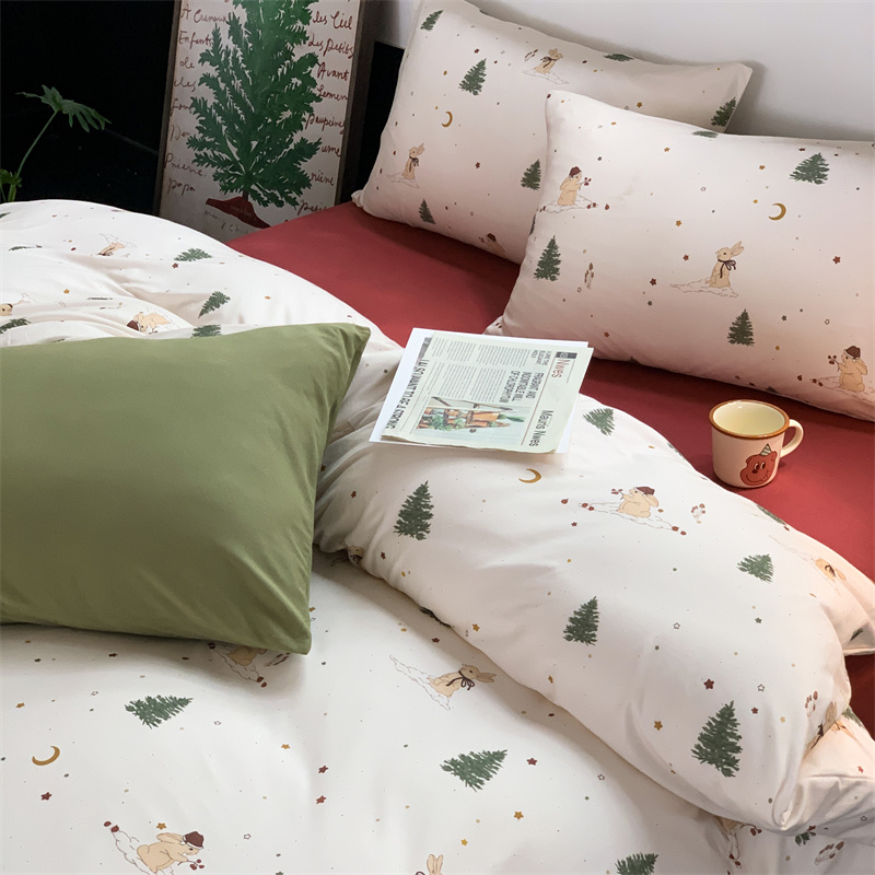 当前位置: 91家纺网 > 商品网购 > 床品套件 > 四件套 > 全棉普通四件套 > 源启生活2023新款亲肤舒适秋冬全棉针织棉四件套 圣诞兔