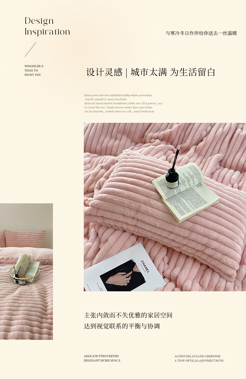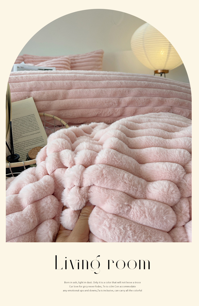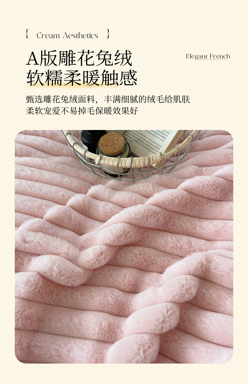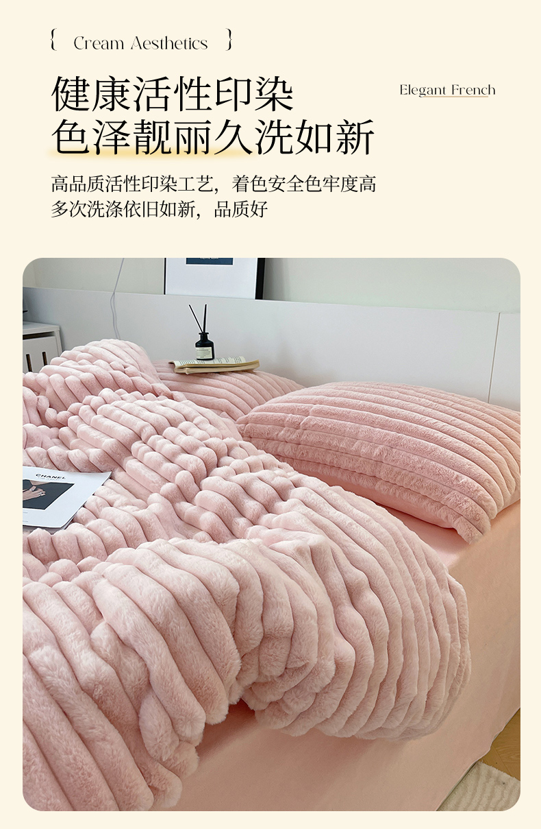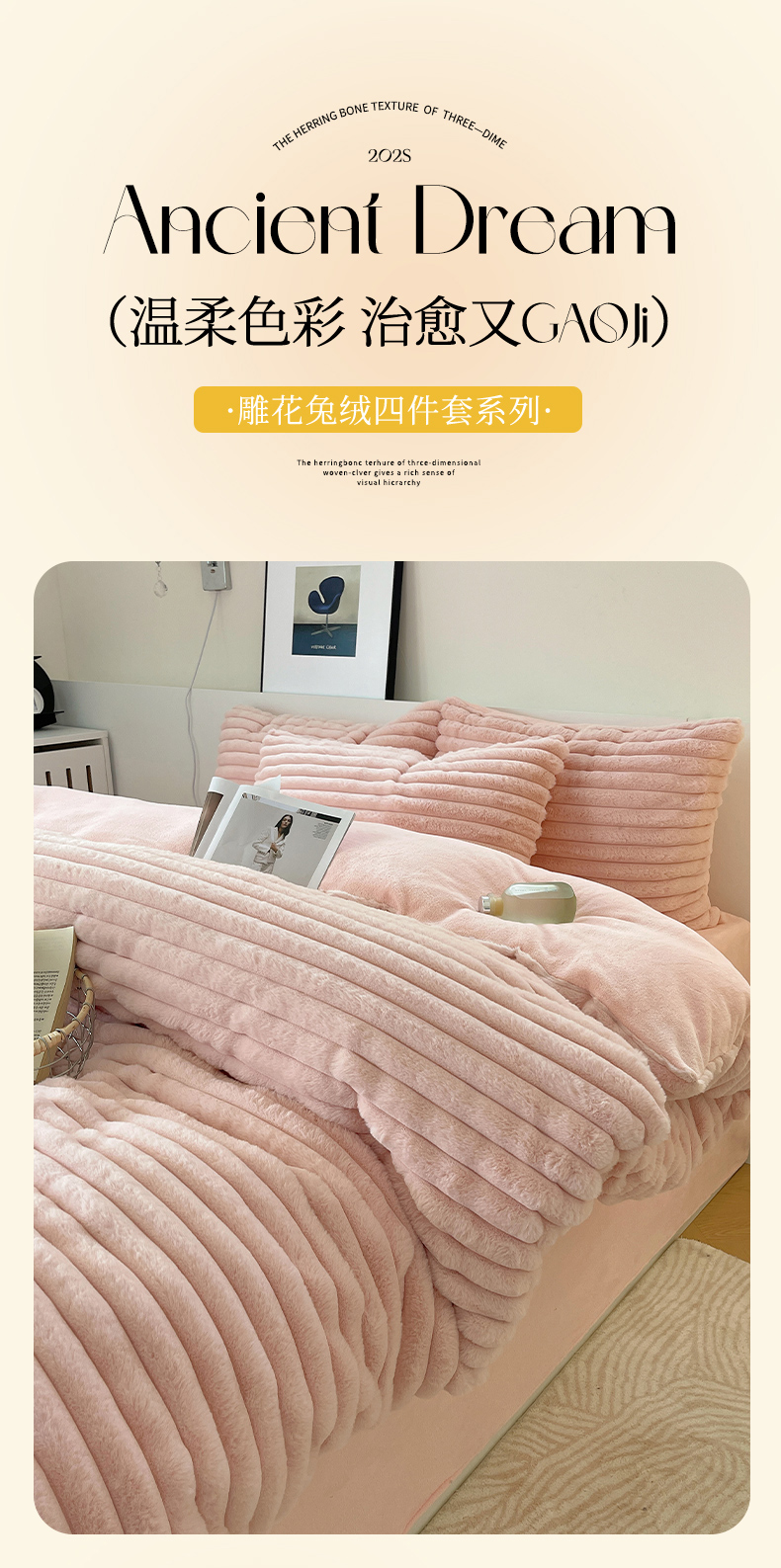 三朵家纺 2023新款加厚保暖雕花兔毛绒四件套 艾拉-蜜桃粉