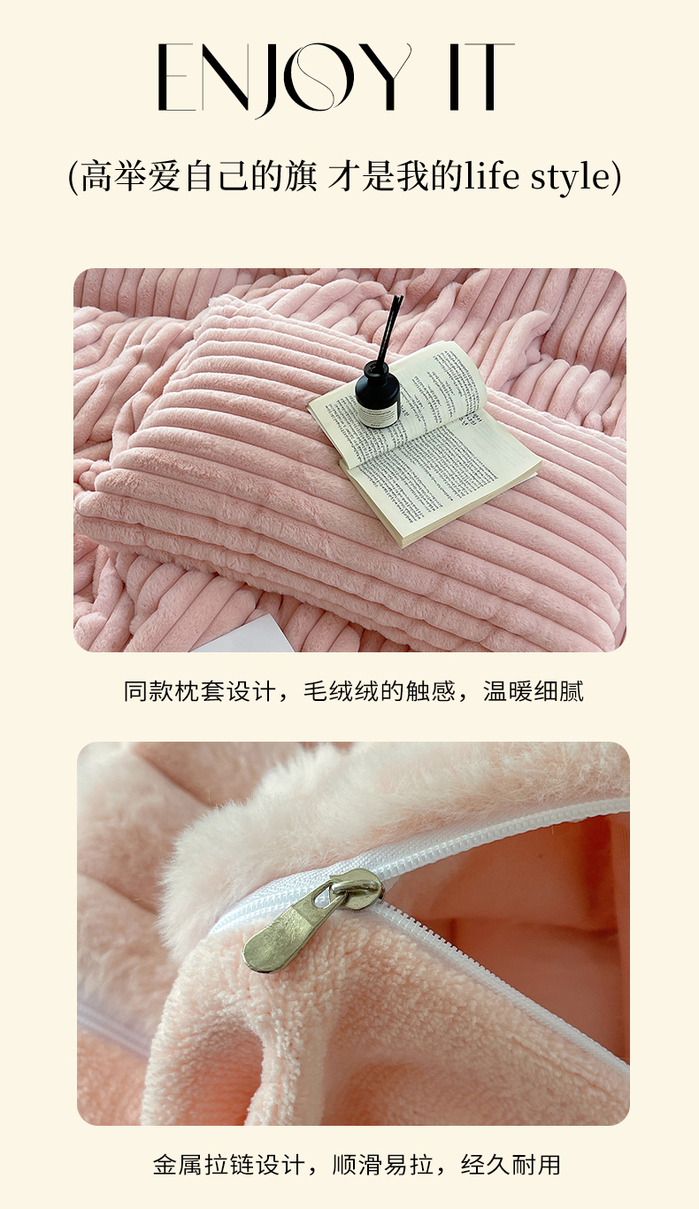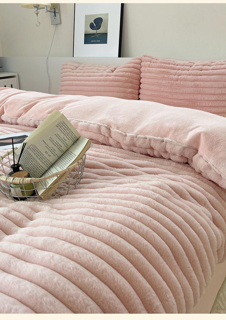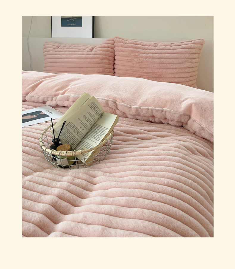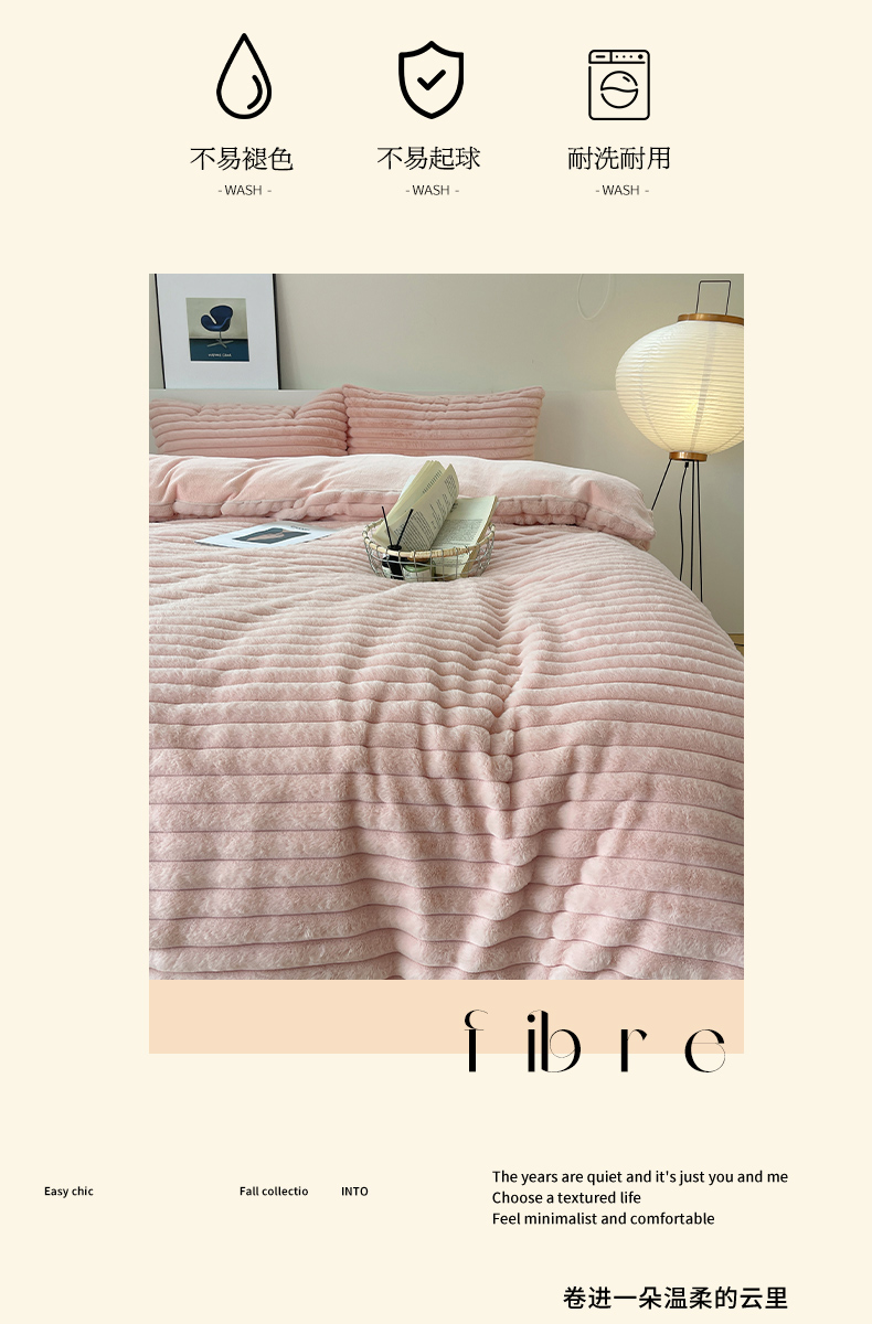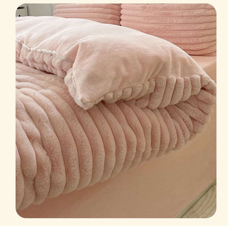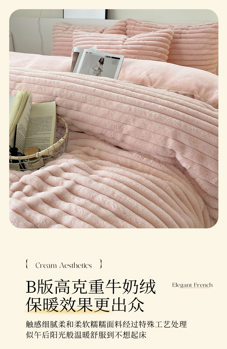 三朵家纺 2023新款加厚保暖雕花兔毛绒四件套 艾拉-蜜桃粉