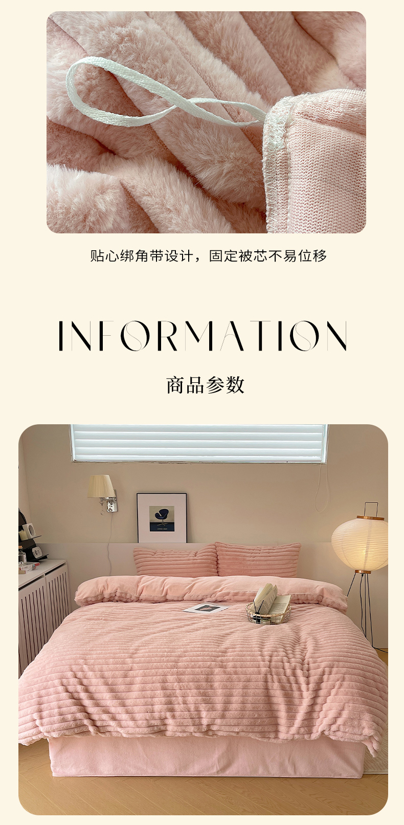 商品名称:三朵家纺 2023新款加厚保暖雕花兔毛绒四件套 艾拉-蜜桃粉