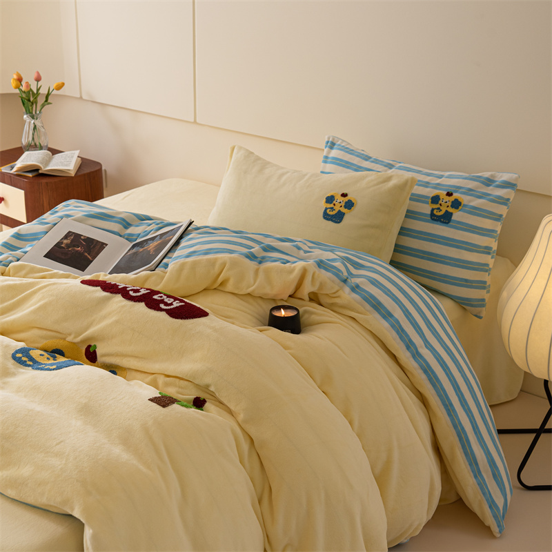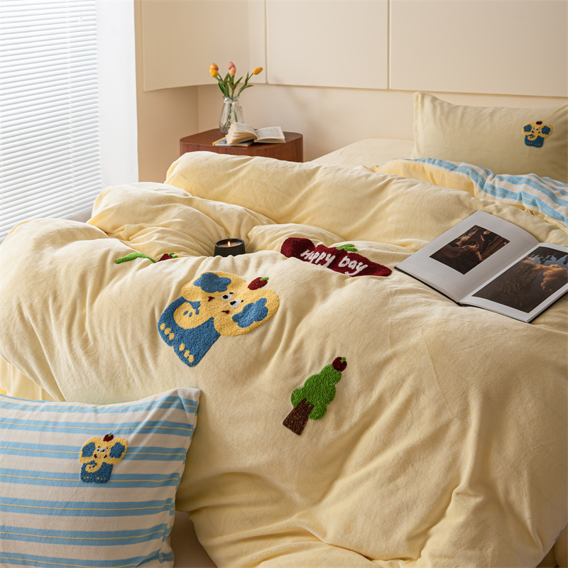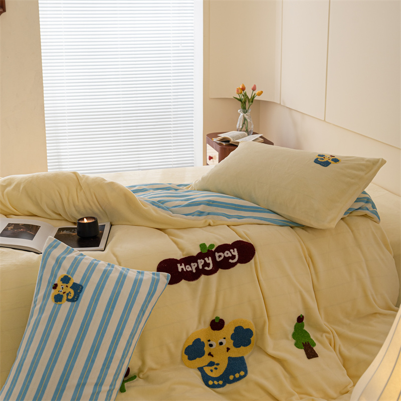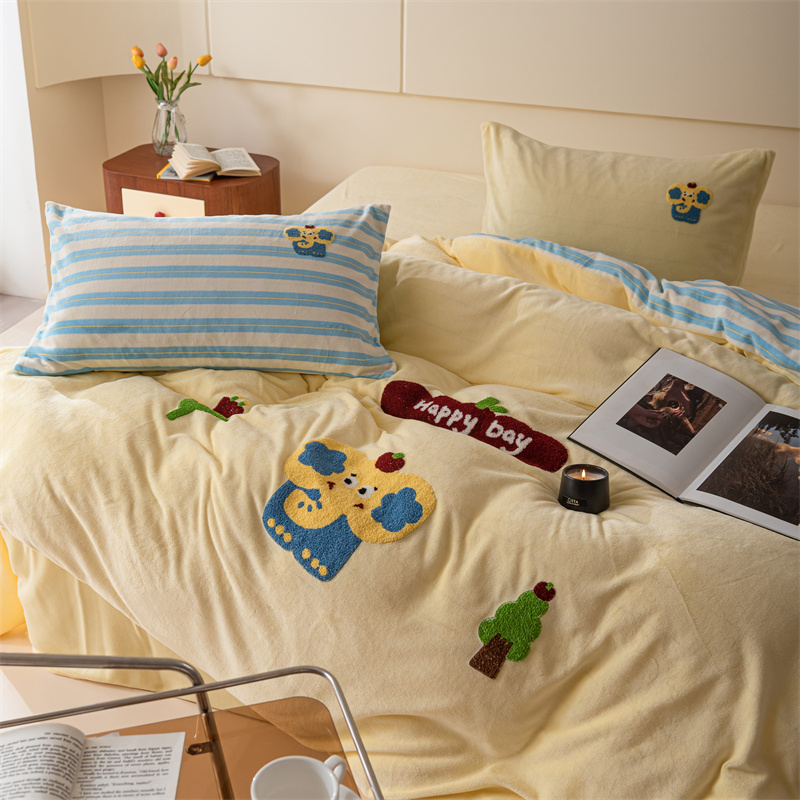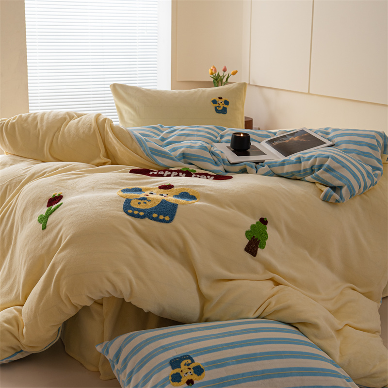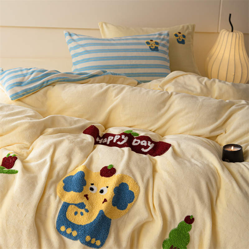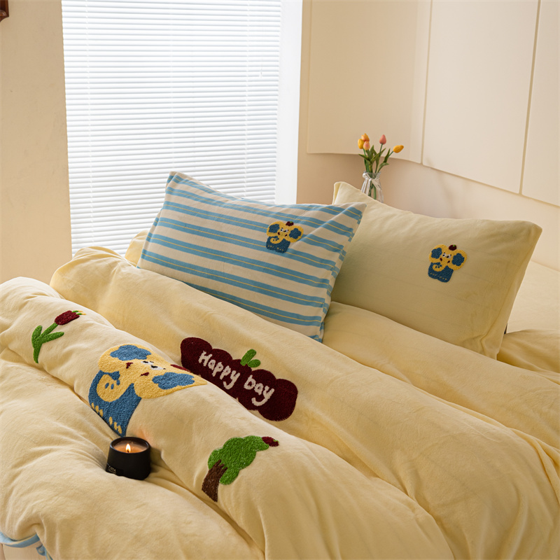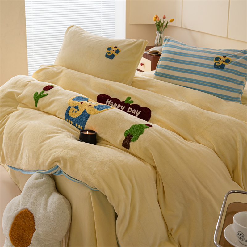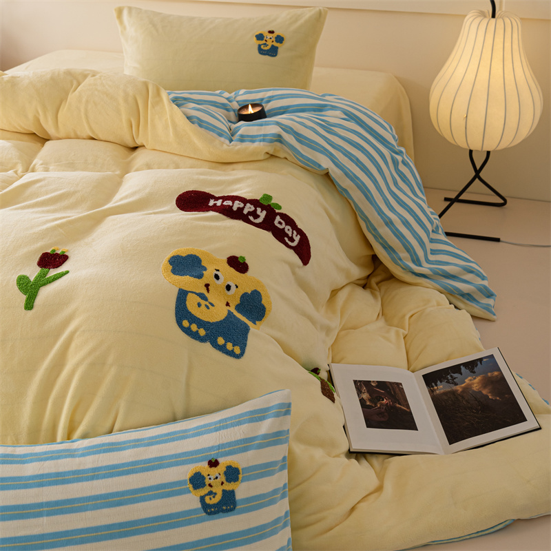 洋铭区(原狠狠爱) 2023新款绣花卡通牛奶绒四件套 小蓝象
