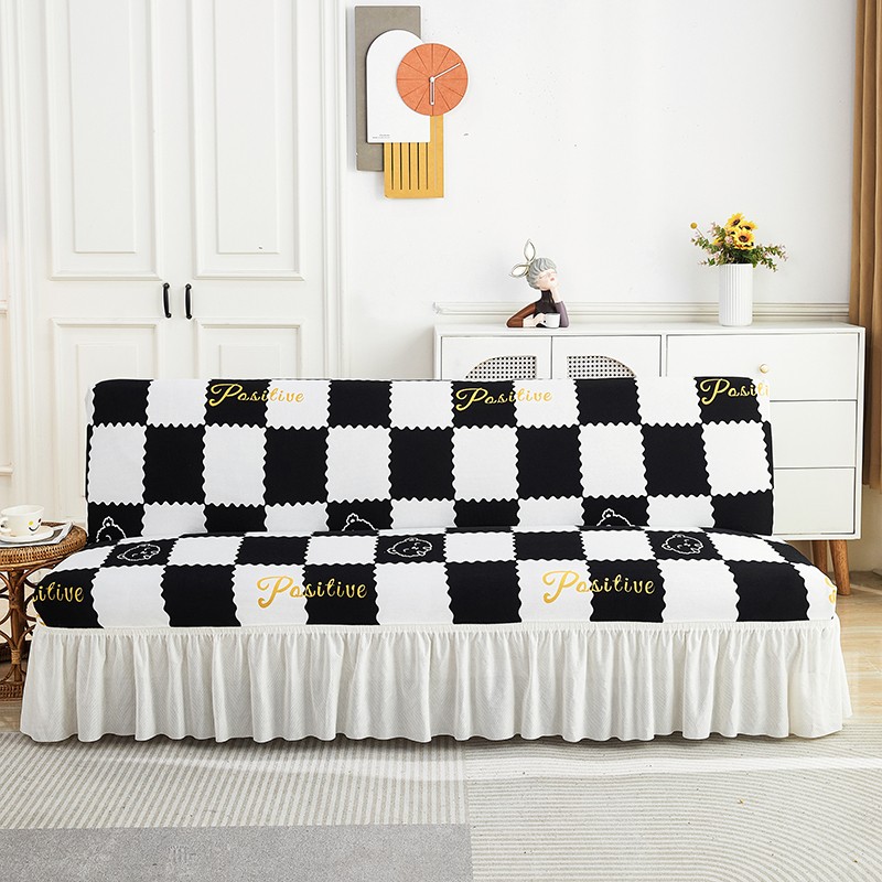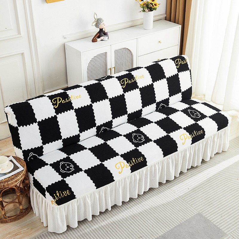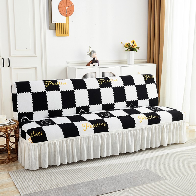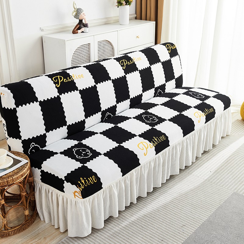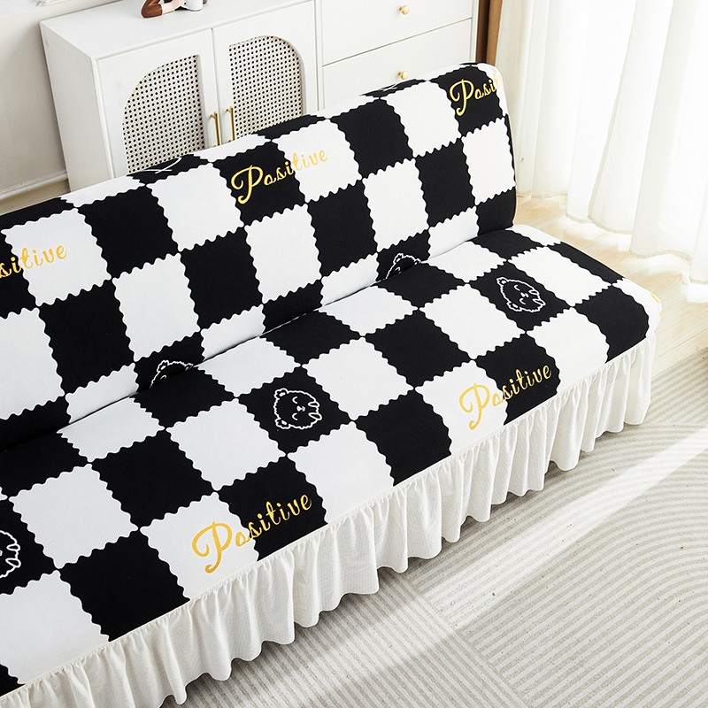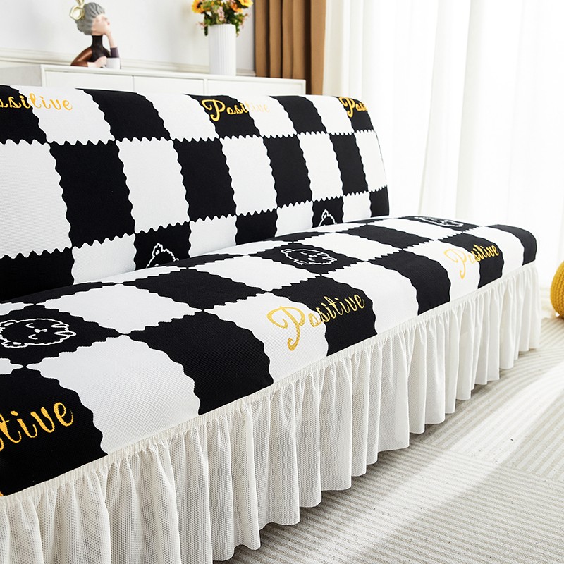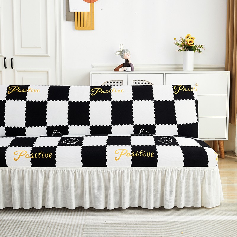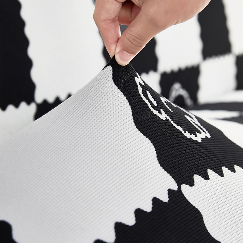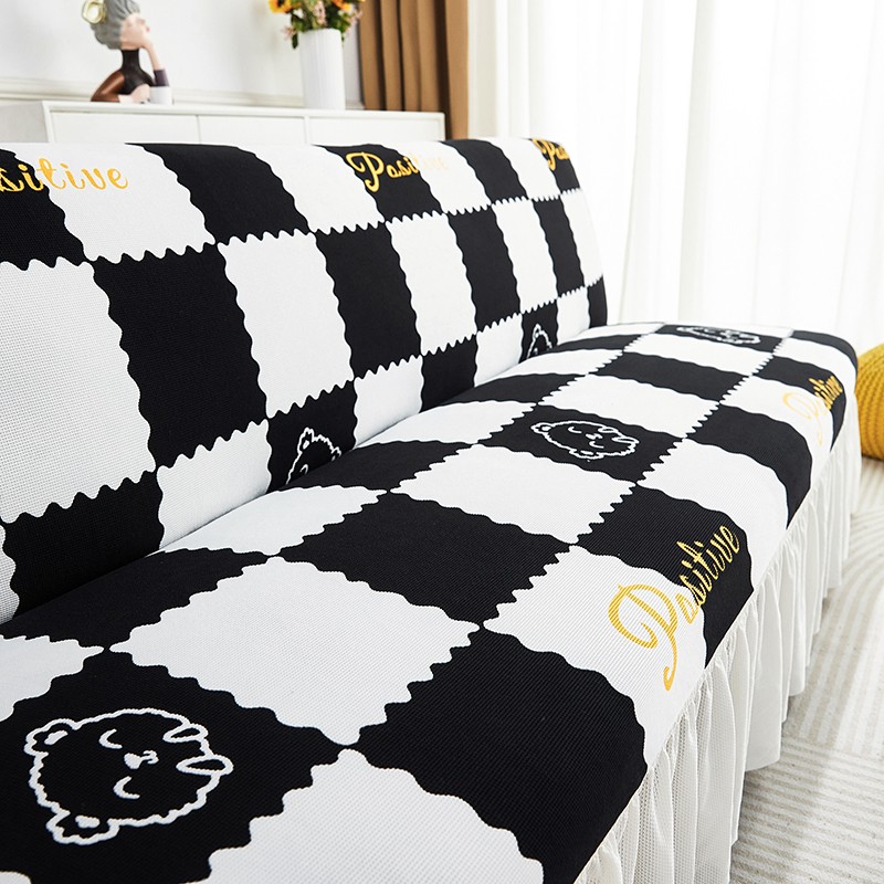 丝绮鹿 2023新款针织柔肤格沙发床套裙边款 黑白格