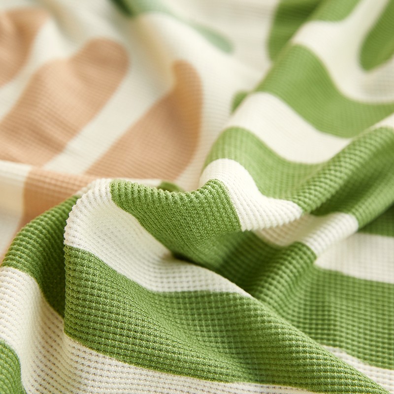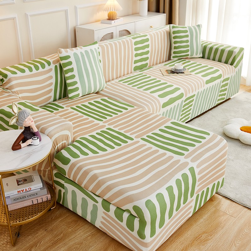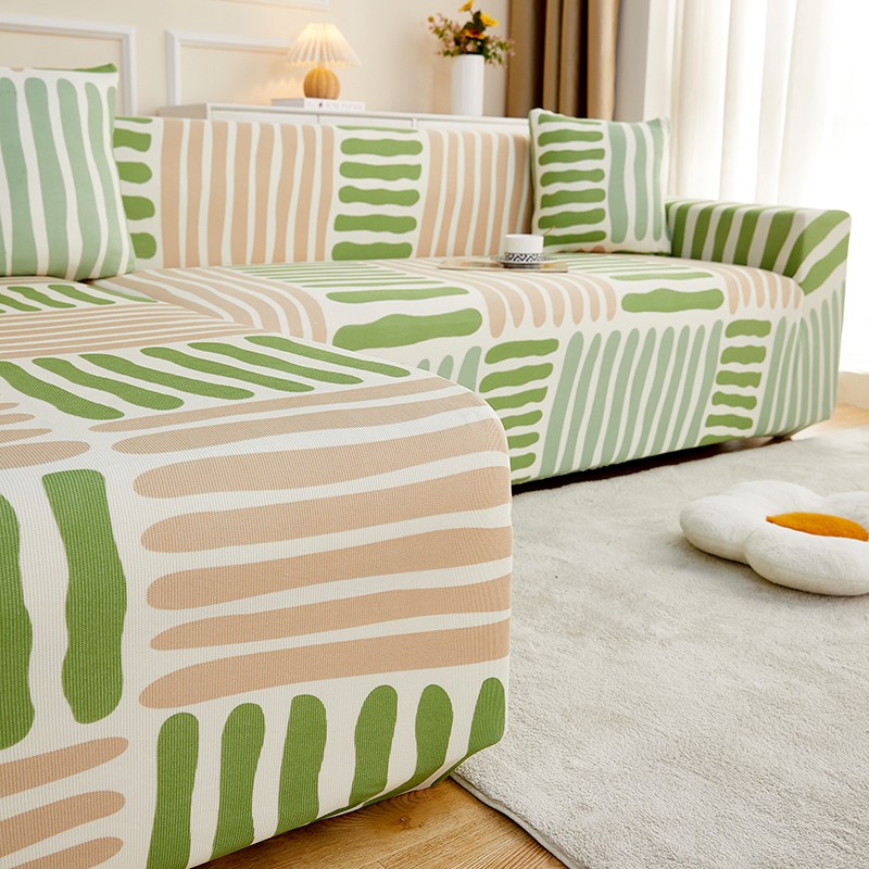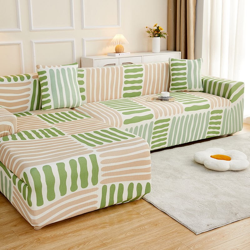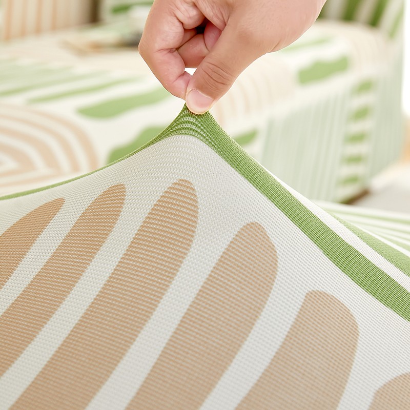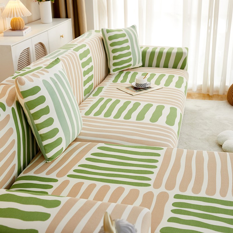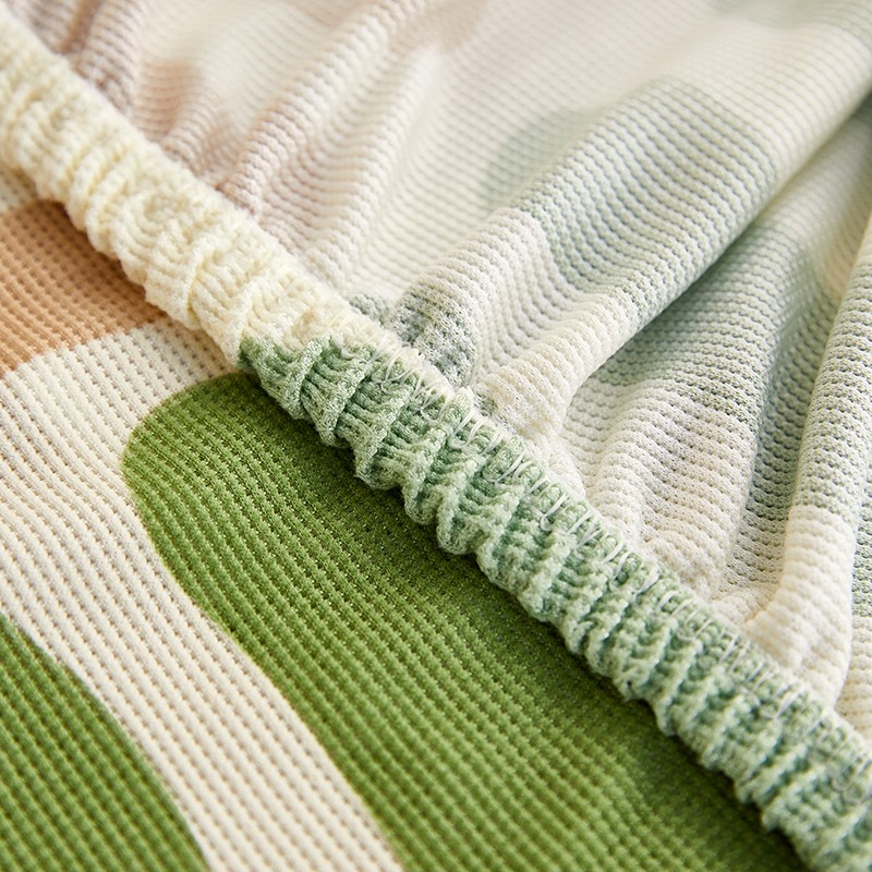 丝绮鹿2023针织柔肤格贵妃沙发套松紧款 买一个沙发套默认送一个抱枕套 米绿条纹