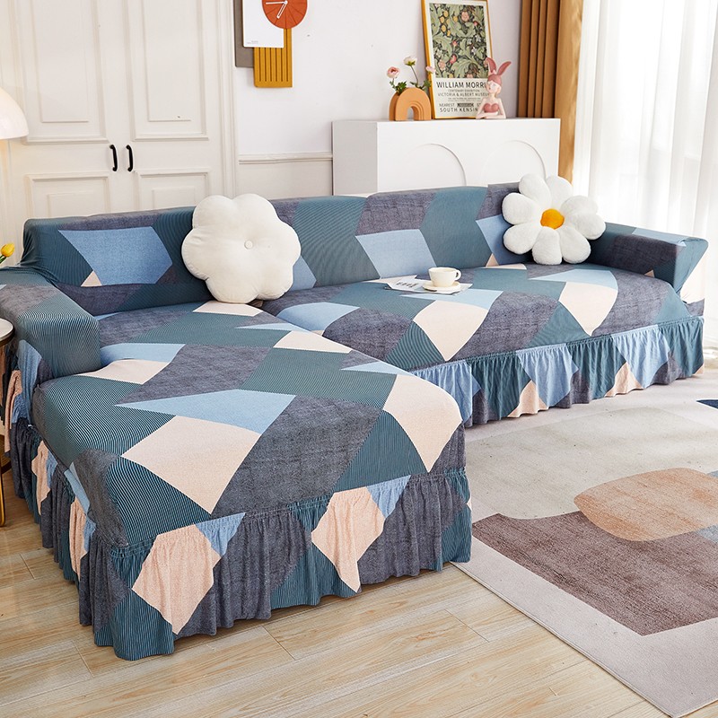 丝绮鹿 2023新款牛奶丝沙发套贵妃图(裙边款) 现代绅士