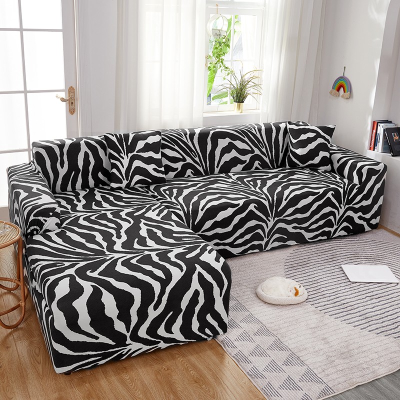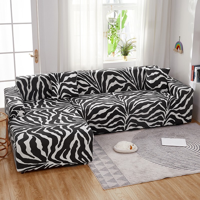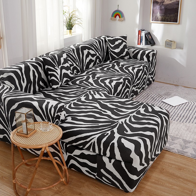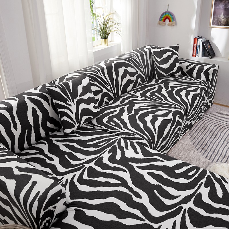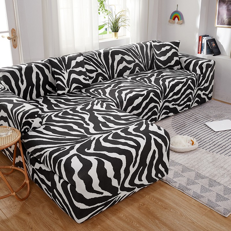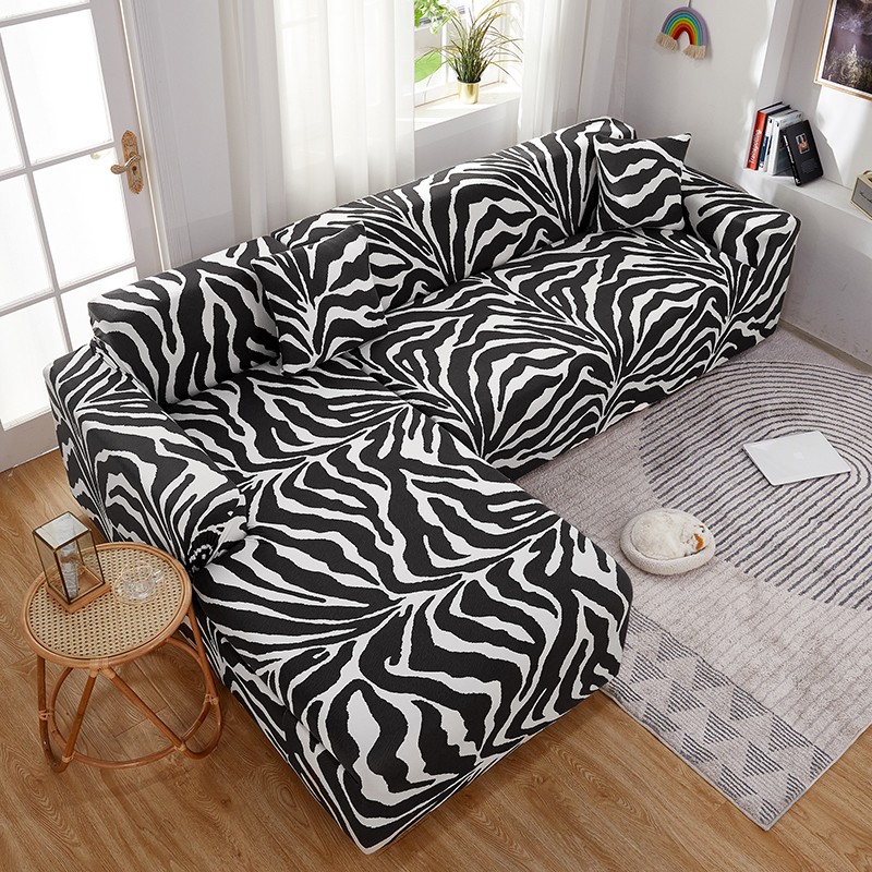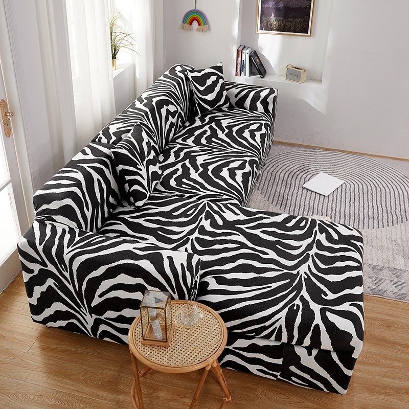 丝绮鹿 2023新款牛奶丝沙发套贵妃图(松紧款) 斑马纹