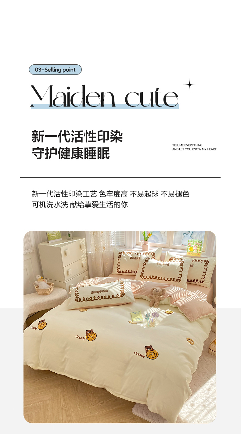 商品名称:欧冠家纺 2024春夏新品专版韩版四季款水洗棉毛巾绣四件套 曲奇