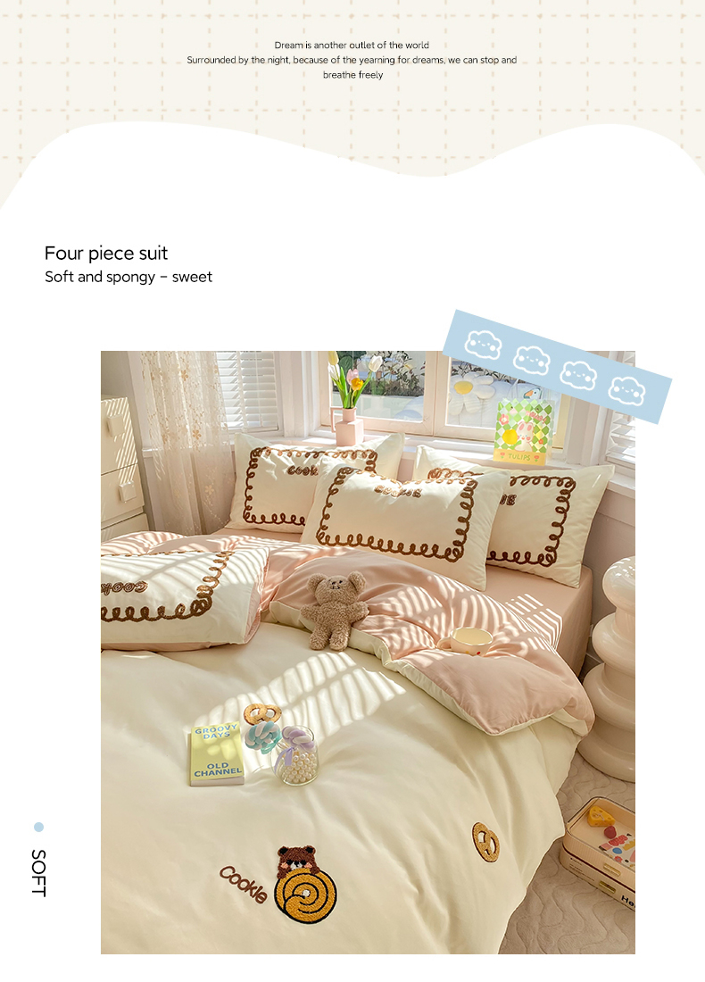 欧冠家纺 2024春夏新品专版韩版四季款水洗棉毛巾绣四件套 曲奇