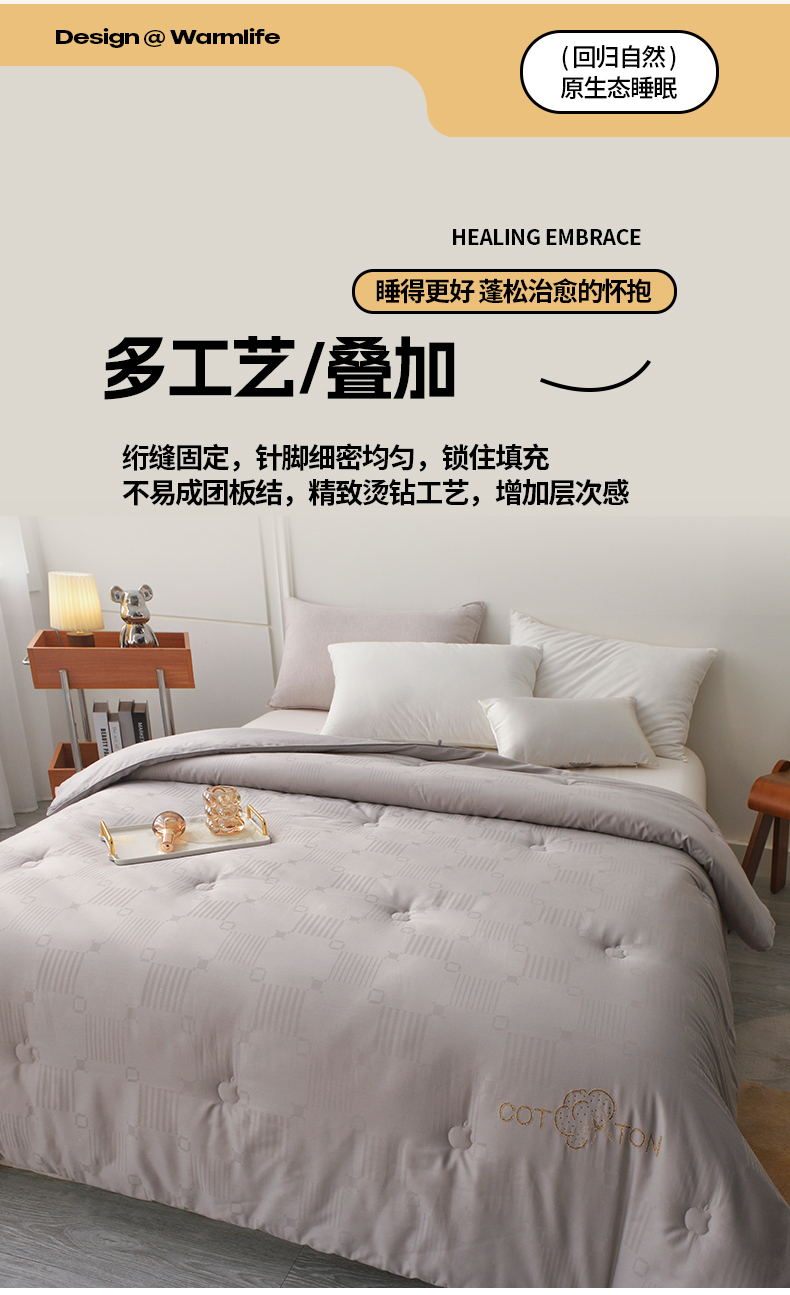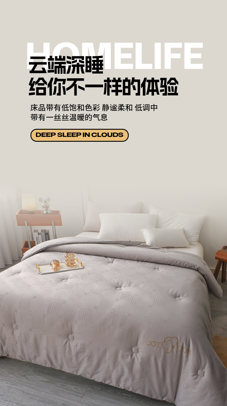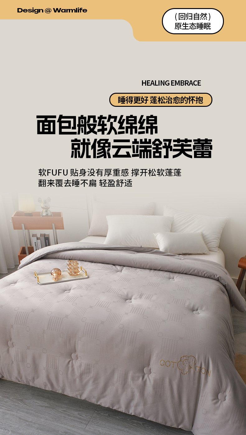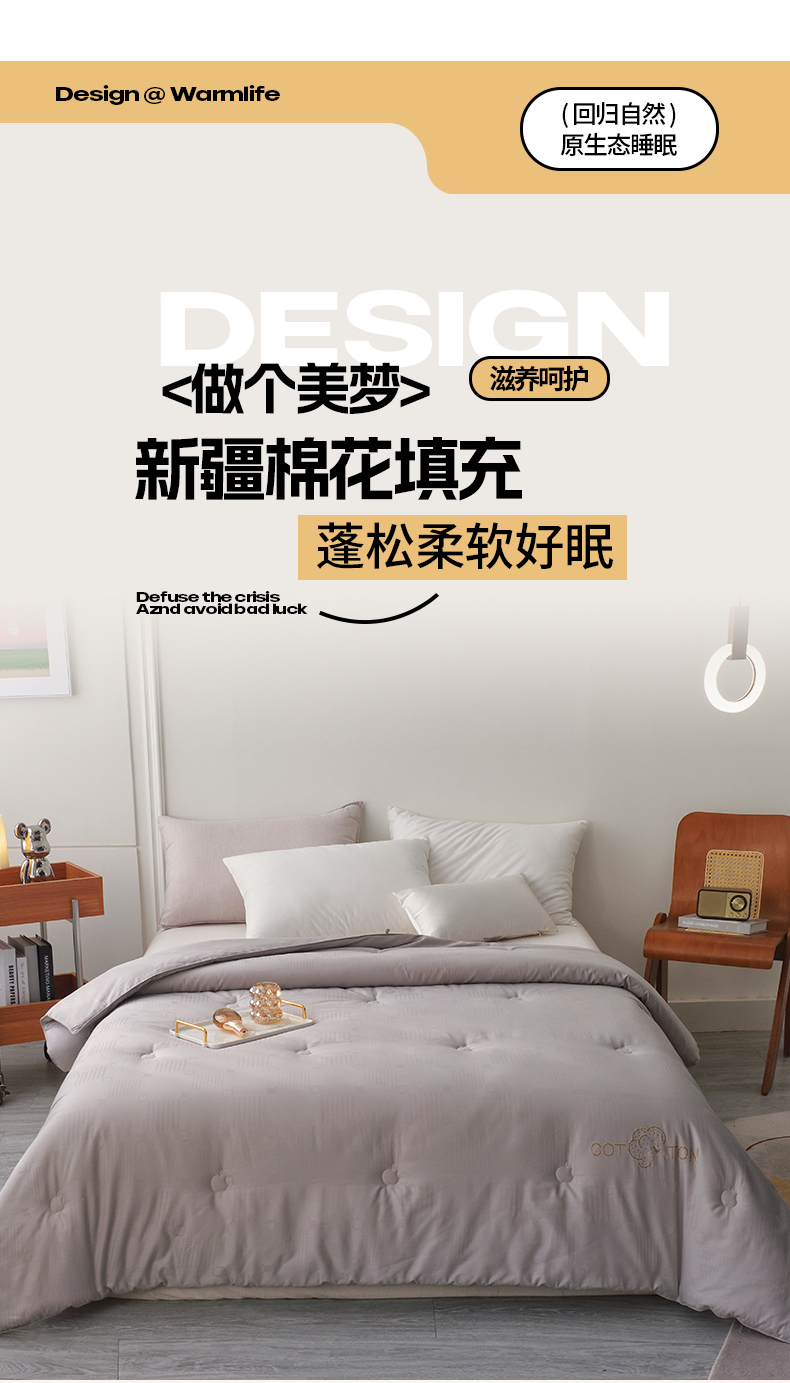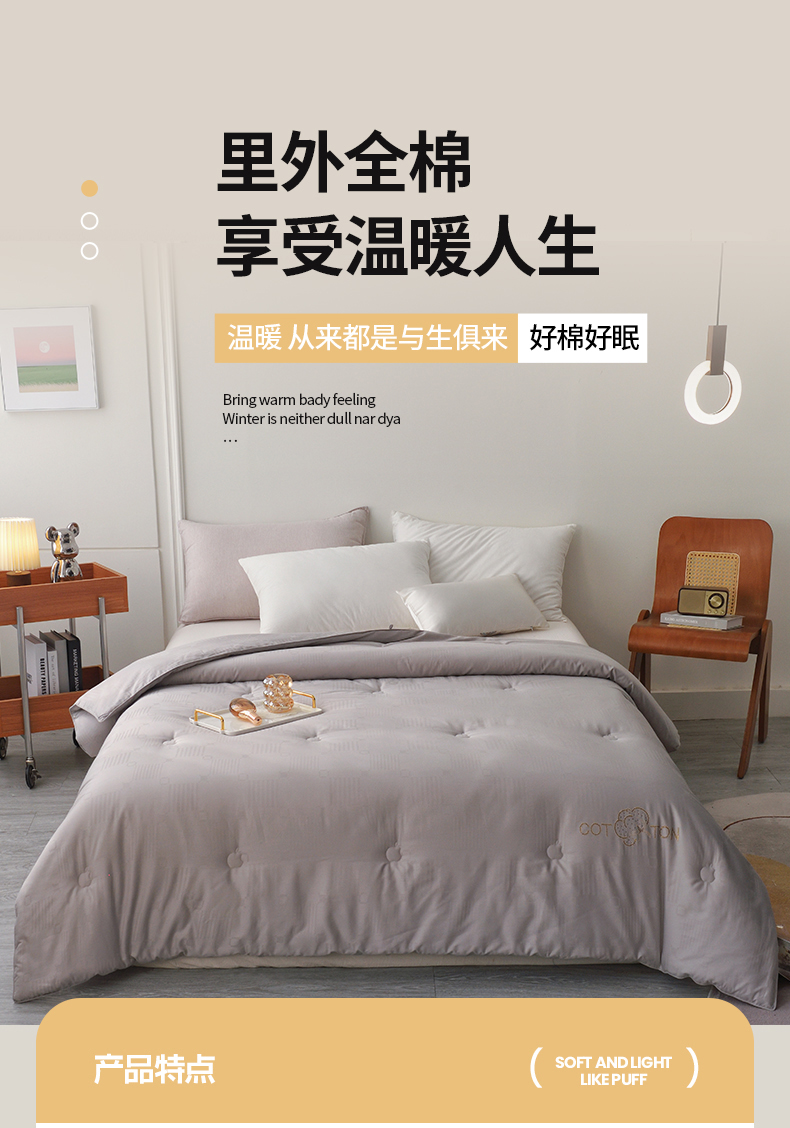 商品名称:博尔菲 新款全棉小提花新疆棉花被 深情告白-灰