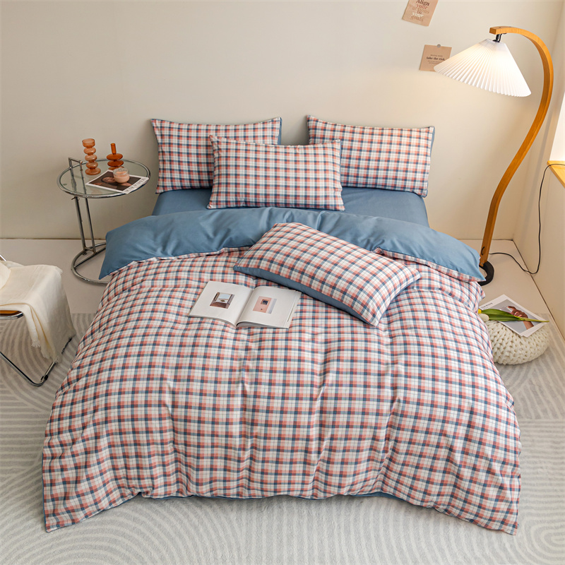 (总)米瑞娜 2024新款无印风四件套格子条纹水洗棉四件套,粉大格,粉条纹,黑白中格,简兮-桔,简兮-蓝,简兮-绿,蓝白中格,蓝大格,蓝条纹,蓝小格,洛卡-咖,绿白中格,绿大格,暖阳-蓝,星空-桔,星空绿,贝拉-粉