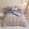 米瑞娜 2024新款无印风四件套格子条纹水洗棉四件套 贝拉-粉
