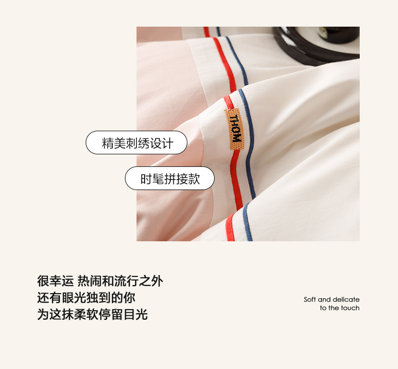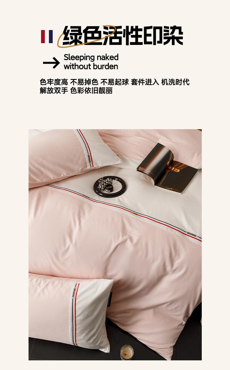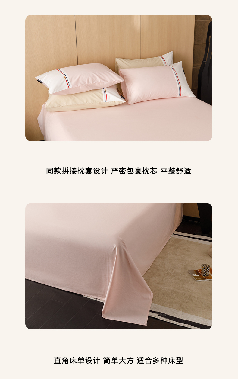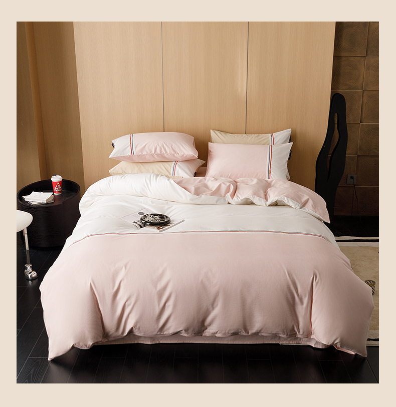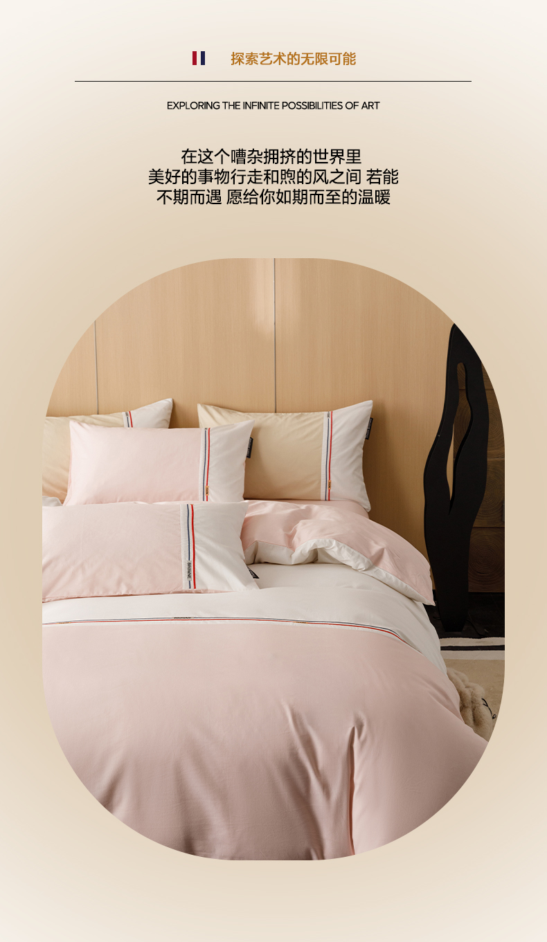 商品名称:卡巴伦家纺 2025新款全棉A类绣花拼接款四件套-布朗 布朗-蜜糖粉