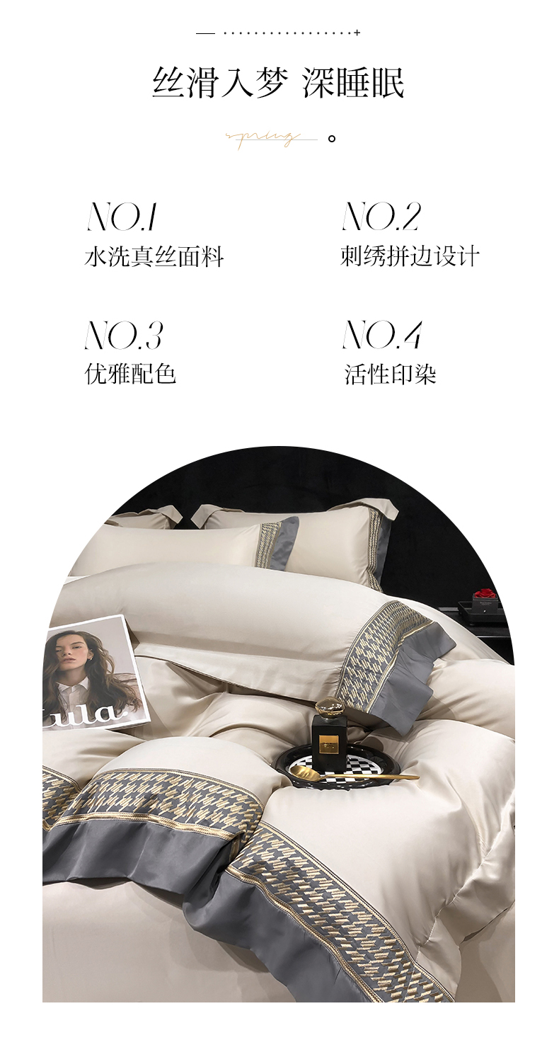 当前位置: 91家纺网 > 商品网购 > 床品套件 > 四件套 > 真丝四件套 > (总)奥汀洛家纺 2024新款工艺款水洗真丝刺绣四件套-迪梵