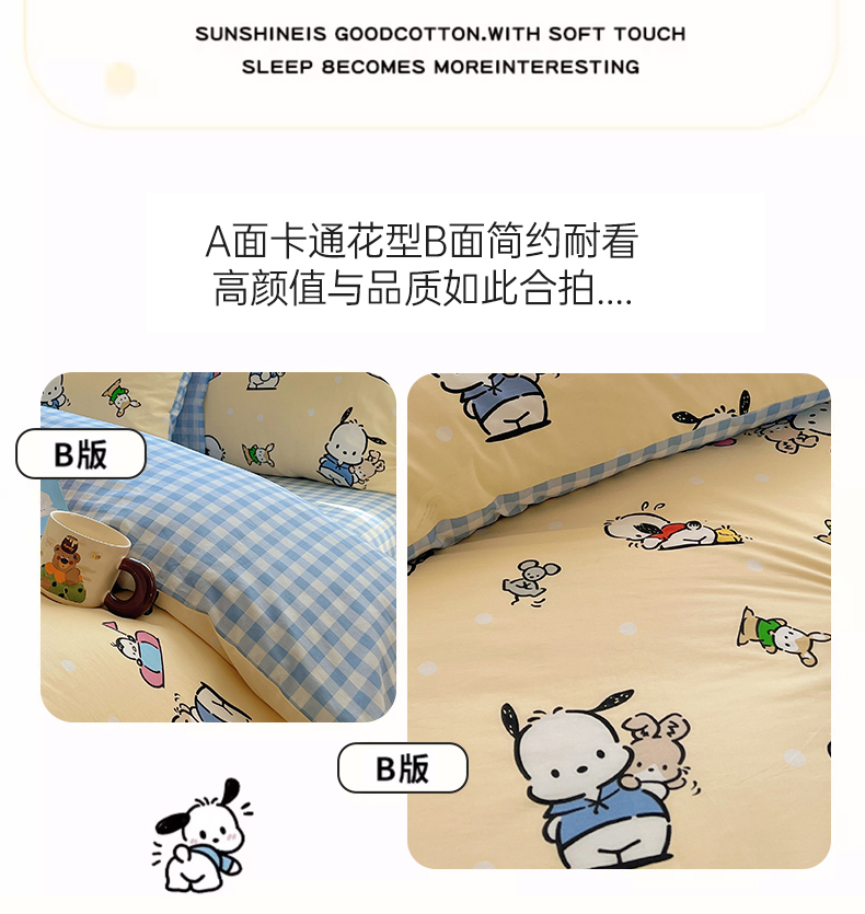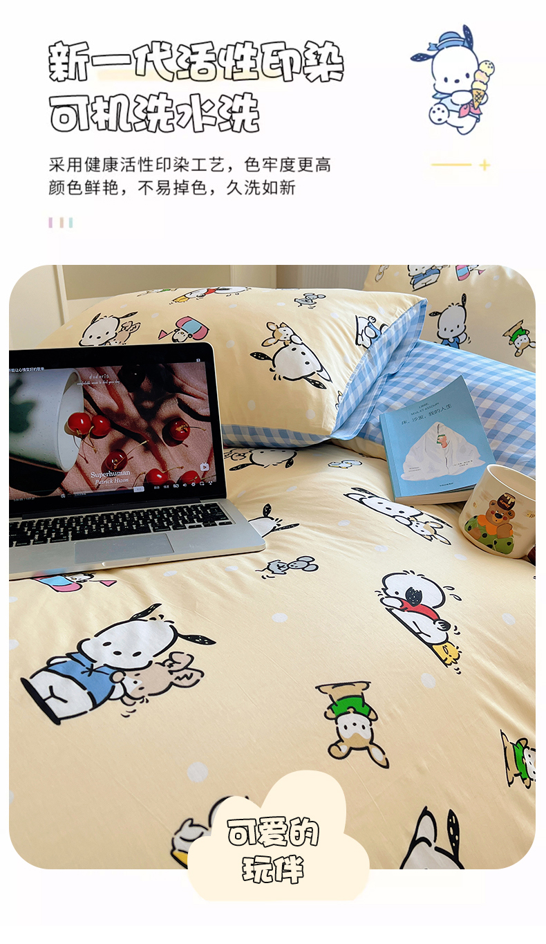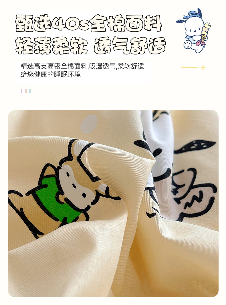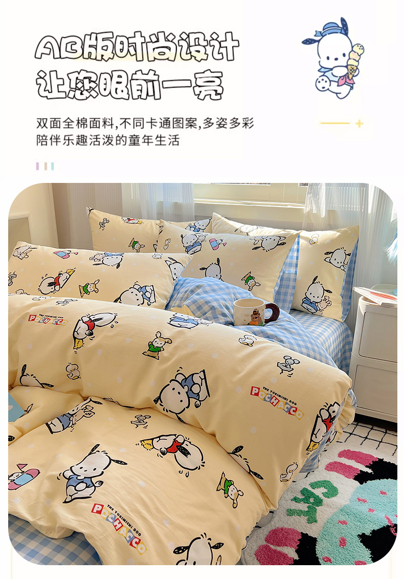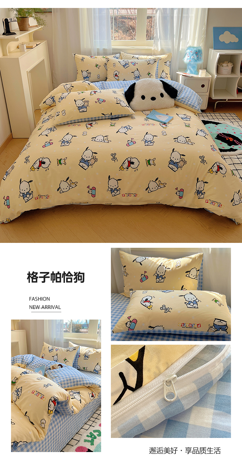 商品名称:星座家纺 2025新款40s全棉卡通印花四件套 格子帕恰狗