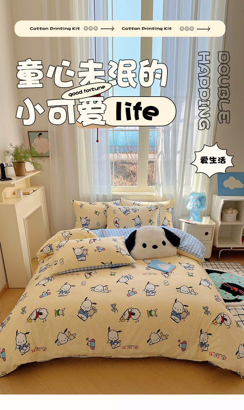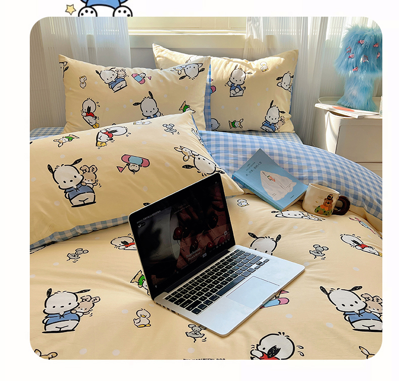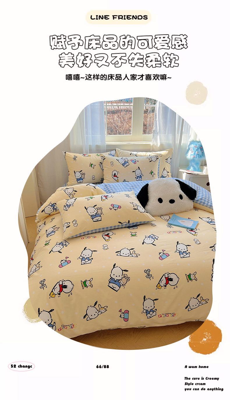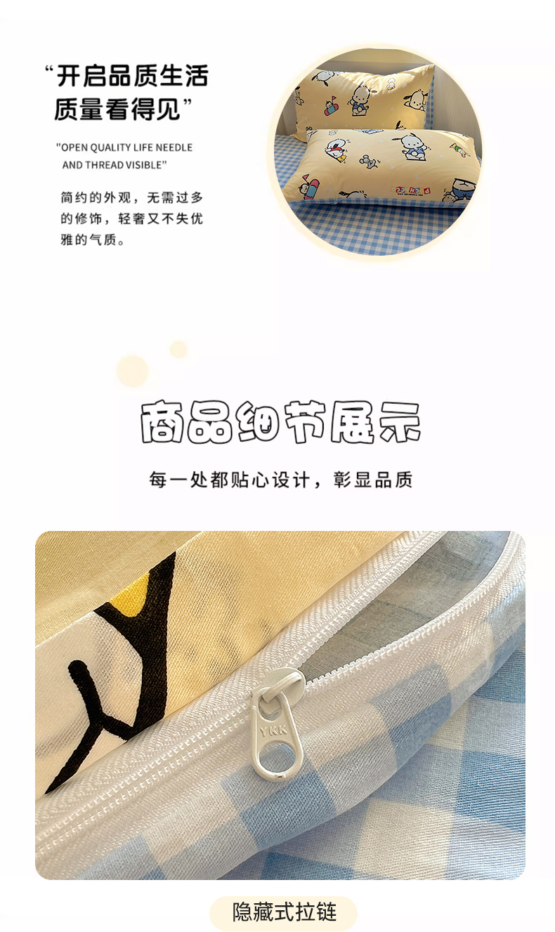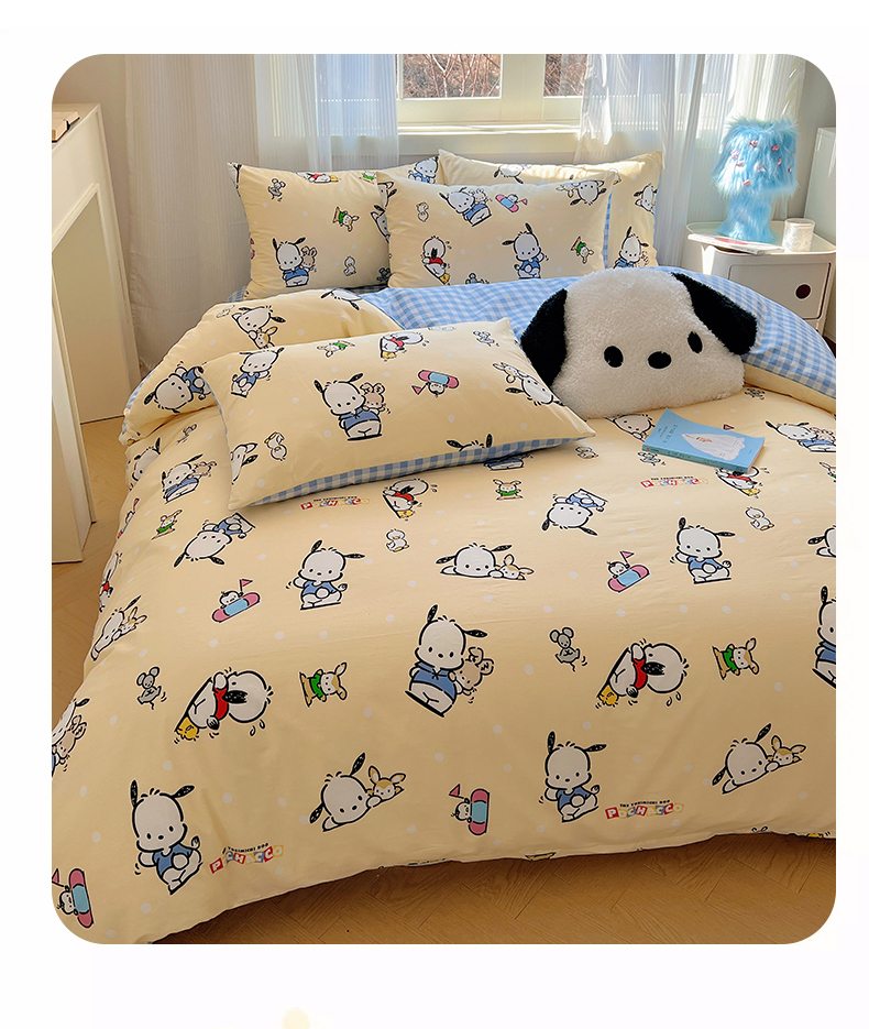 商品名称:星座家纺 2025新款40s全棉卡通印花四件套 格子帕恰狗