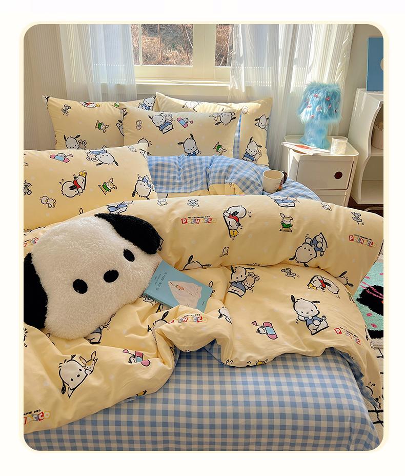 星座家纺 2025新款40s全棉卡通印花四件套 格子帕恰狗