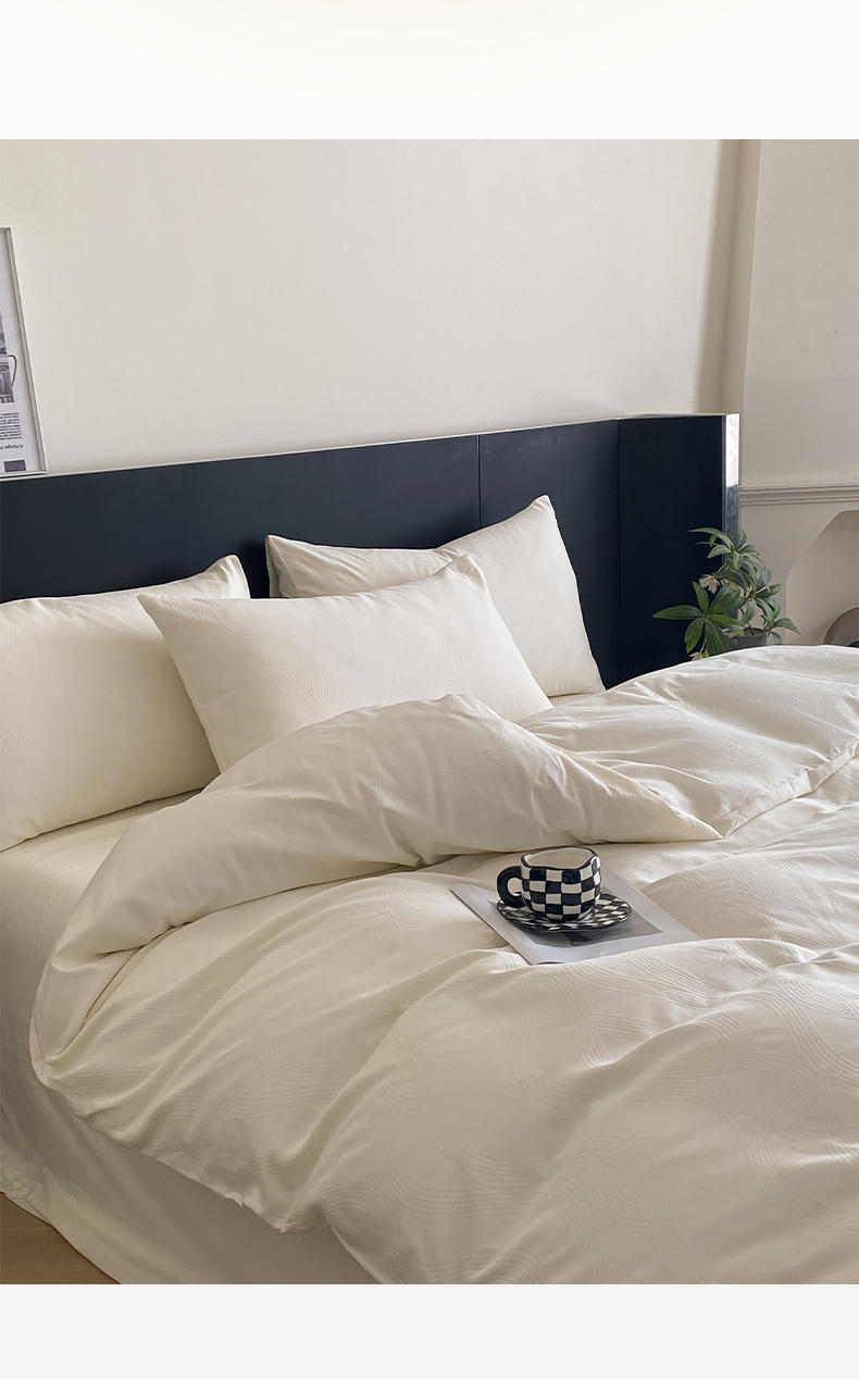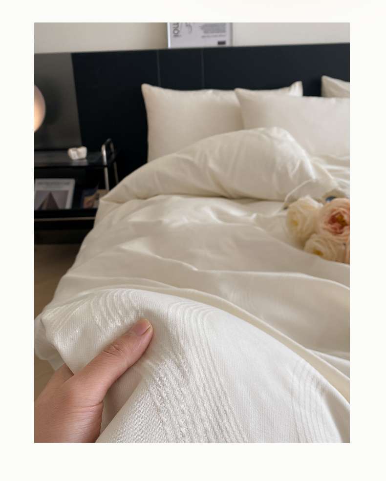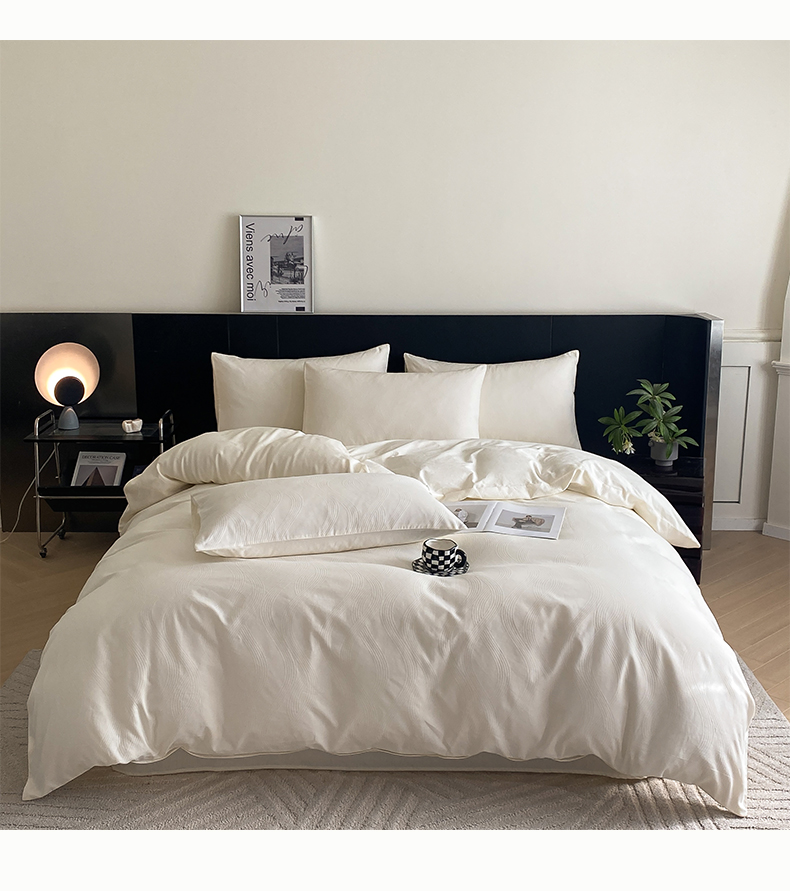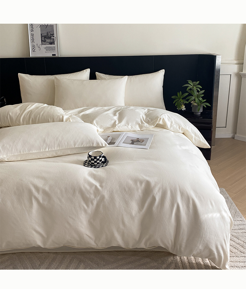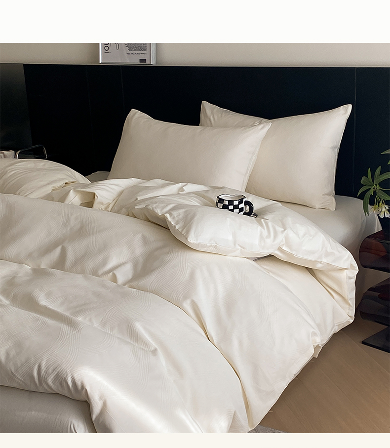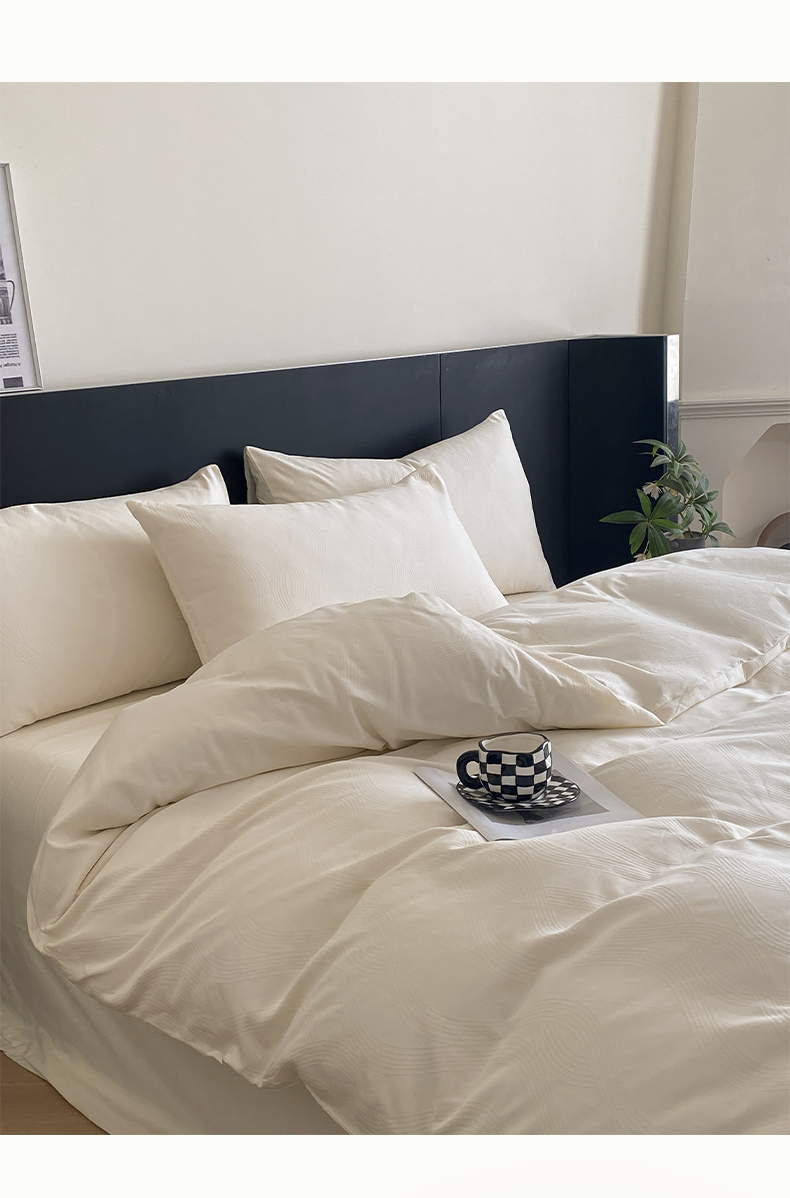当前位置: 91家纺网 > 商品网购 > 床品套件 > 四件套 > 全棉普通四件套 > 莱登卡奴 2024新款全棉A类水洗棉提花三层纱四件套 艾利-奶昔白