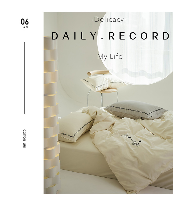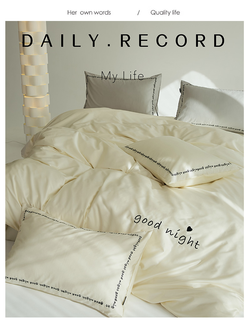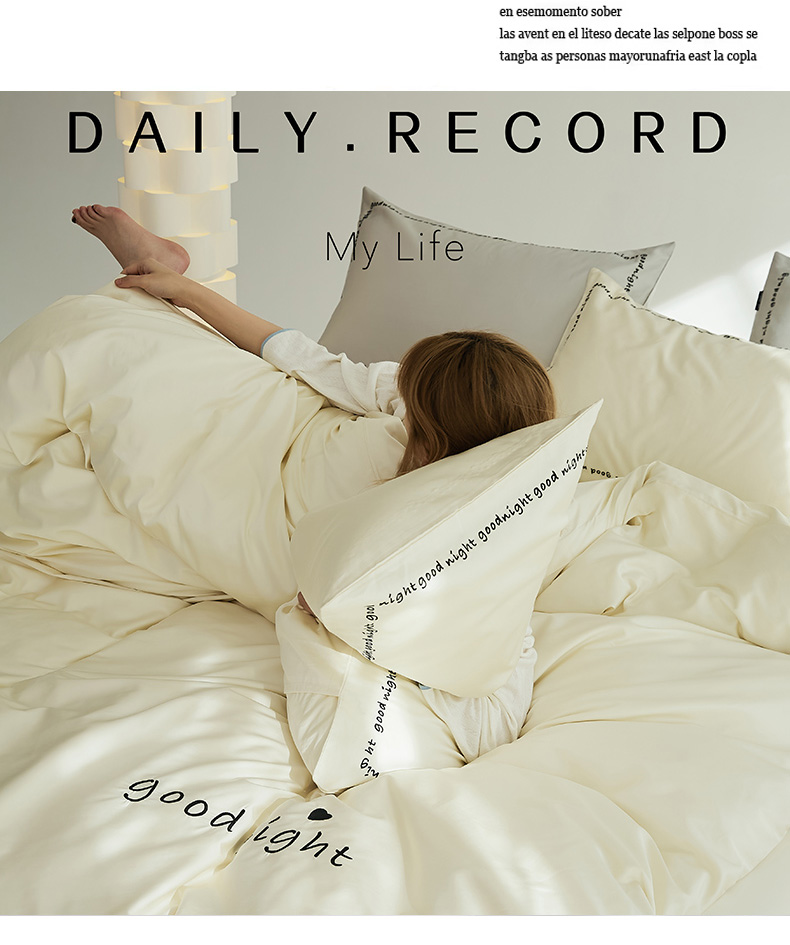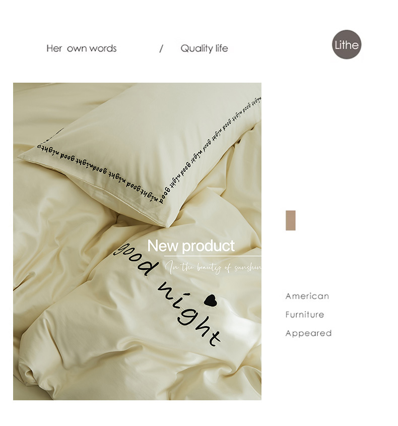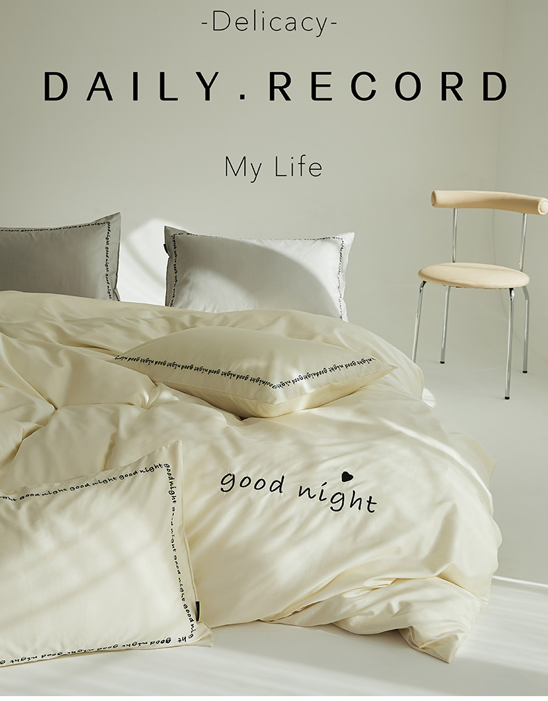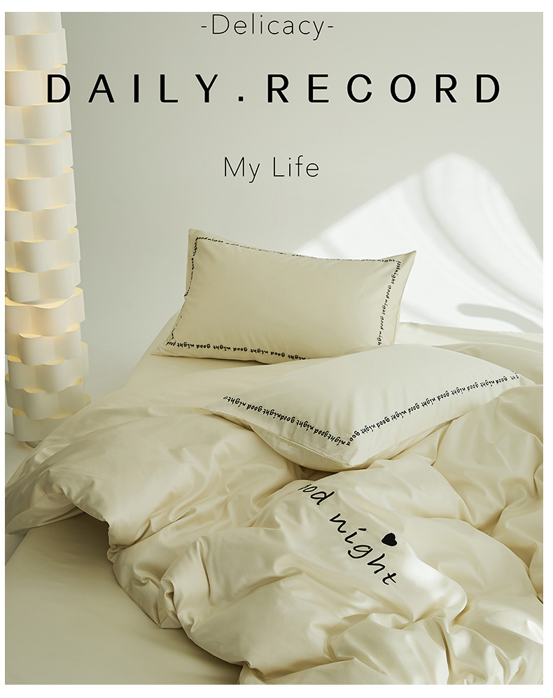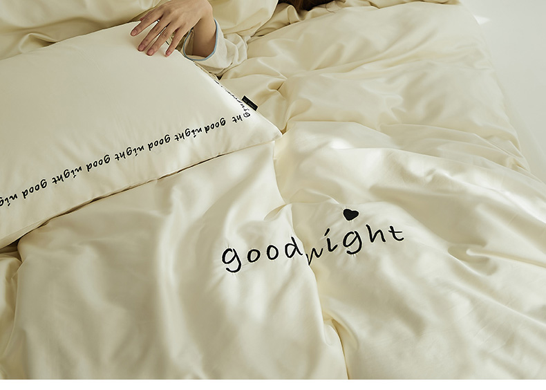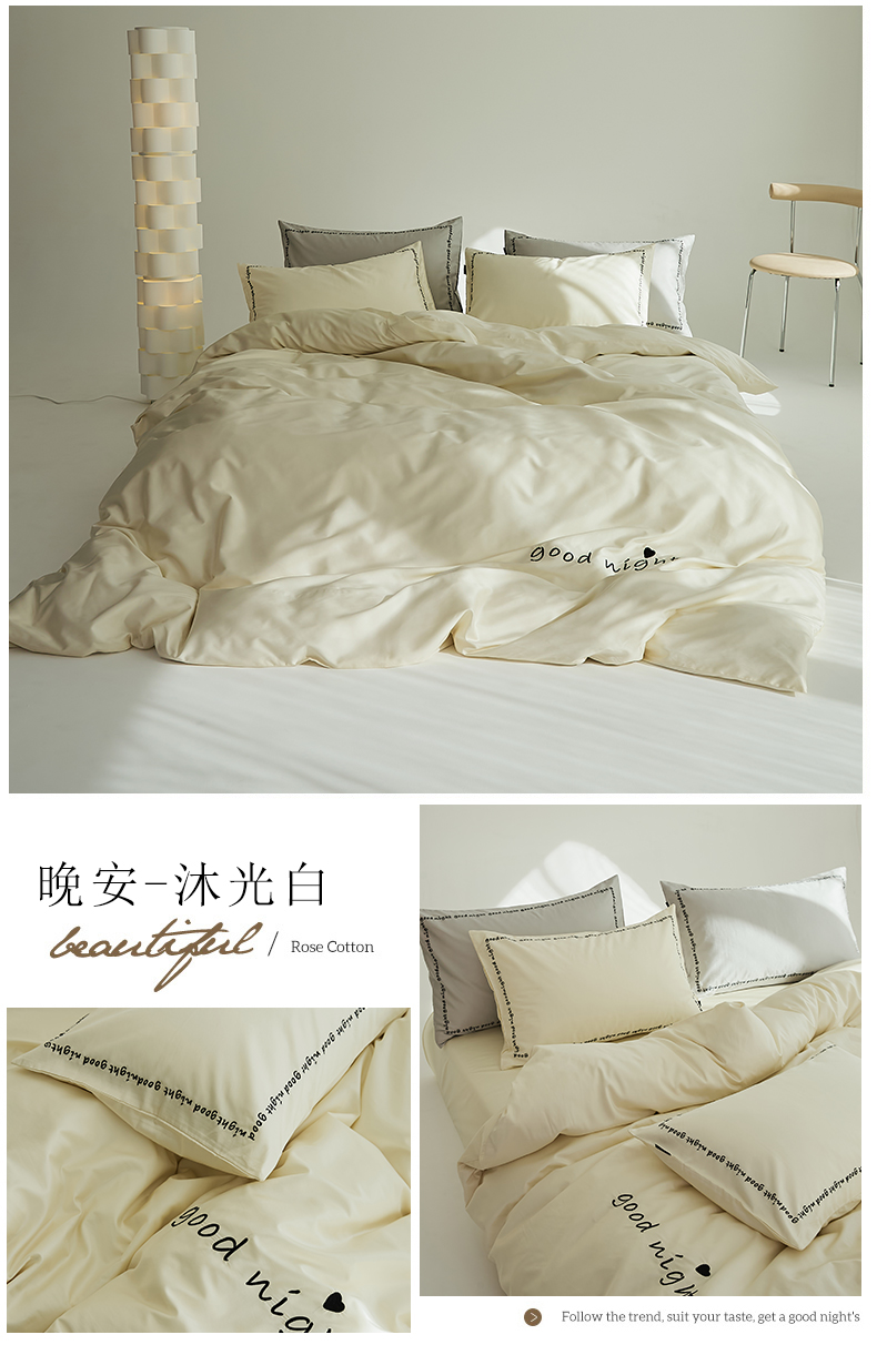 当前位置: 91家纺网 > 商品网购 > 床品套件 > 四件套 > 全棉普通四件套 > 新款高密全棉绣花四件套--晚安系列 英文版 晚安-沐光白
