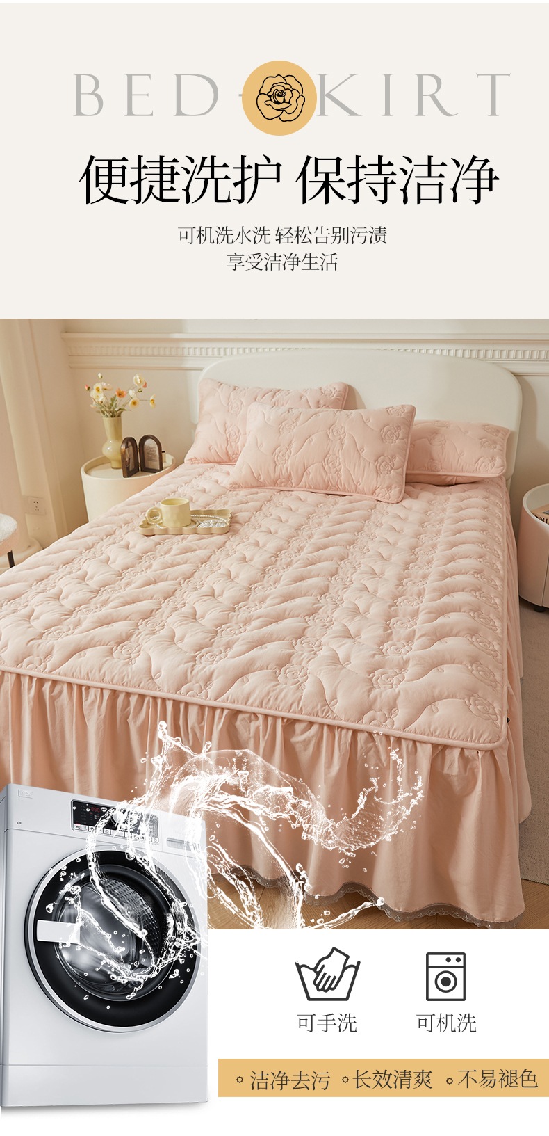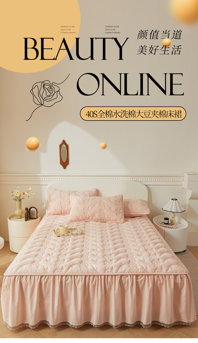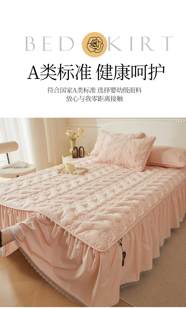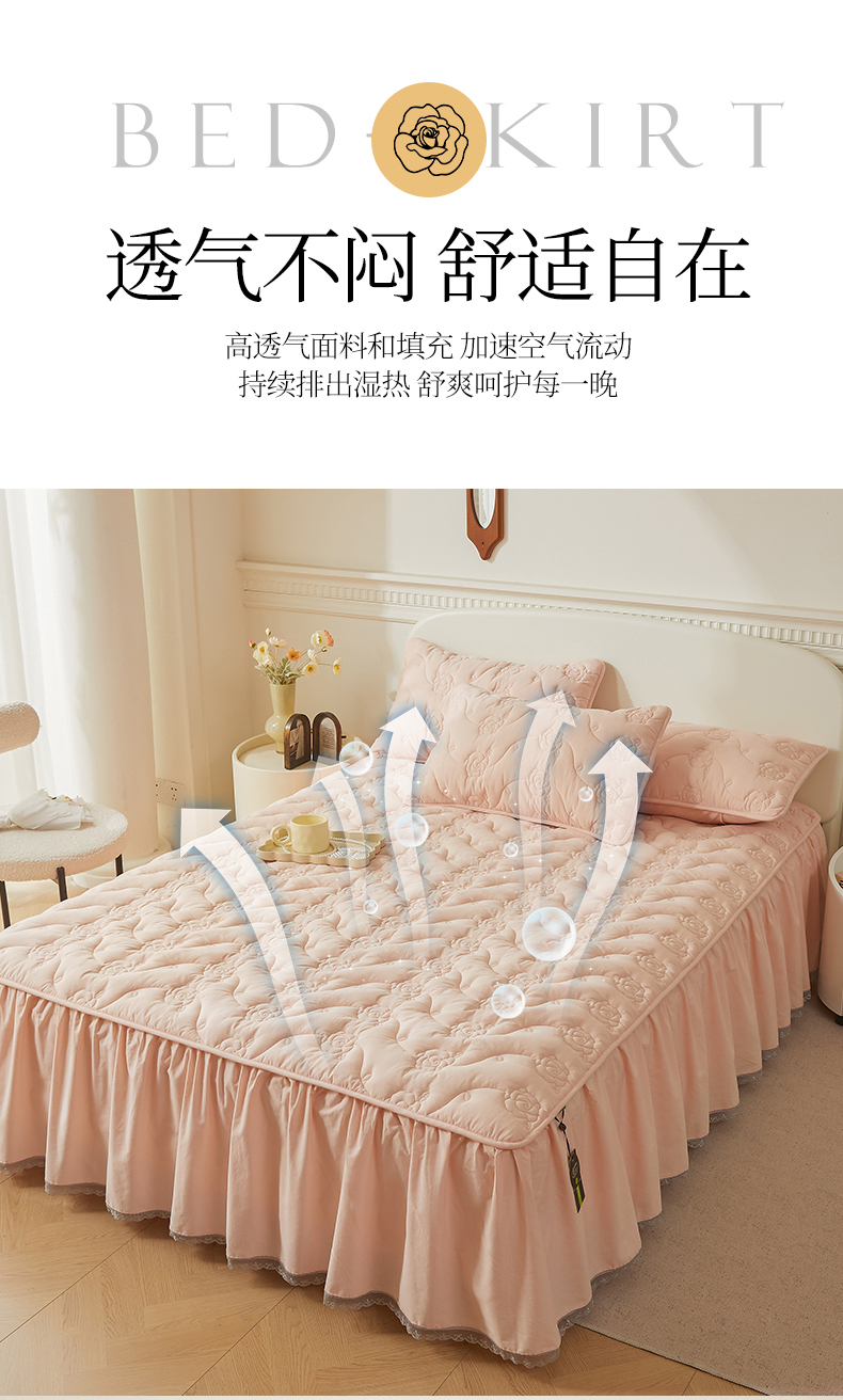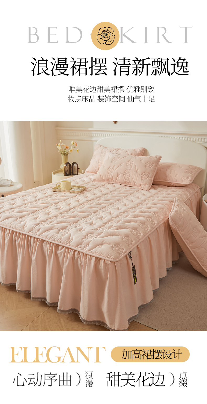 3C 2024新款玫瑰全棉水洗棉大豆夹棉床裙 典雅玉