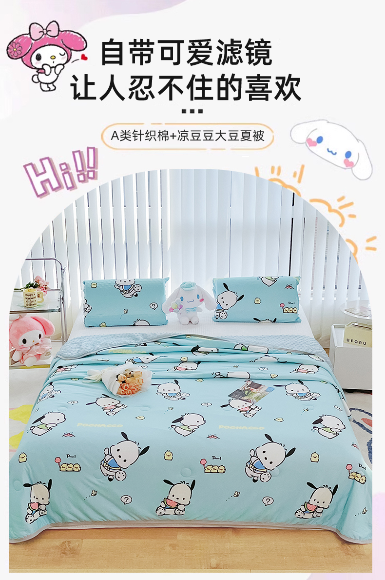 米米儿家纺 2024新款A类针织棉凉豆豆夏被夏凉被空调被-三丽鸥系列 可爱帕恰狗-蓝