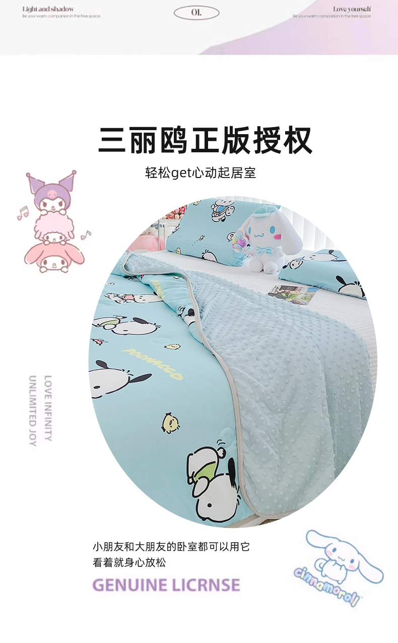 (总)米米儿家纺 2024新款A类针织棉凉豆豆夏被夏凉被空调被-三丽鸥系列,可爱帕恰狗-蓝,可爱帕恰狗-黄,搞怪库洛米,星星-玉桂狗,月亮-玉桂狗,木马-美乐蒂,棒棒糖-玉桂狗,樱桃美乐蒂,欢乐美乐蒂,爱心库洛米,紫色库洛米,草莓美乐蒂,镜子-玉桂狗,黑白-帕恰狗