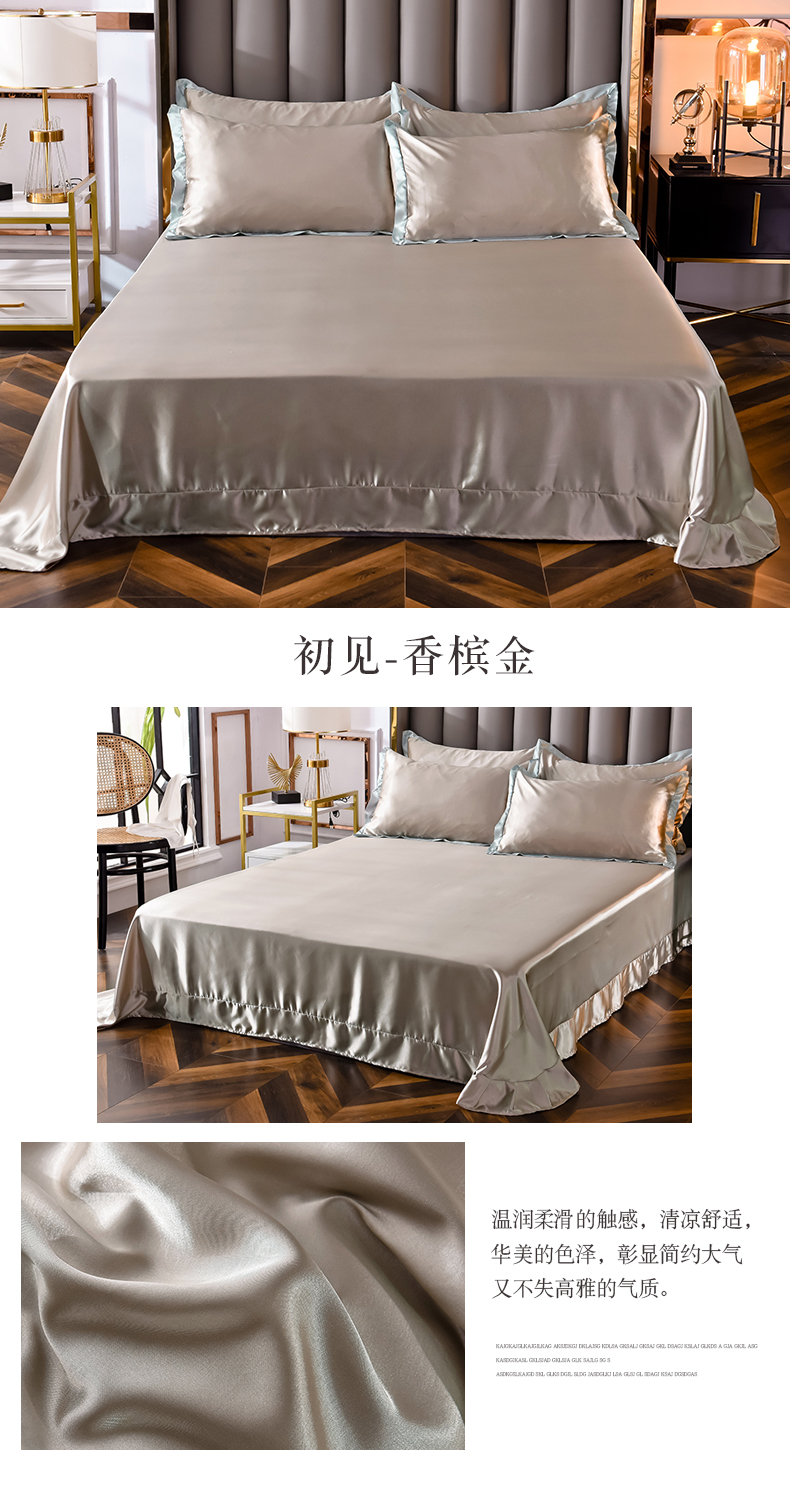 商品名称:经年 2025新款奢华真丝手感冰丝单品套件-初见系列 单床单 初见-香槟金