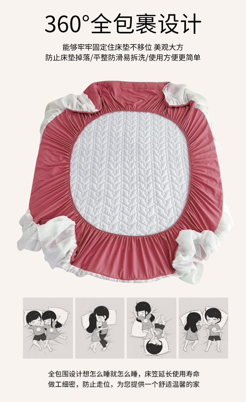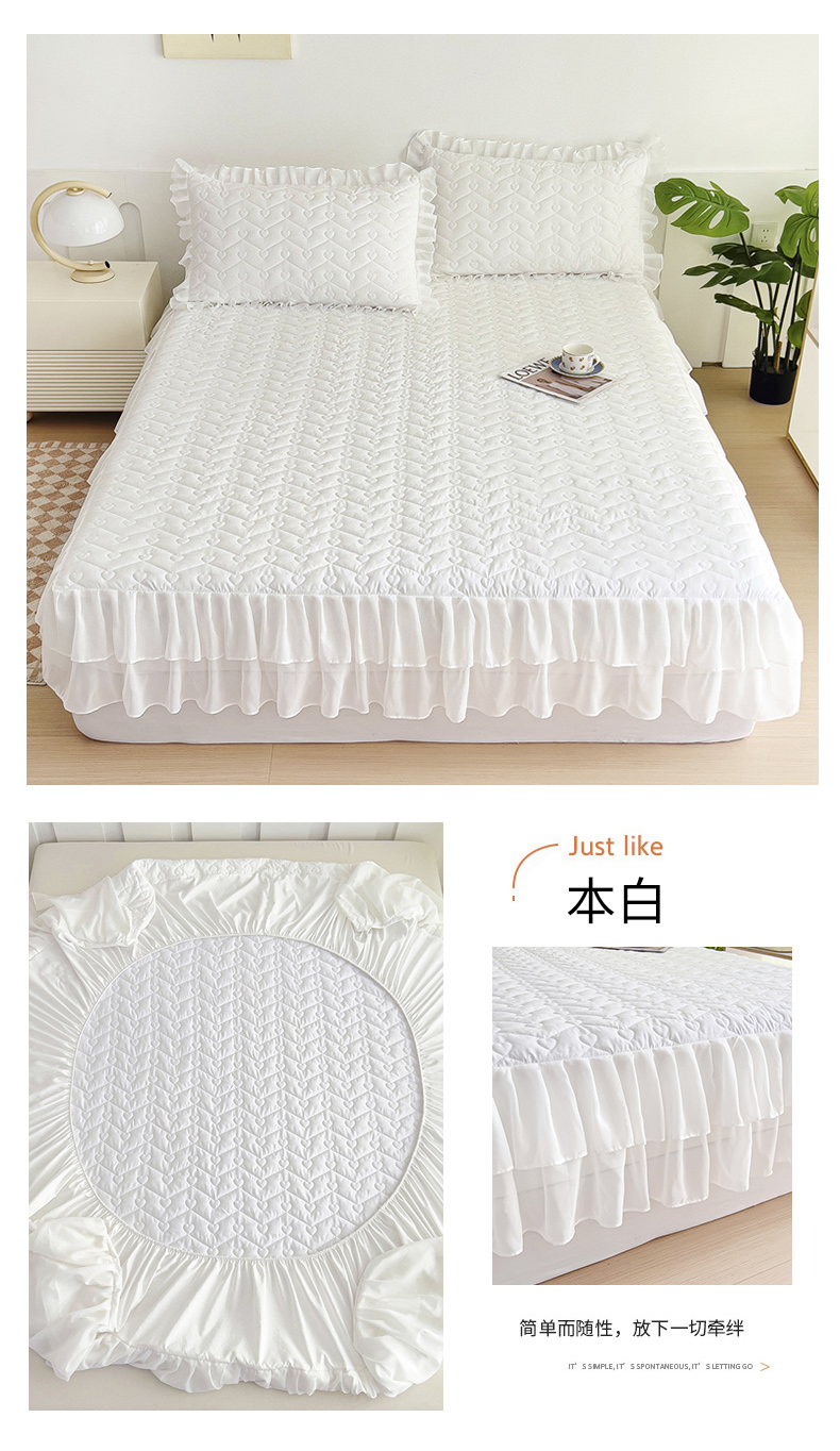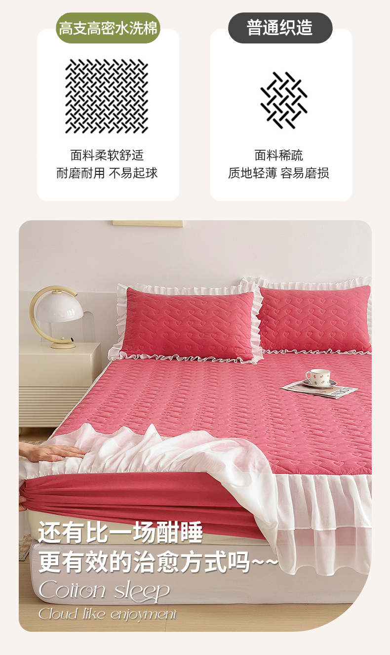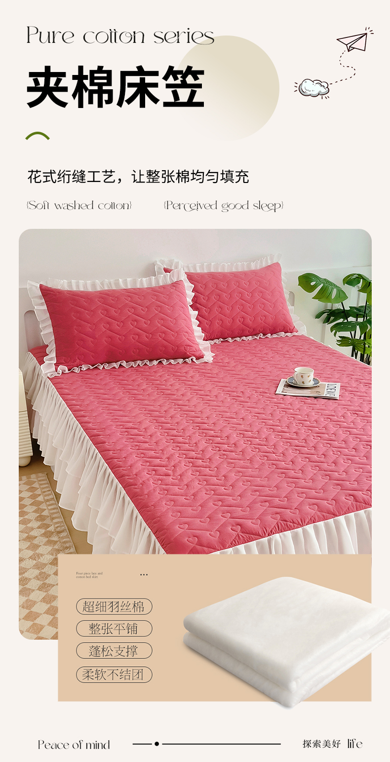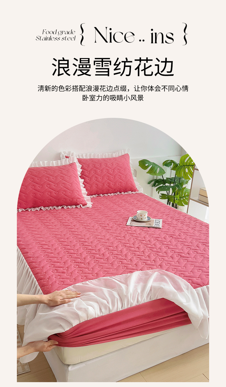 (总)屹成家纺2025新款水晶绒夹棉绗缝蕾丝床裙三件套(塞纳河畔)床裙单件起售价不低于105元,大红,豆沙,翡翠绿,粉玉,橄榄绿,蔚蓝,银灰