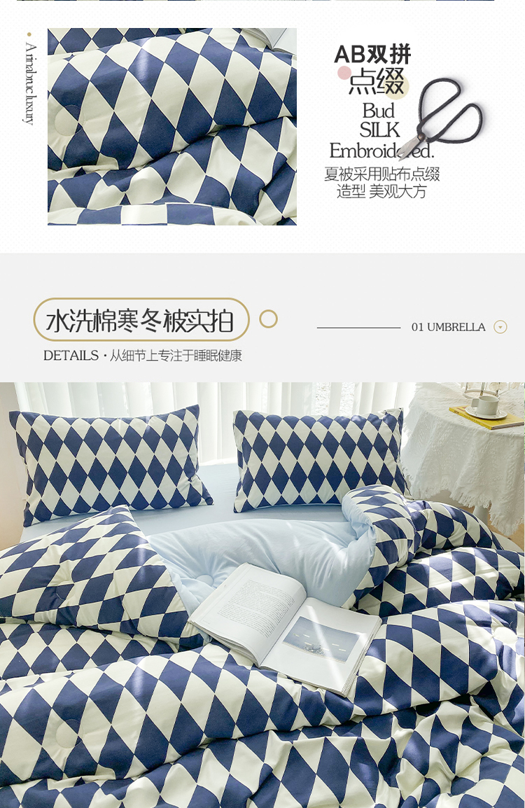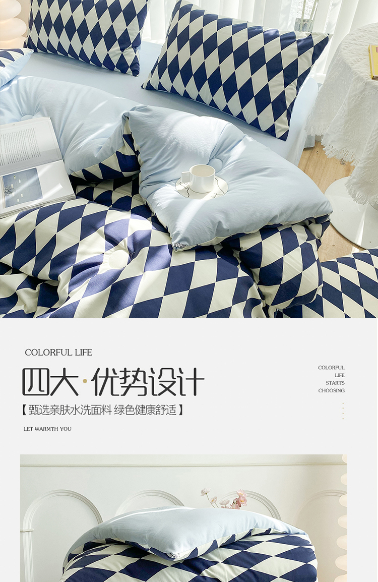 当前位置: 91家纺网 > 商品网购 > 床品套件 > 四件套 > 夏被四件套 > 啊雅家居 2025新款水洗棉条纹印花夏被冬被四件套-床单款 冬被 日系凌格蓝