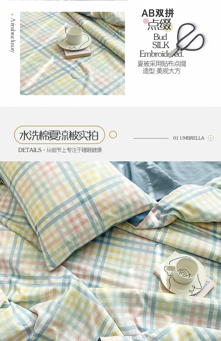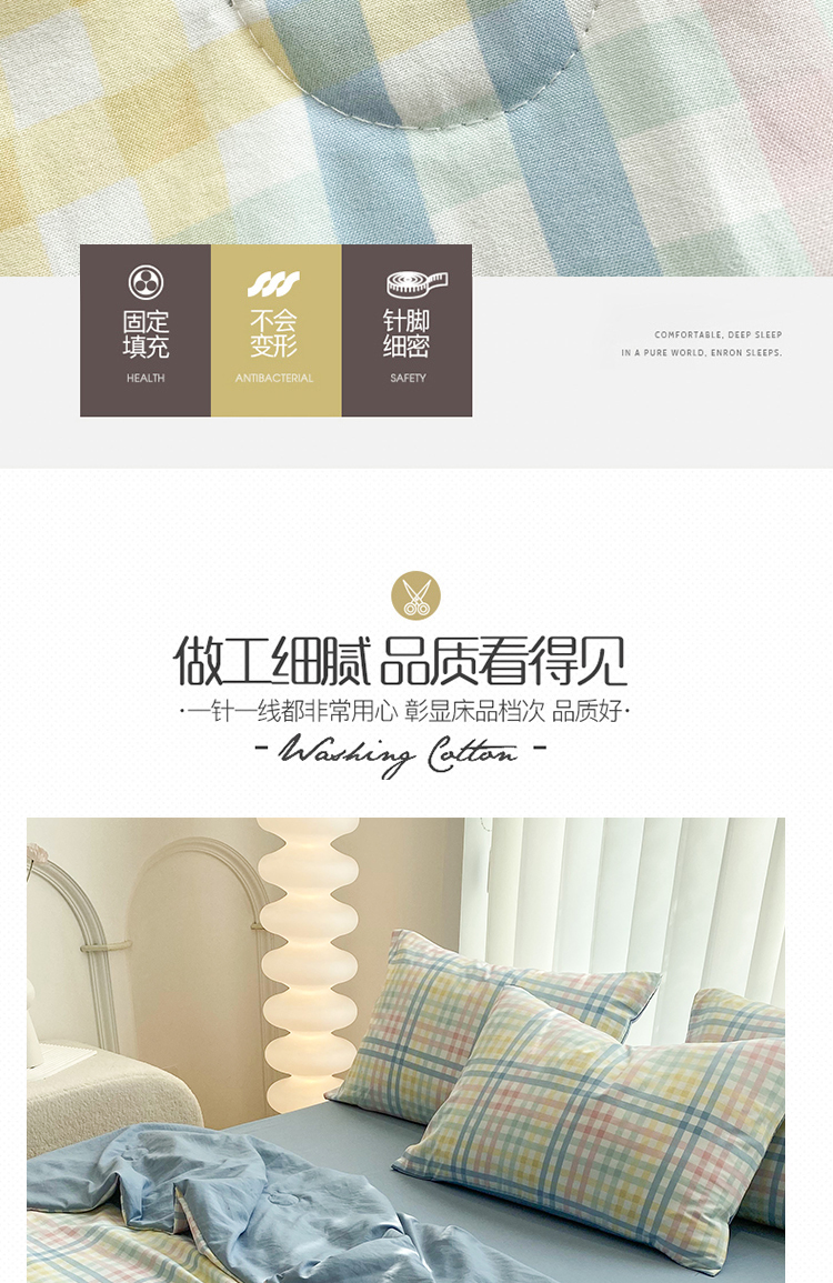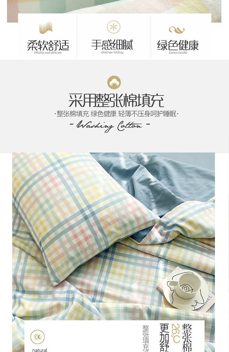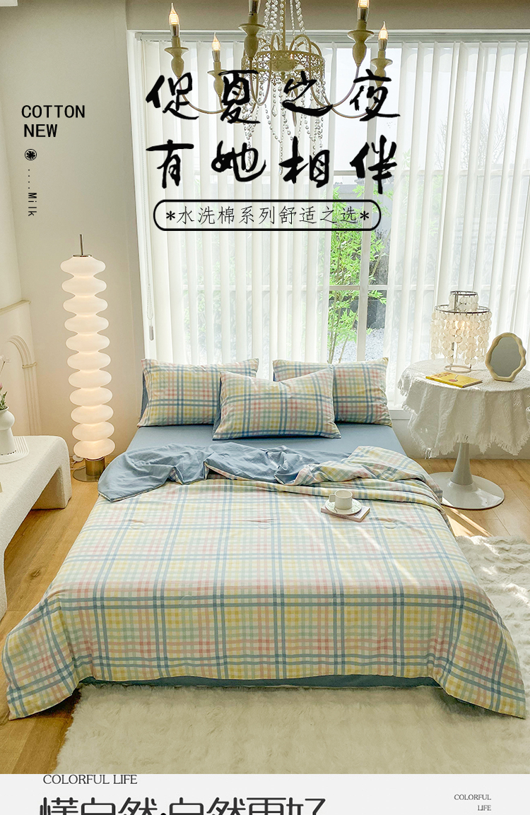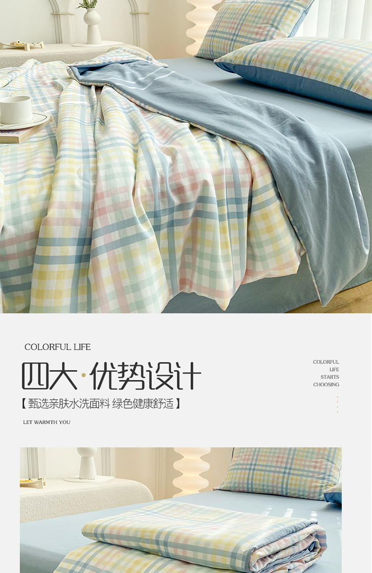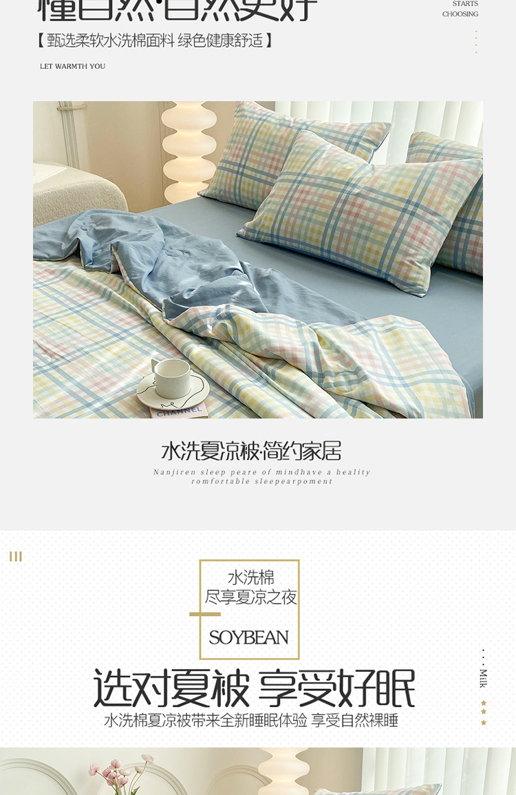 当前位置: 91家纺网 > 商品网购 > 床品套件 > 四件套 > 夏被四件套 > 啊雅家居2025新款水洗棉条纹印花夏被冬被四件套-床单款 夏被 日系小格绿